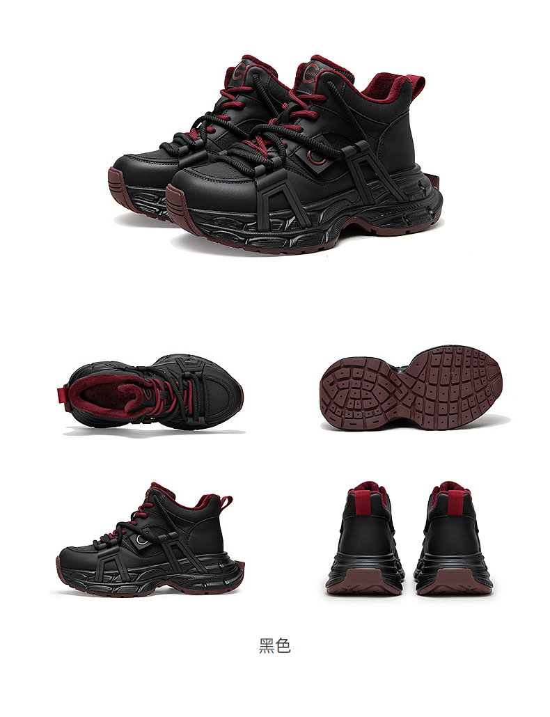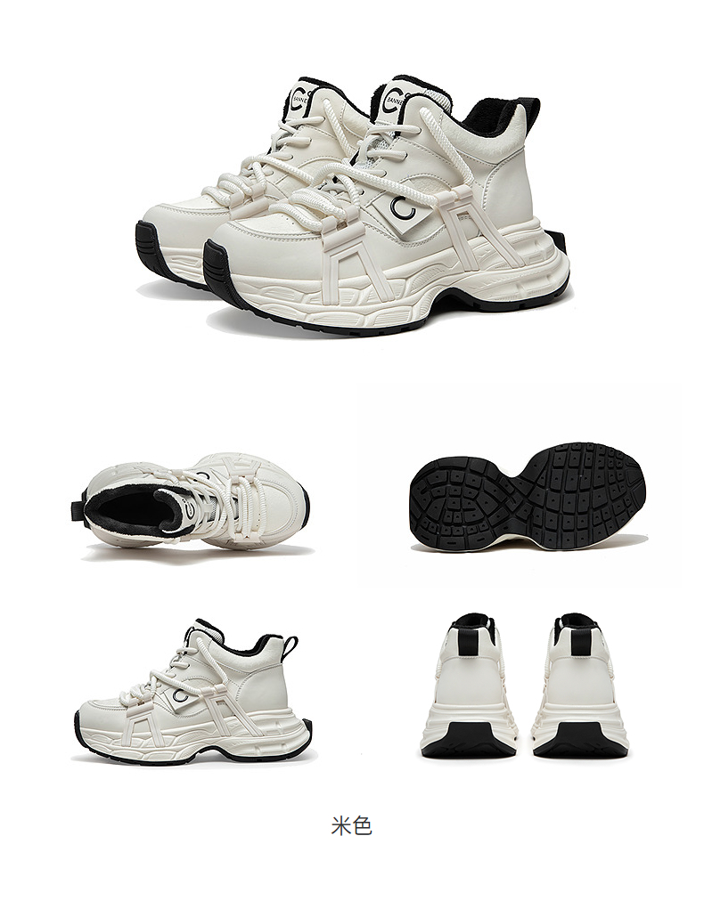 千百度厚底熊猫鞋女春季增高休闲板鞋黑白鞋时尚运动鞋A24113812