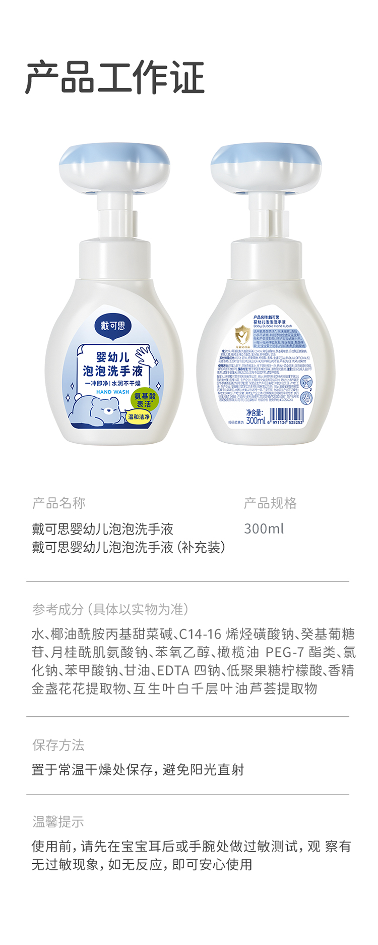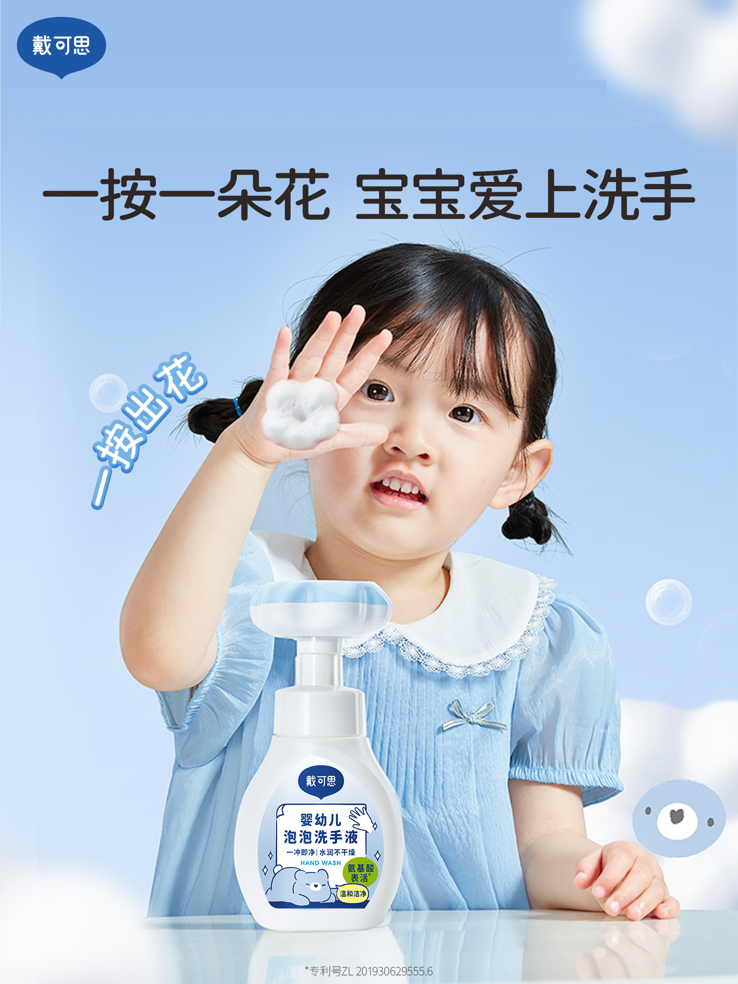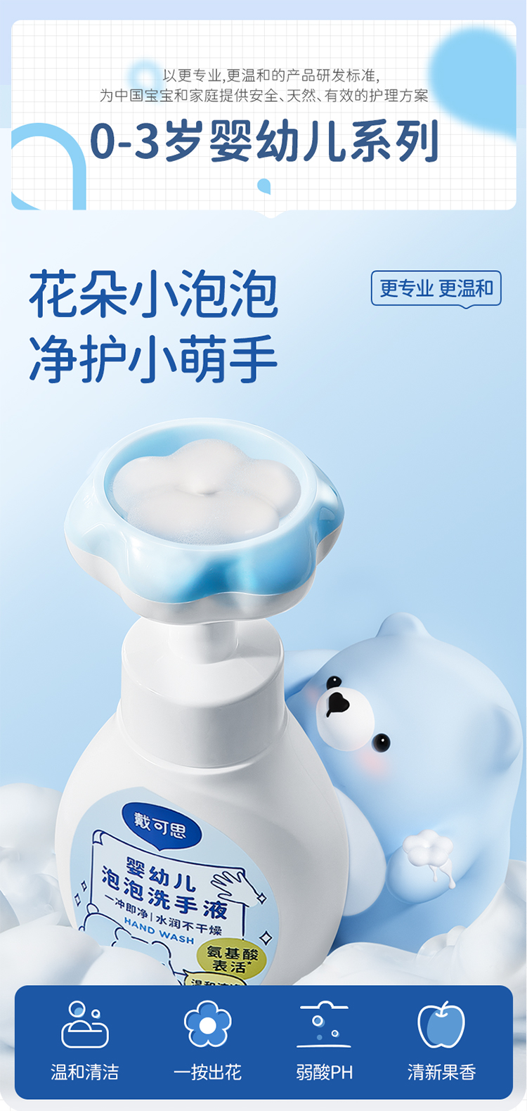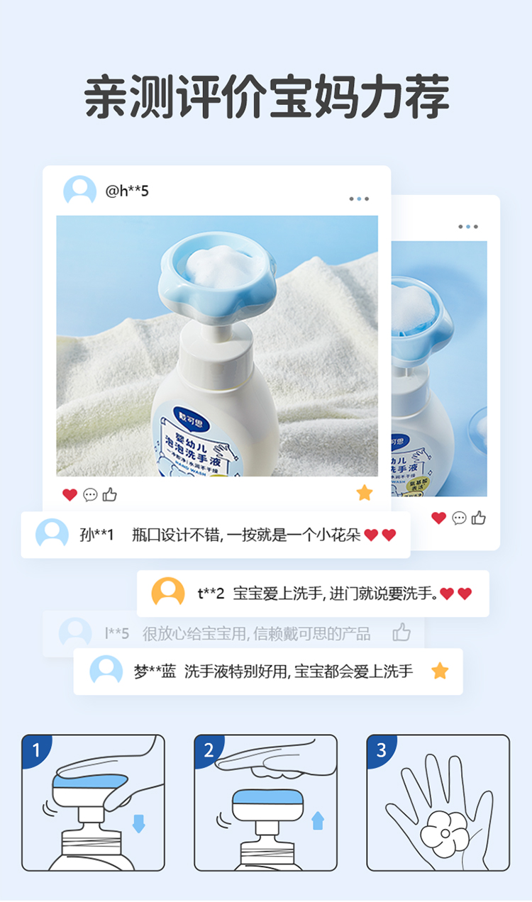 戴可思花朵泡泡洗手液宝宝专用泡沫型植物温和儿童按压瓶♥