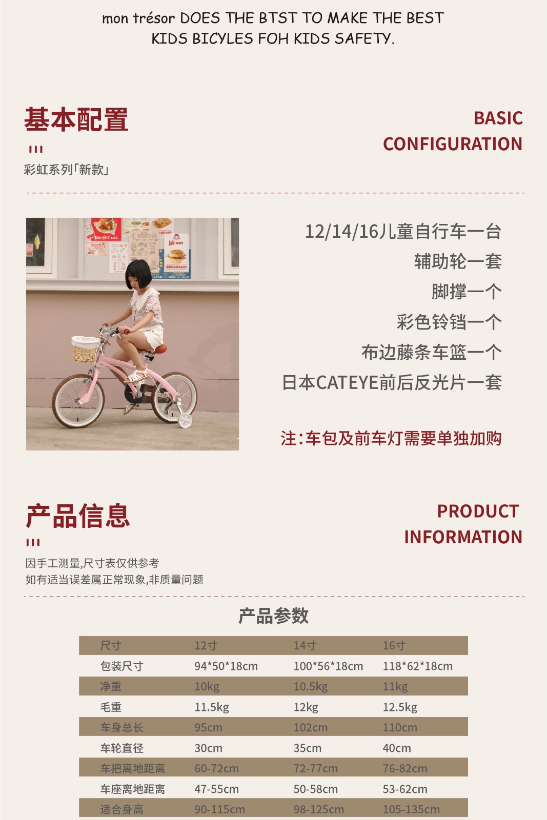 韩国进口montresor 新款Rainbow彩虹系列儿童自行车12寸-14寸-16寸【蒙特雷索】