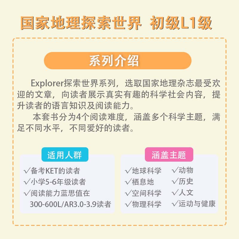 【中商原版】National Geographic Explorer Pioneer L1 美国国家地理阅读探索者初级1级科学读本22册KET蓝思值380-500L含音频