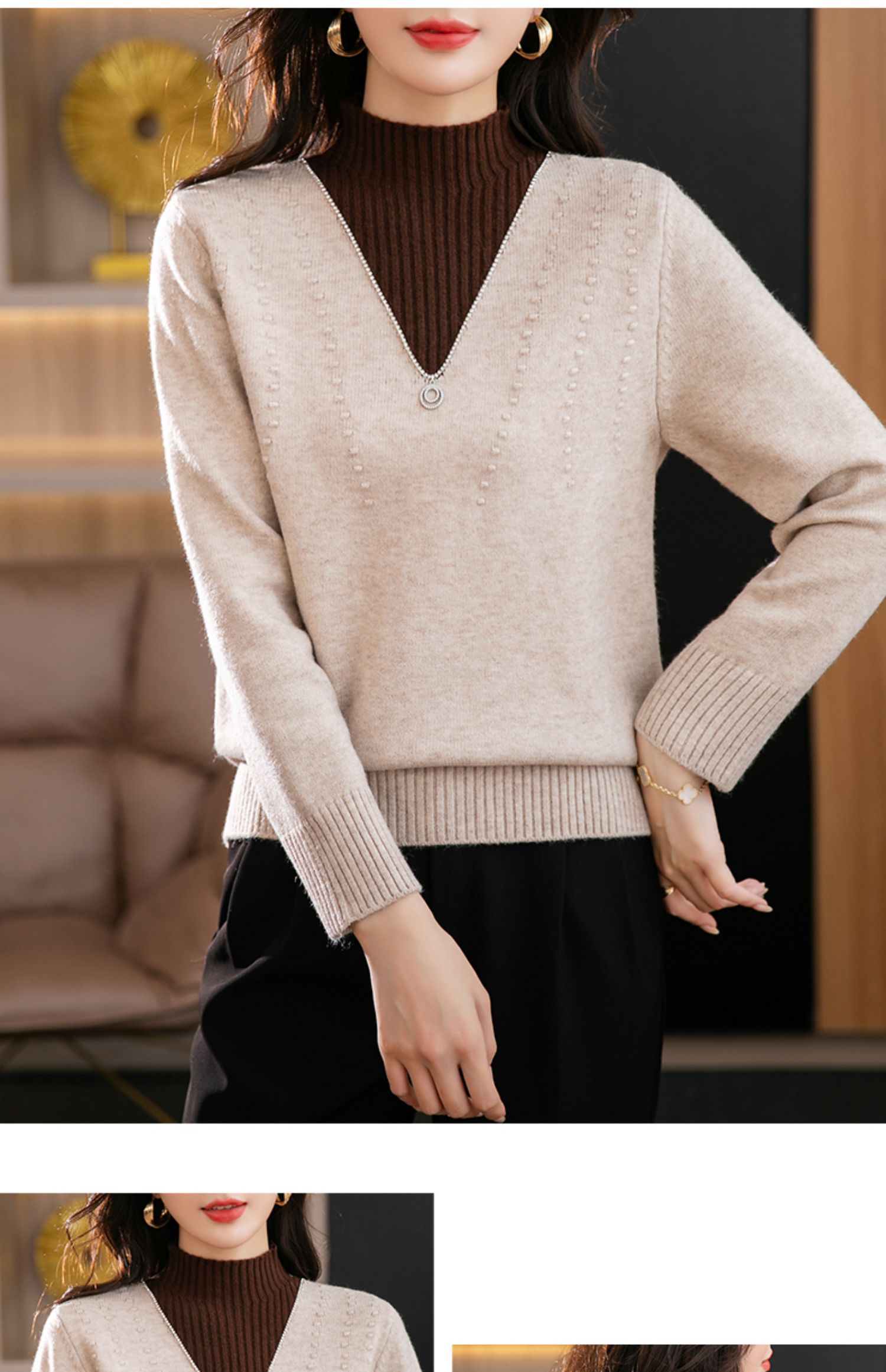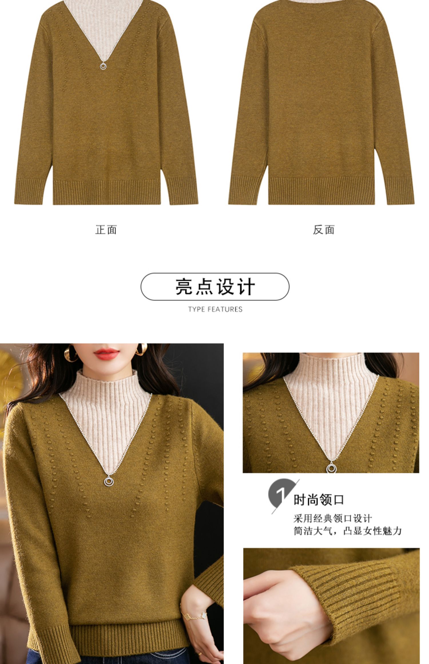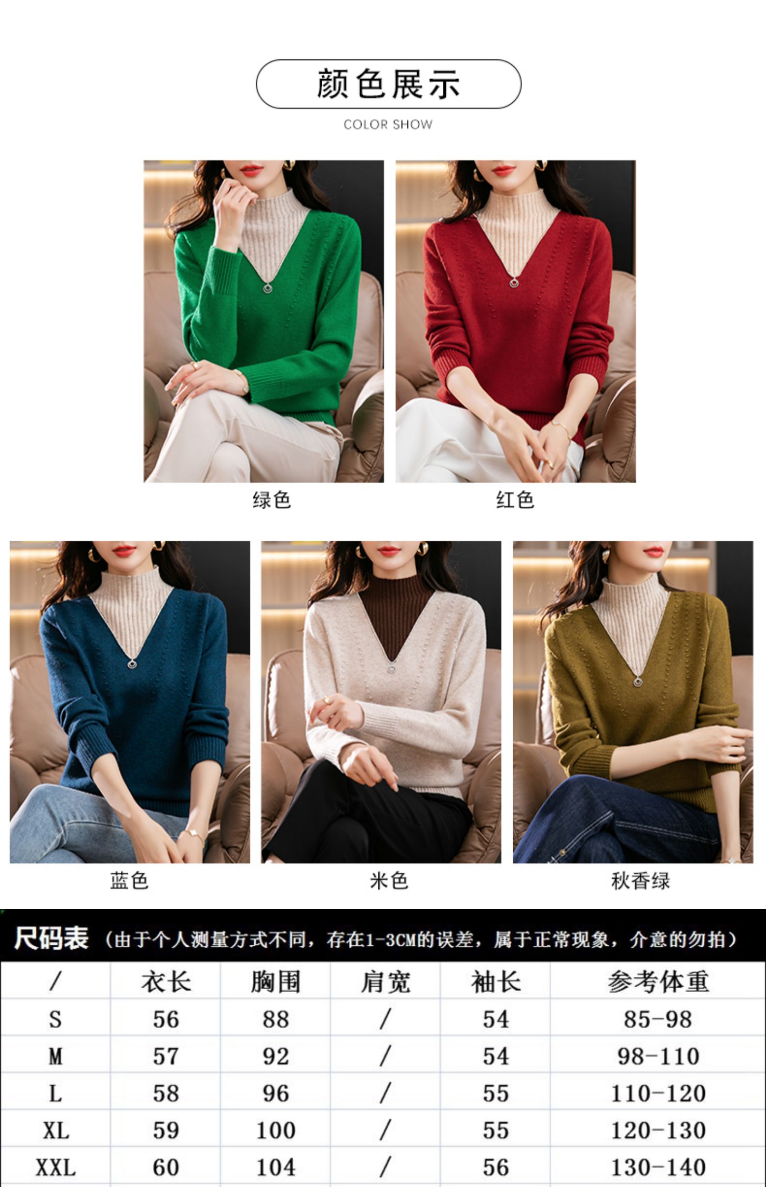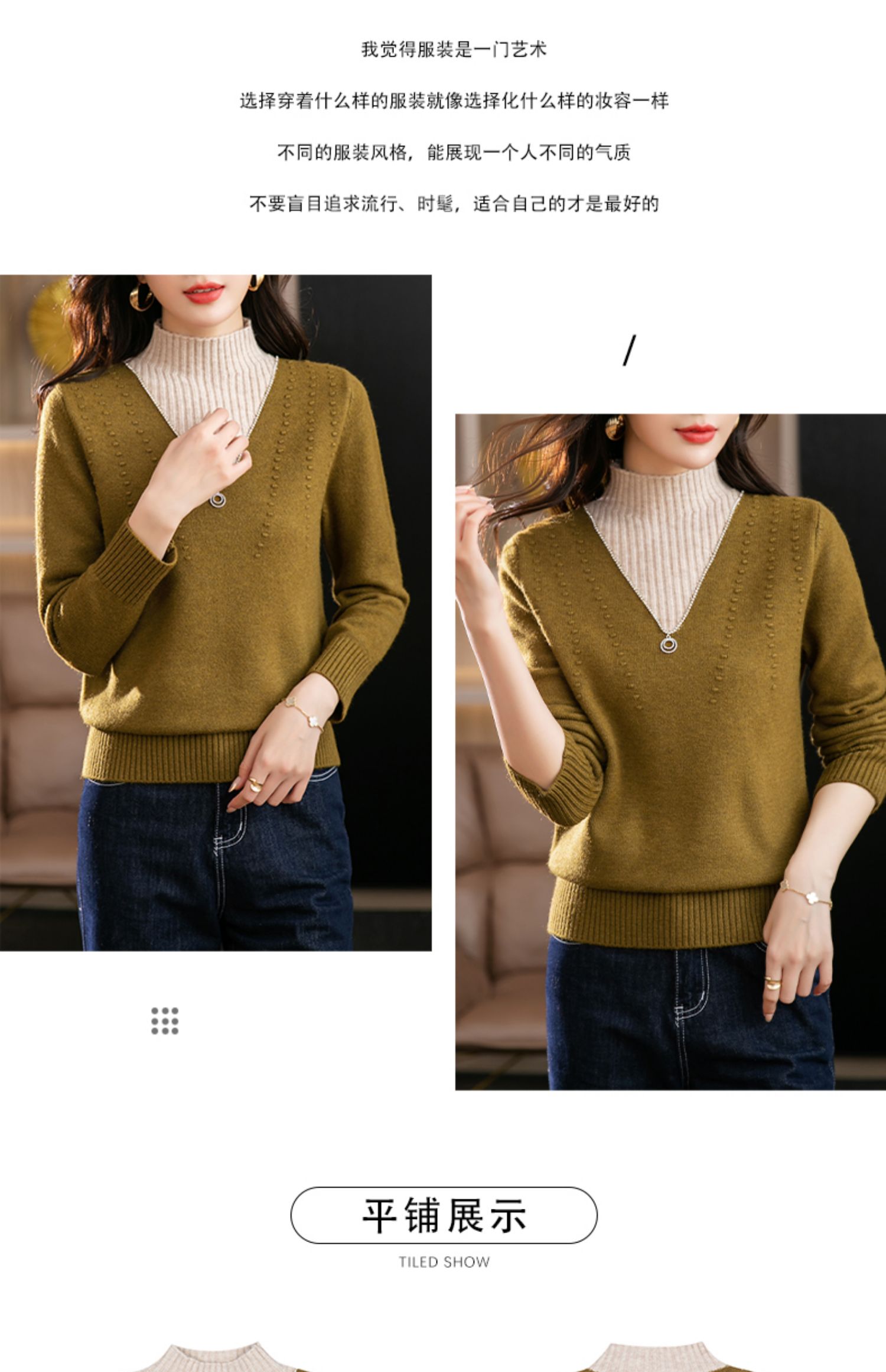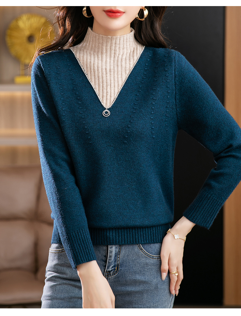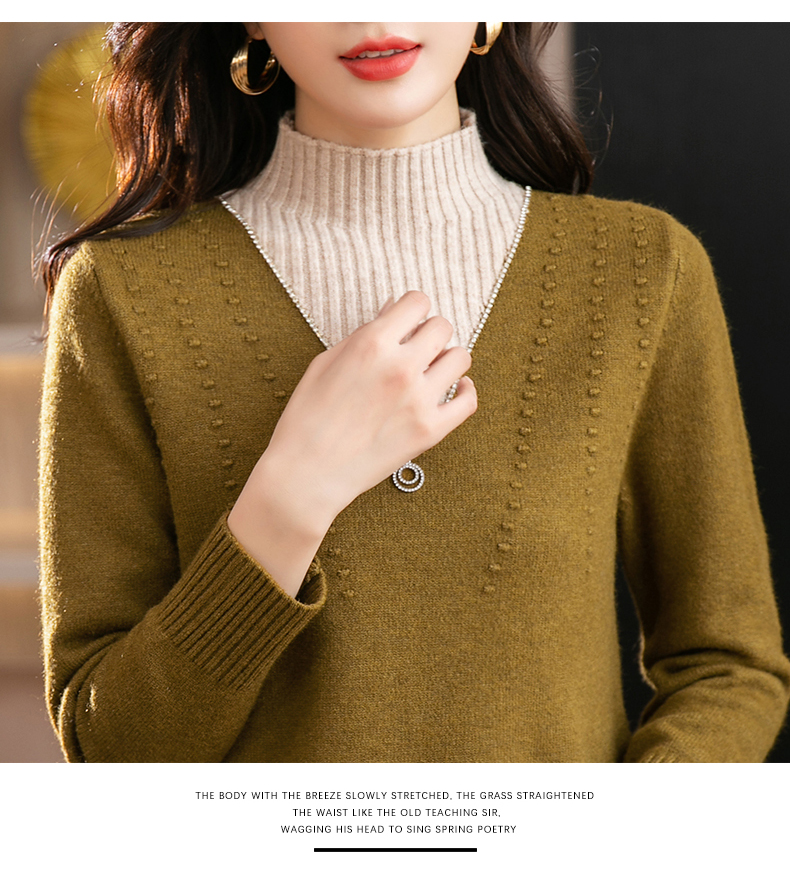 半高领打底衫假两件拼色短款针织毛衣CC-9-6839