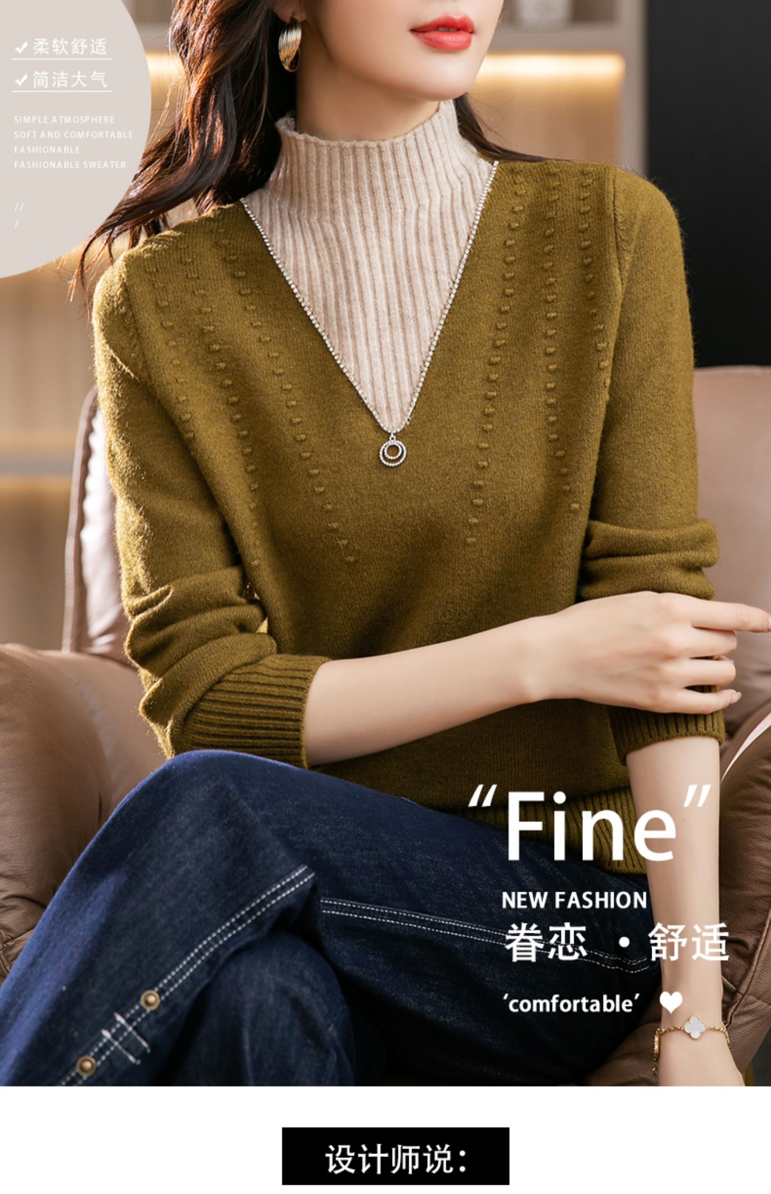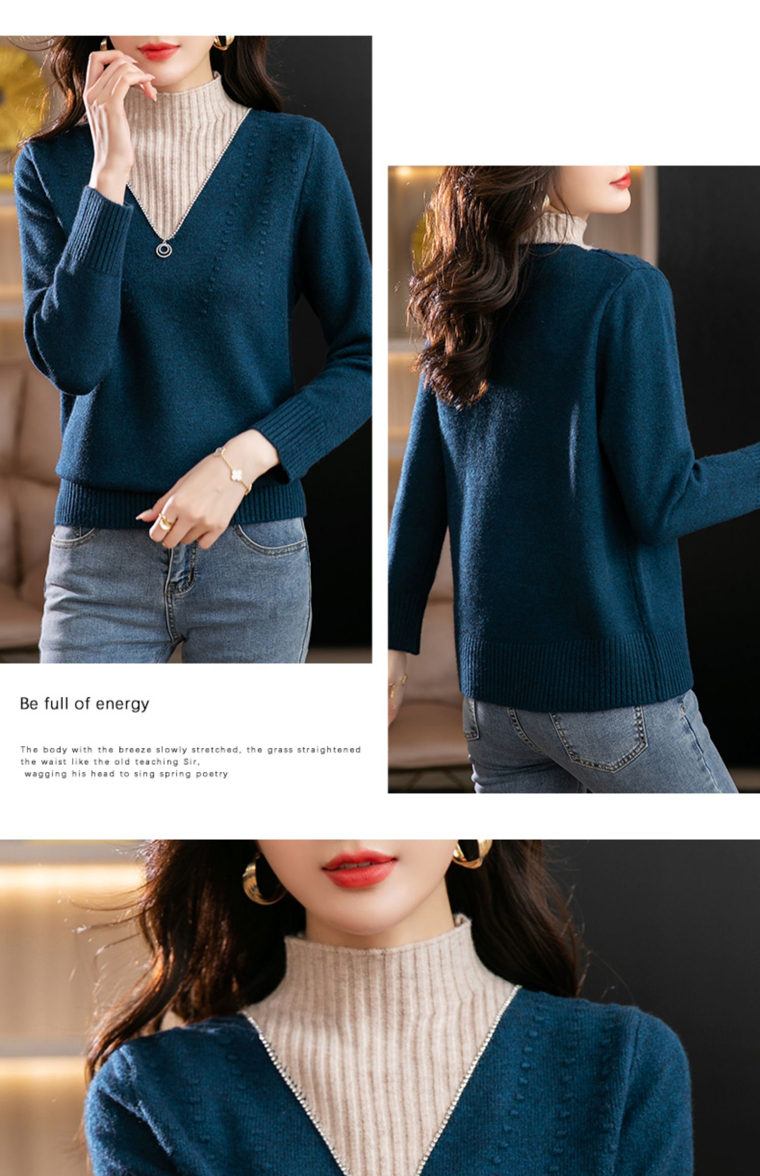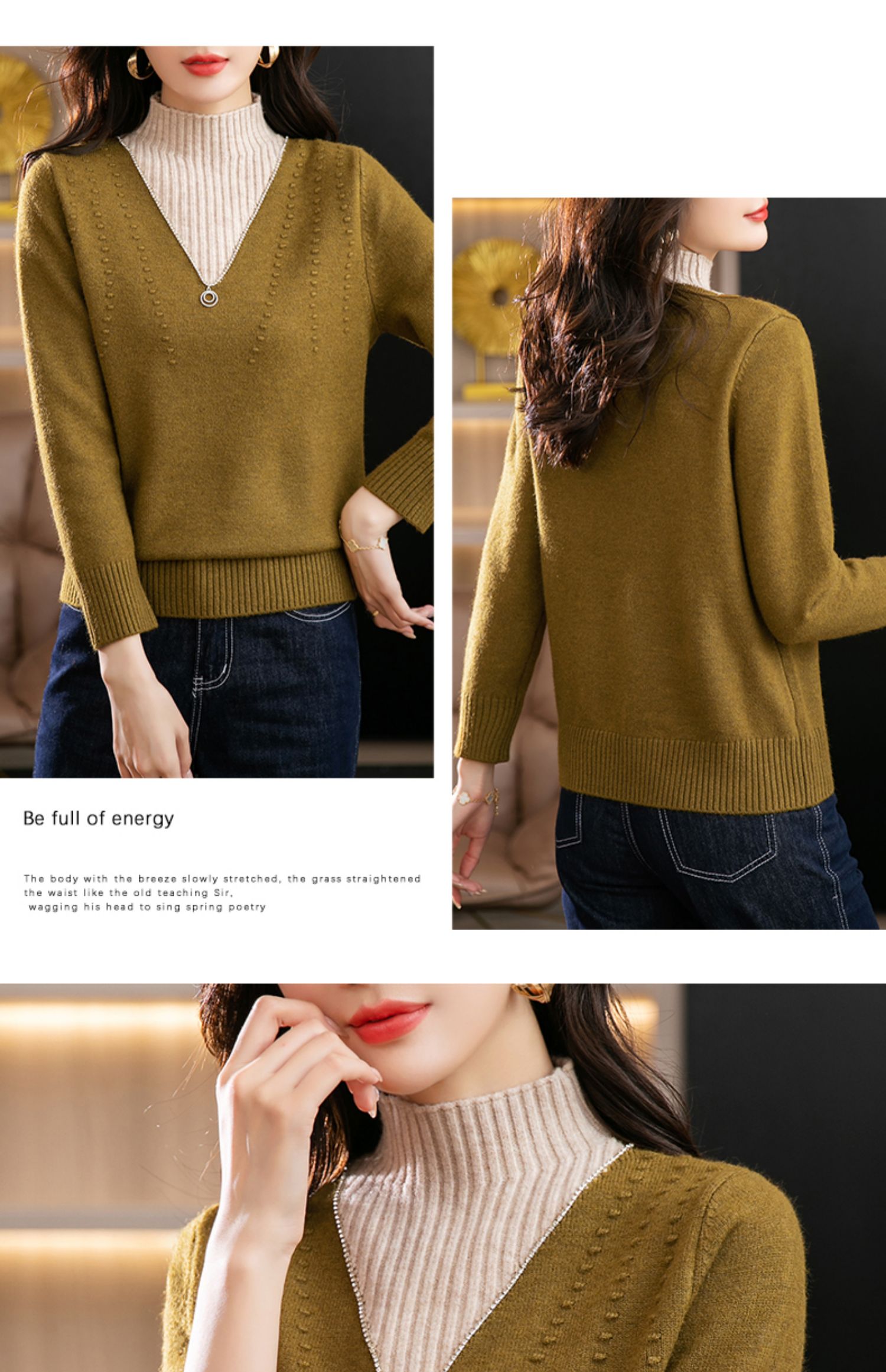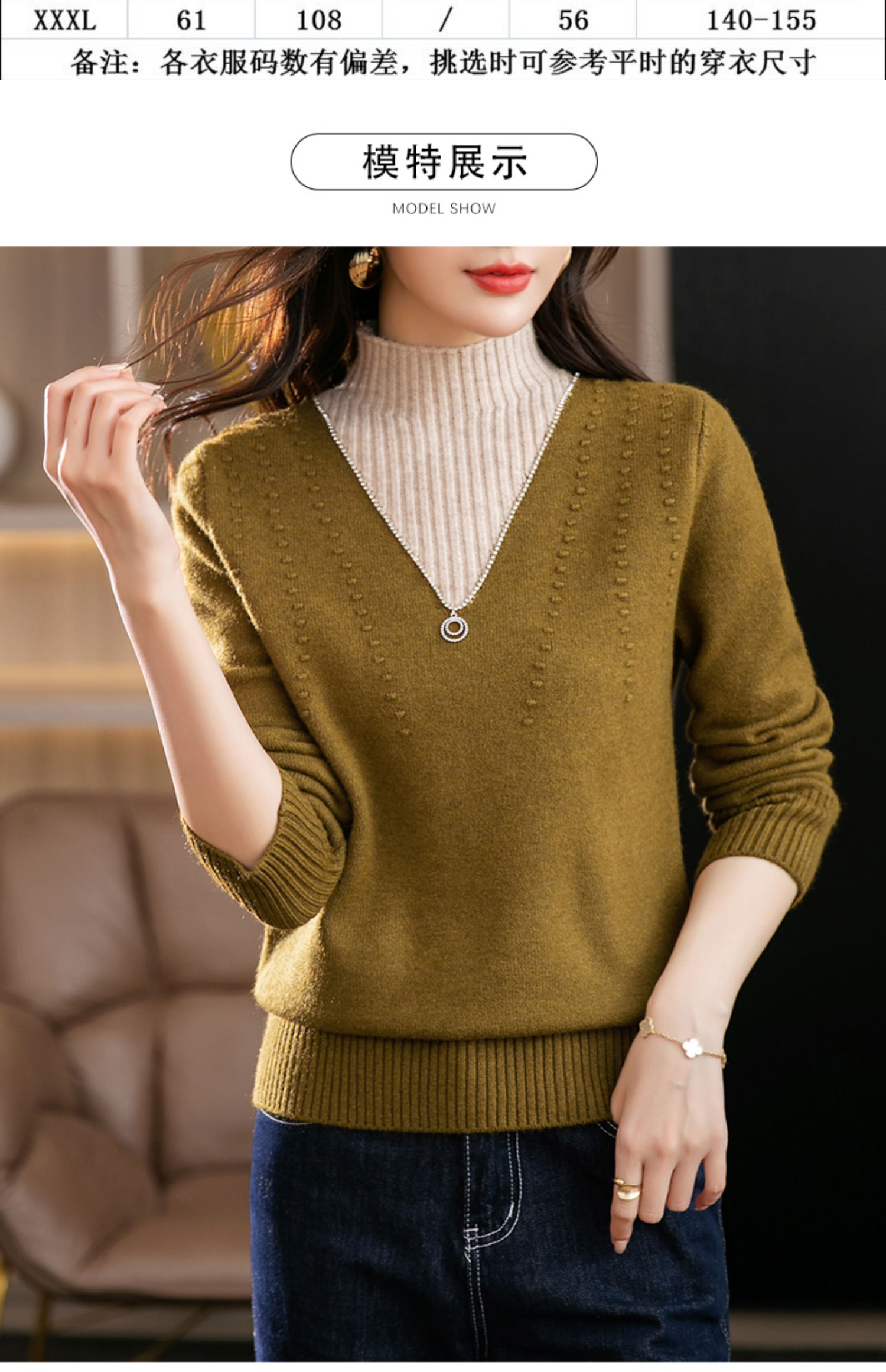 半高领打底衫假两件拼色短款针织毛衣CC-9-6839