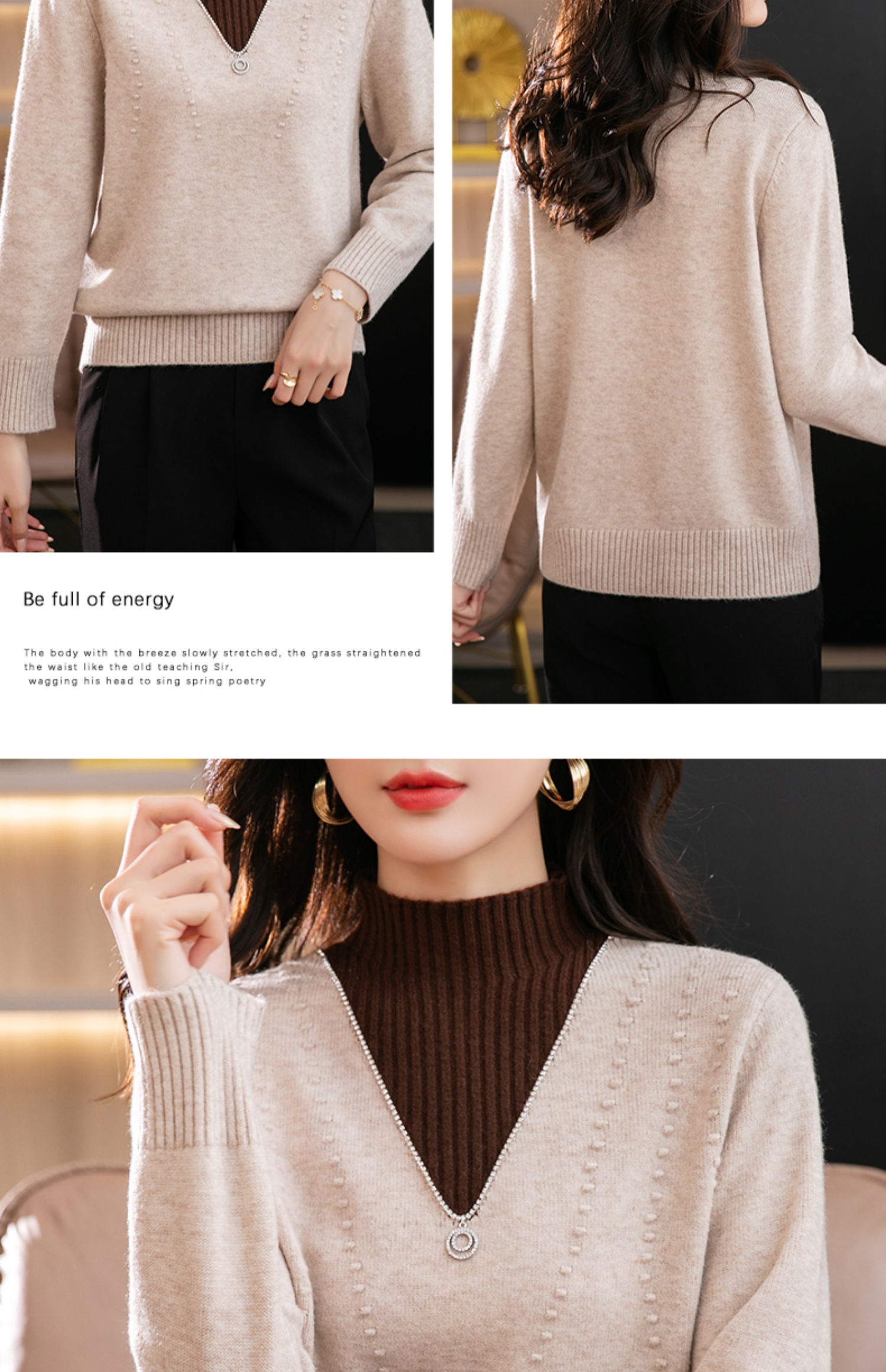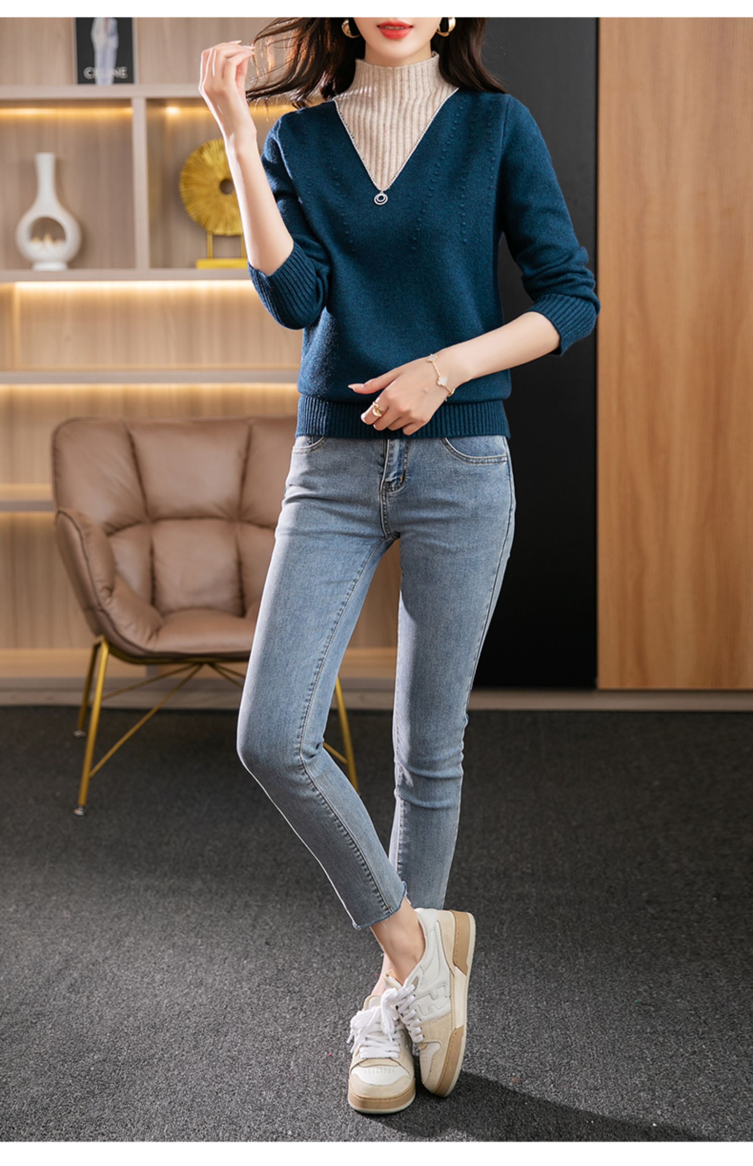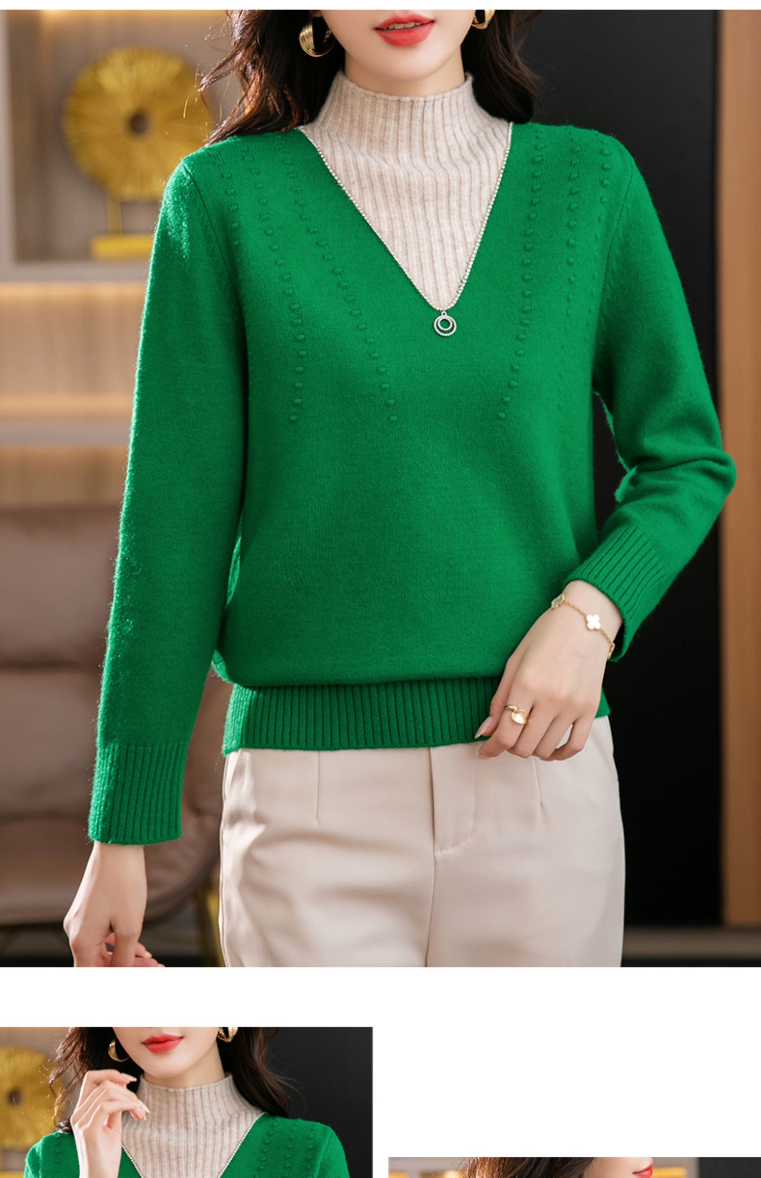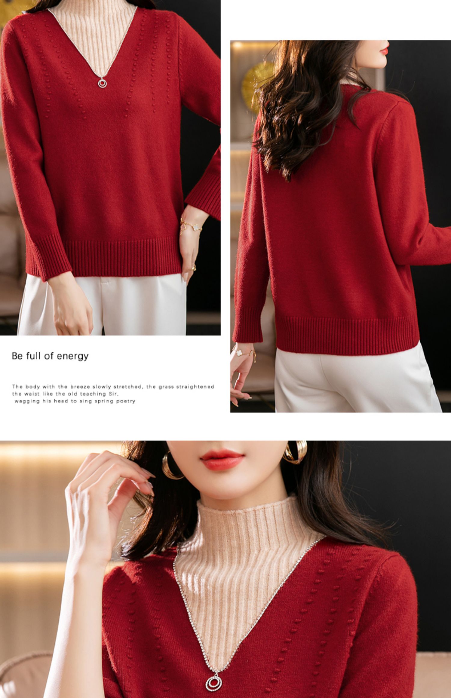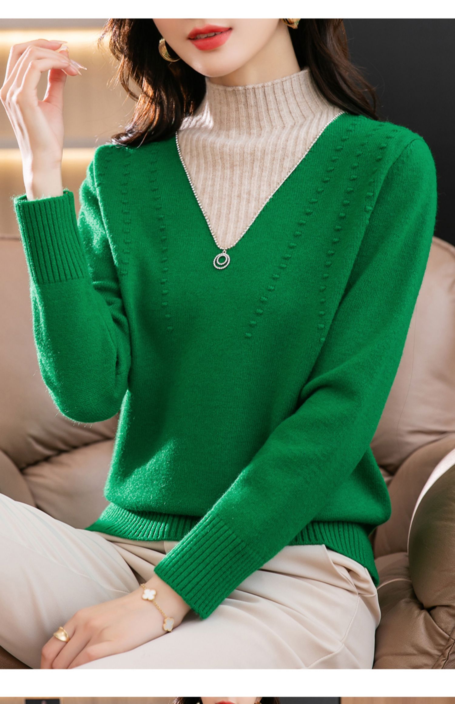 半高领打底衫假两件拼色短款针织毛衣CC-9-6839