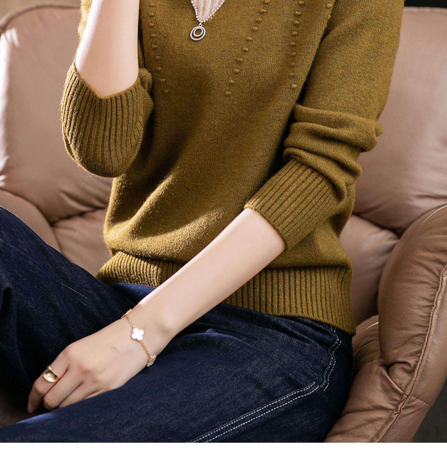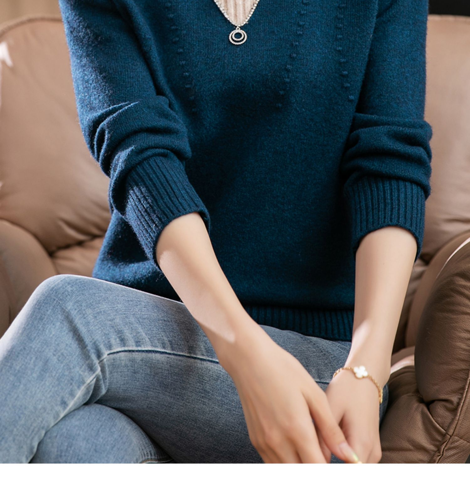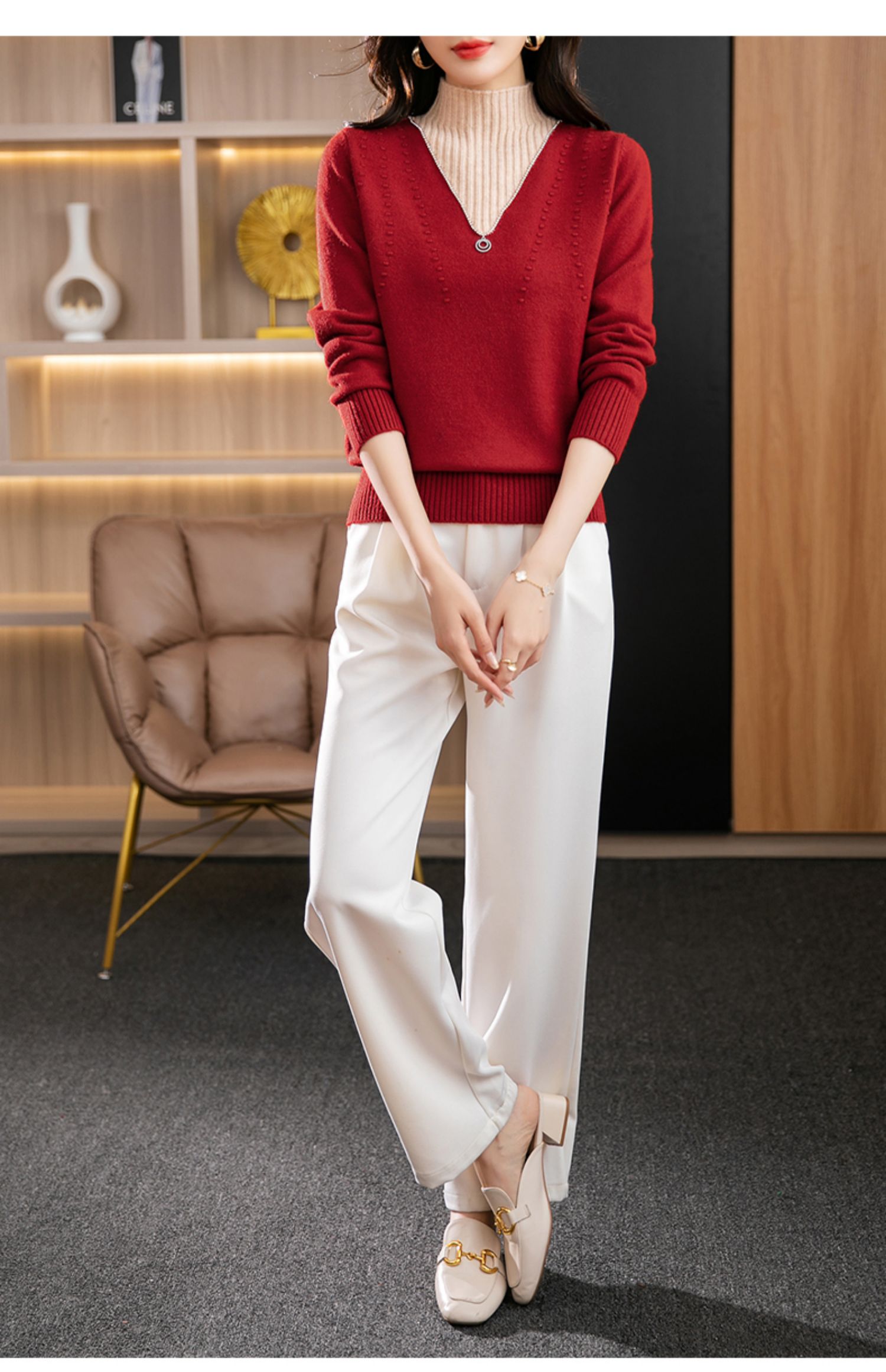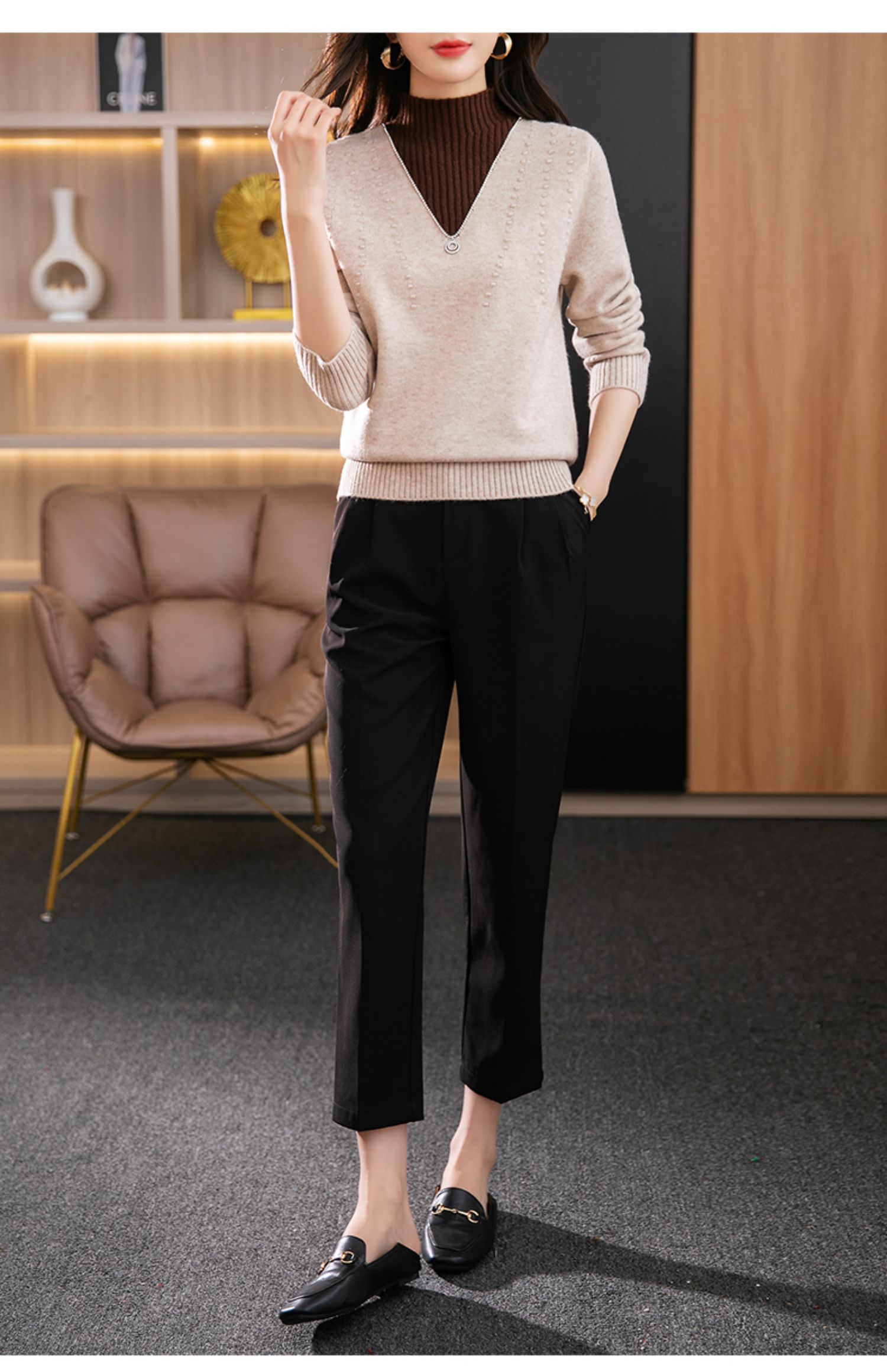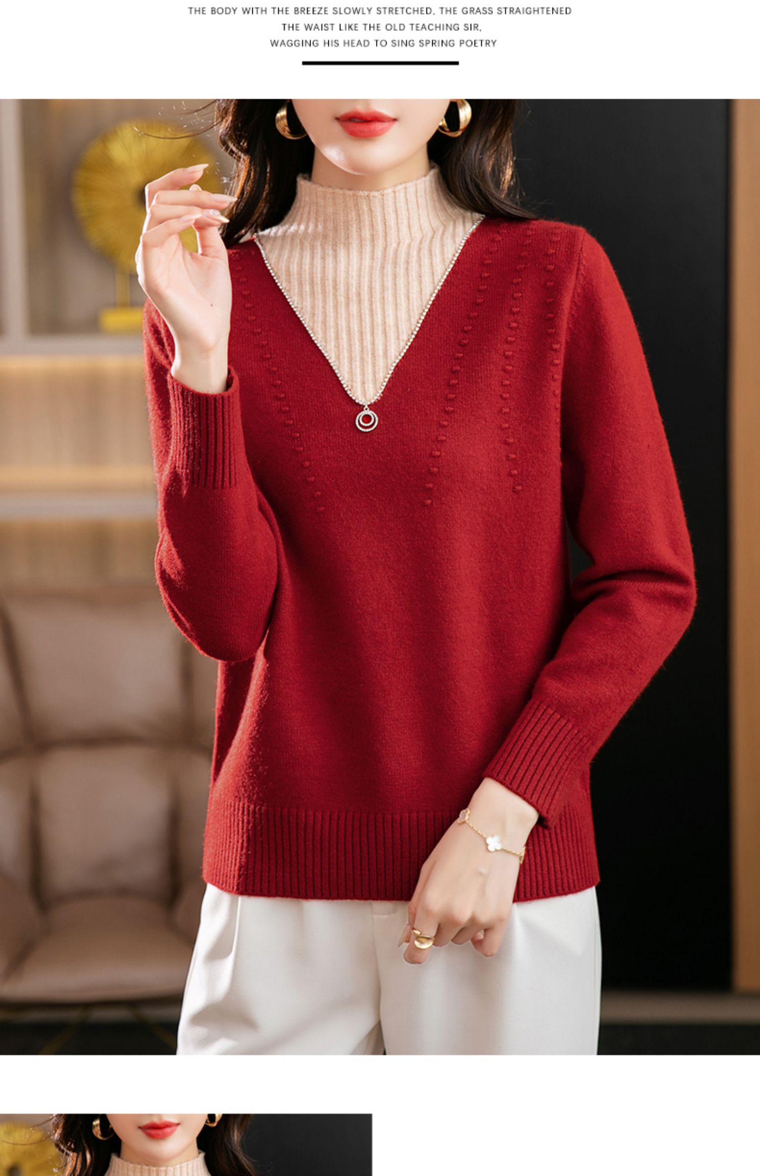 半高领打底衫假两件拼色短款针织毛衣CC-9-6839