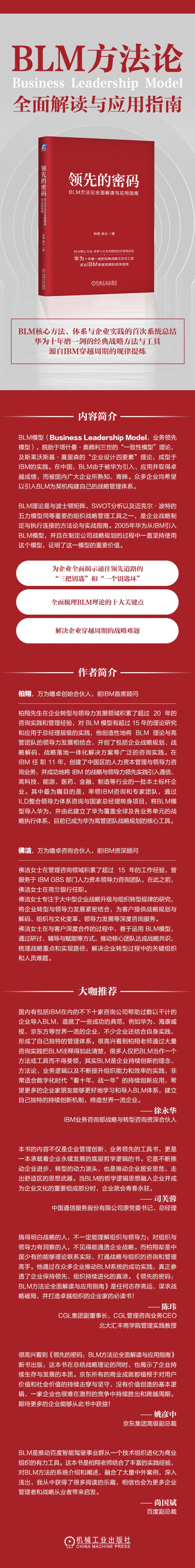 柏翔博士是BLM国内实践领域最为权威的代表专家,他早年供职于IBM,最早接触BLM理论在IBM内部的应用实践,当华为找到IBM,希望全面引入BLM时,是柏翔博士和他的人力资本管理咨询团队承接了此项目,因此可以说,柏翔博士见证了BLM理论在国内企业界的最初导入和蓬勃发展过程。