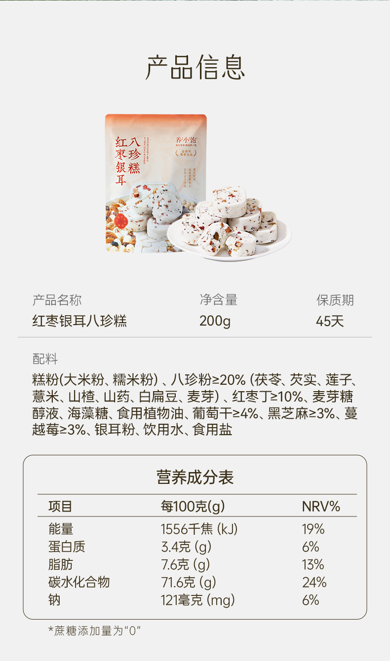 金燕耳养小饱 红枣银耳八珍糕 山药红枣茯苓 不加蔗糖 健康小零食 饱腹无负担