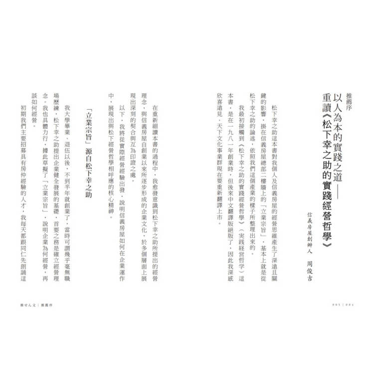 本書為松下幸之助在其六十多年事業經驗中,淬煉而生的實踐經營哲學: