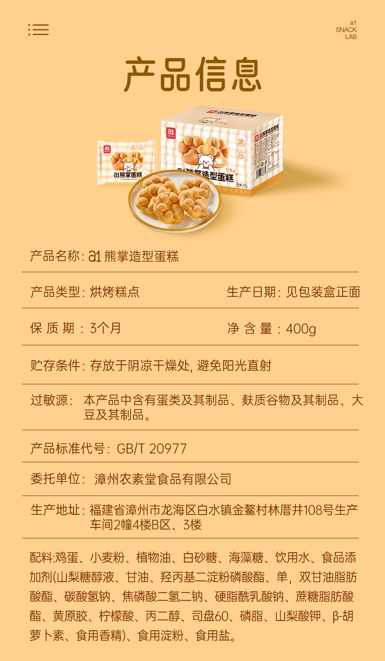 a1 熊掌造型蛋糕 400g/400g*2