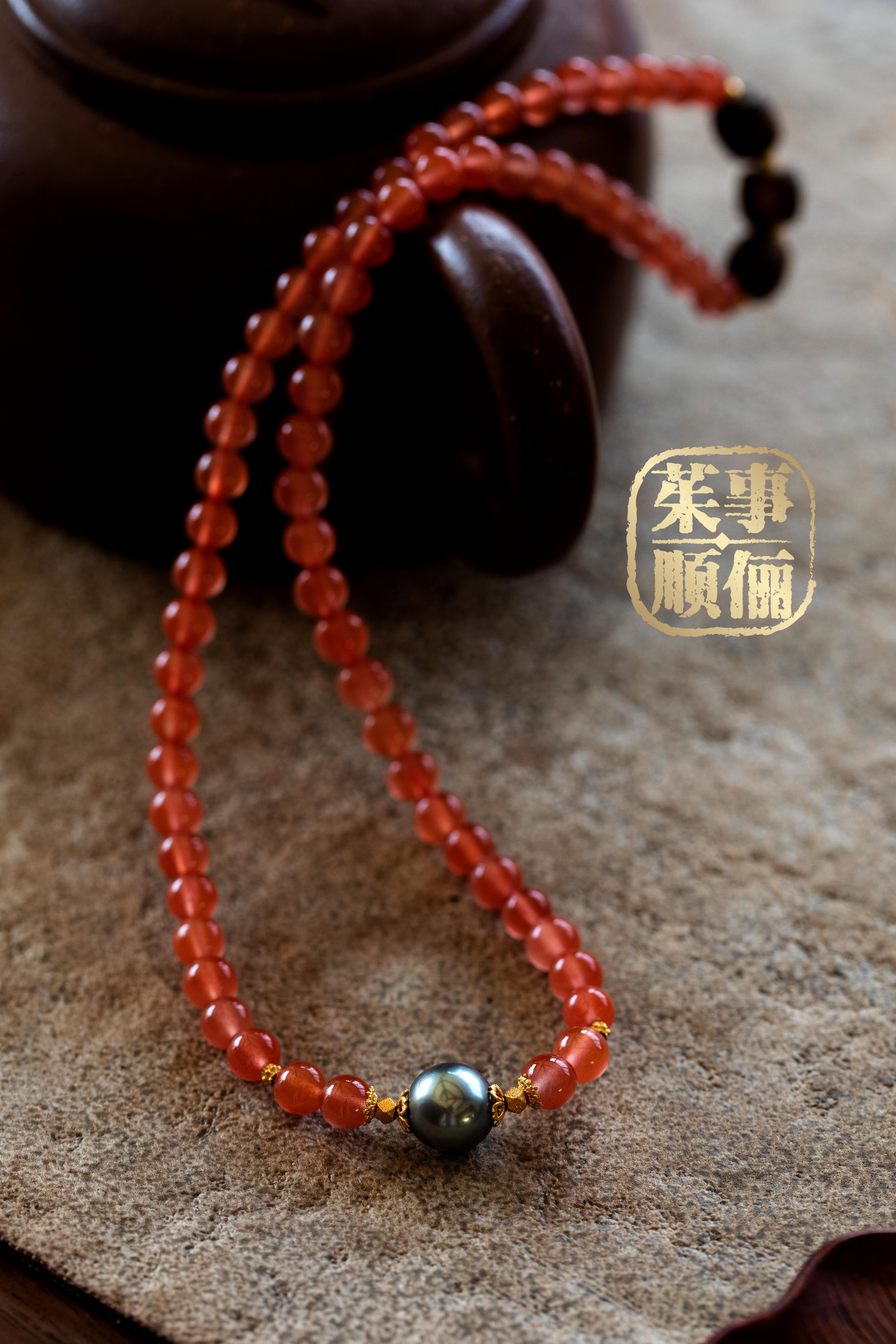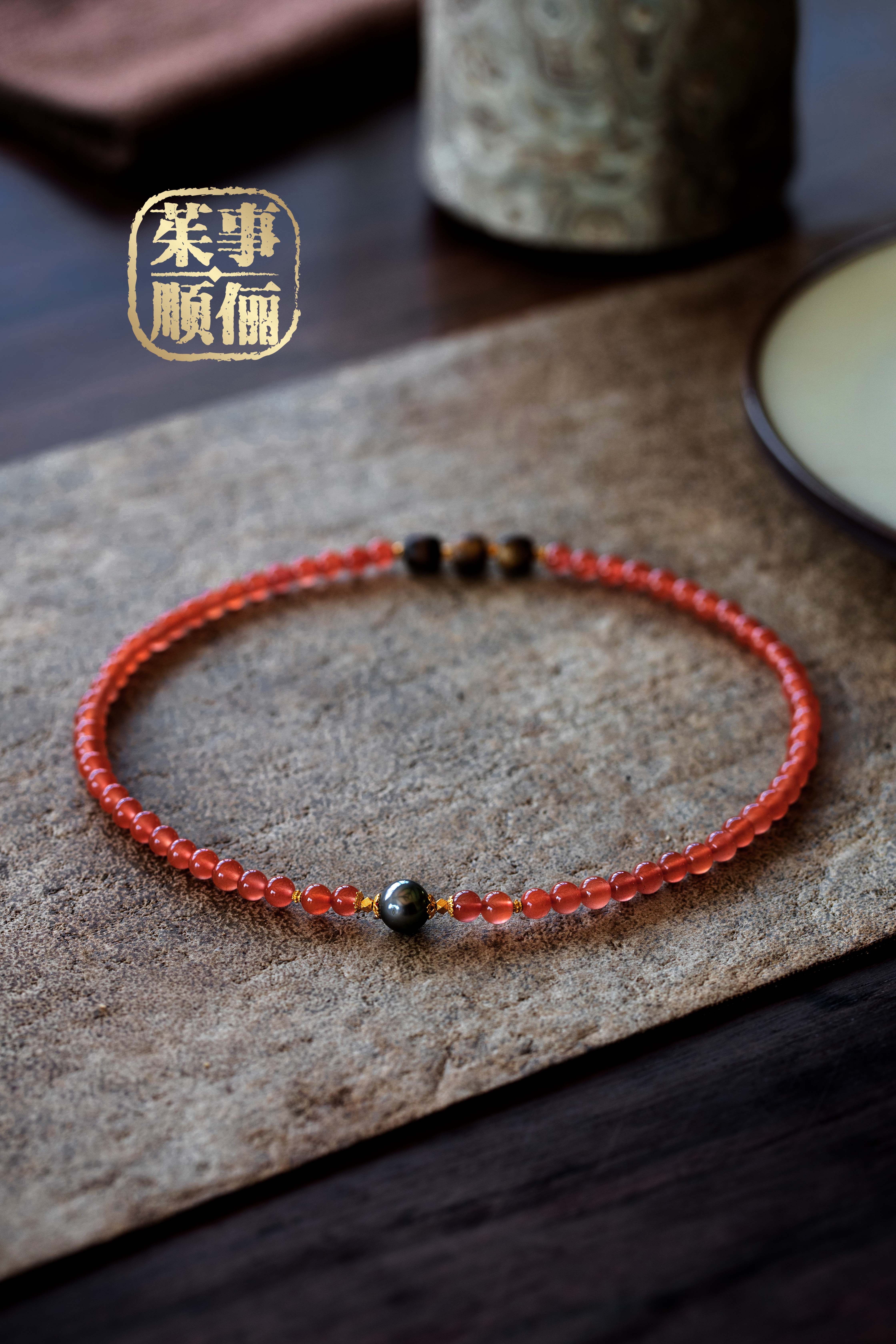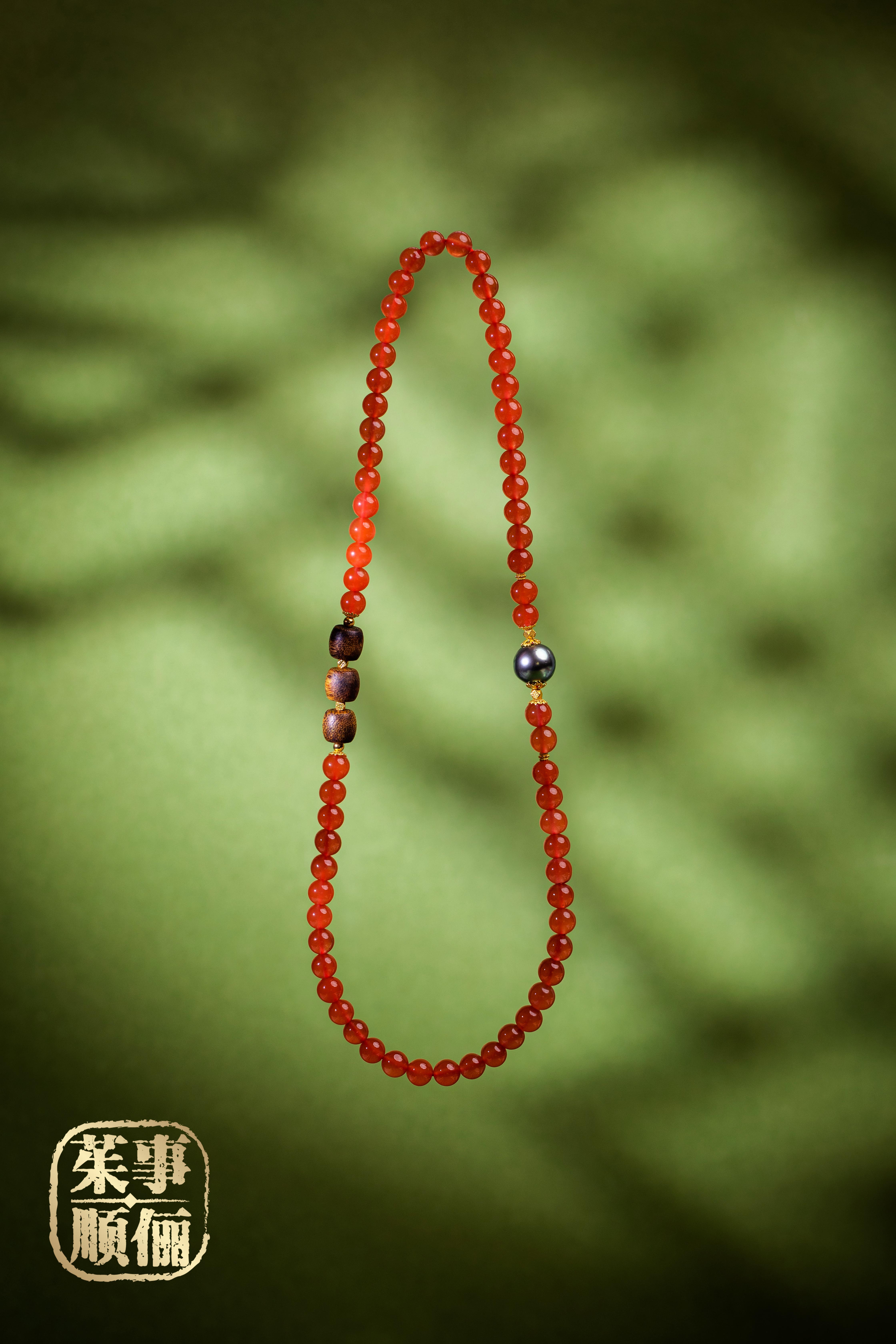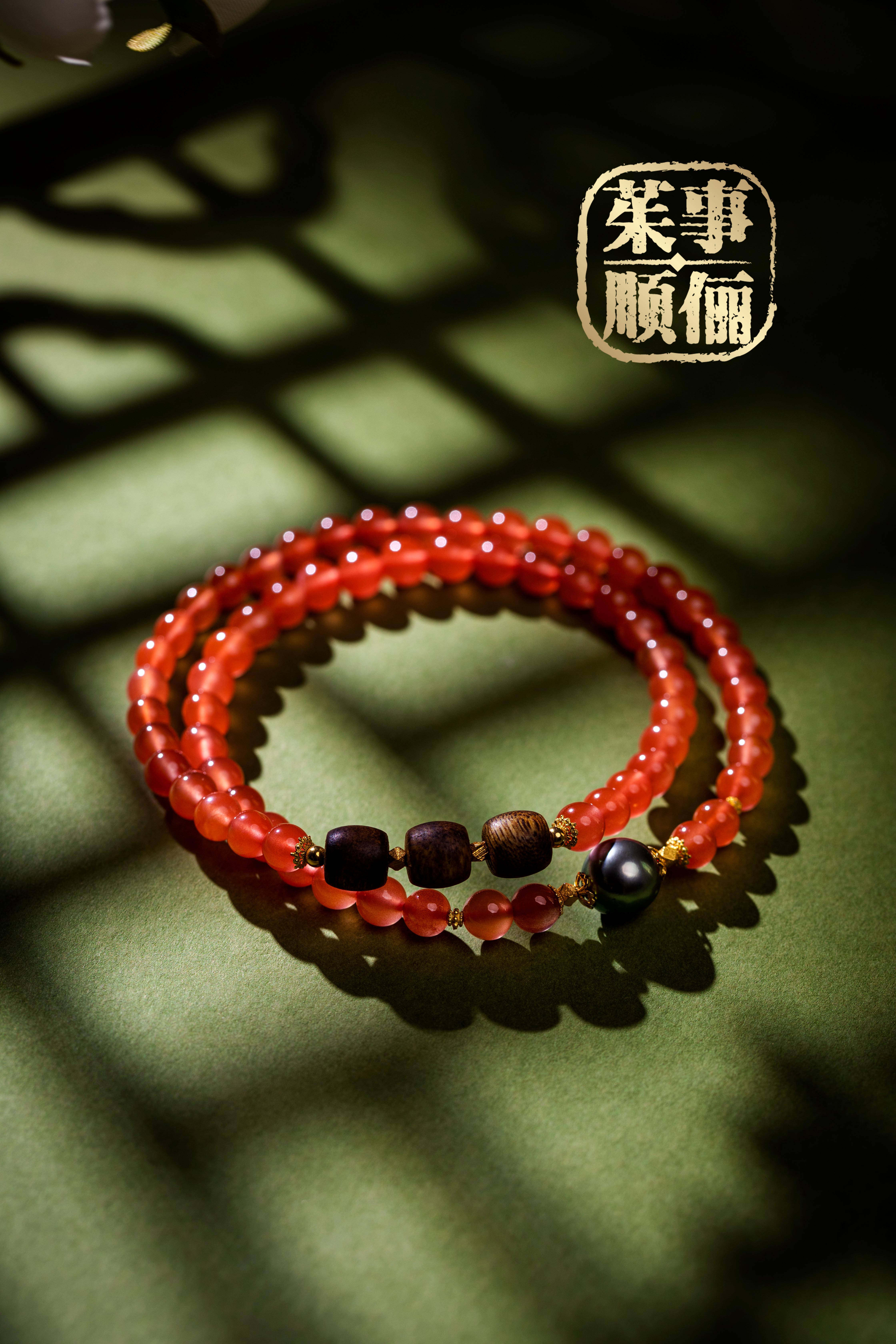 【茱事顺俪】18K黄金沉香南红珍珠手链