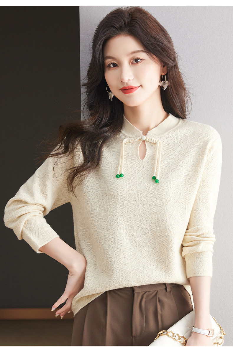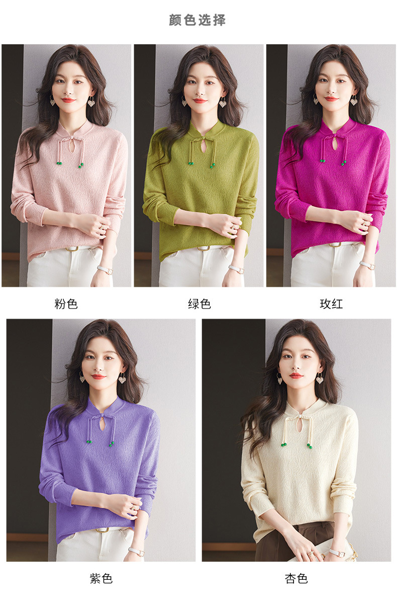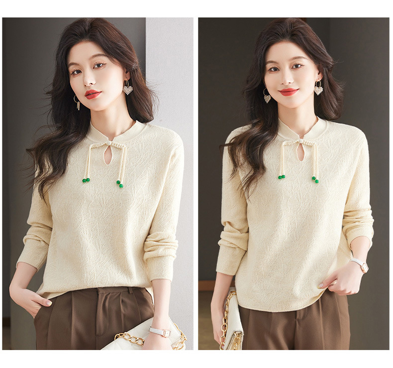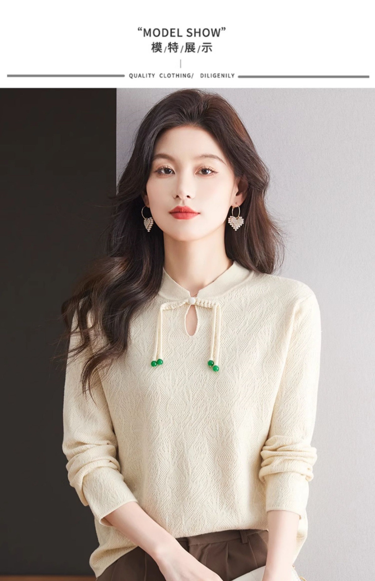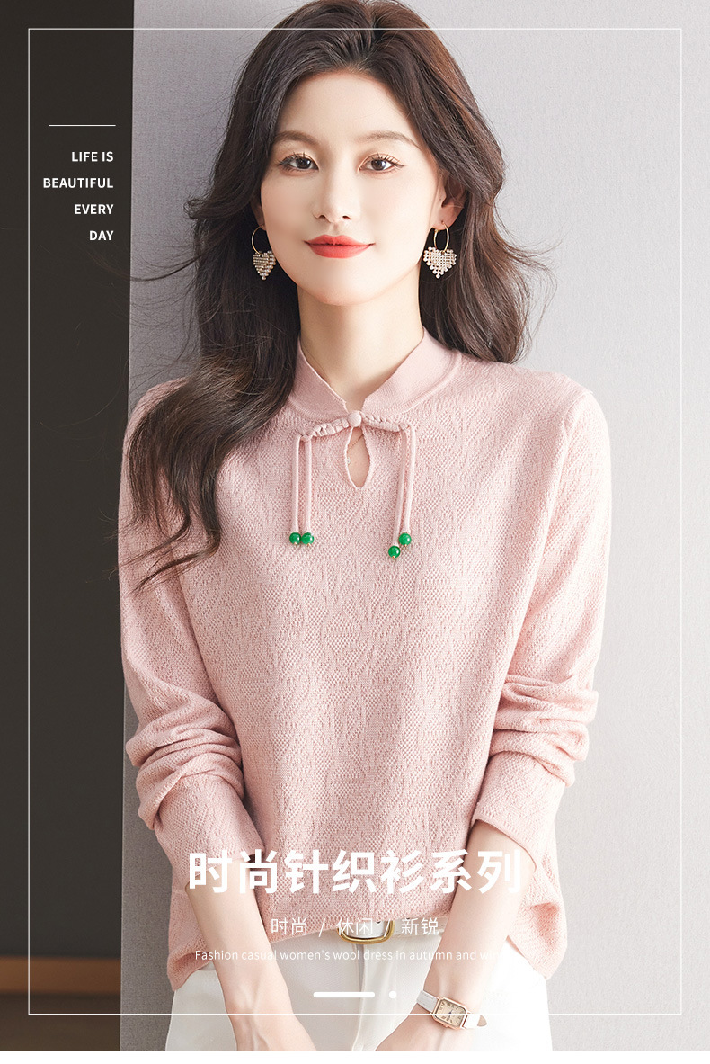 新中式打底衫洋气质针织上衣,时尚国风设计感小衫CC- 56-5649
