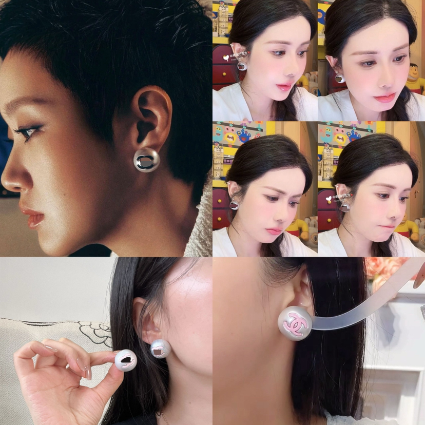 826-3 真香老渠道 25P爆款 韦雪 双C字母大珍珠 耳环 黑色/粉色