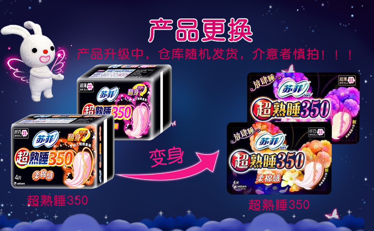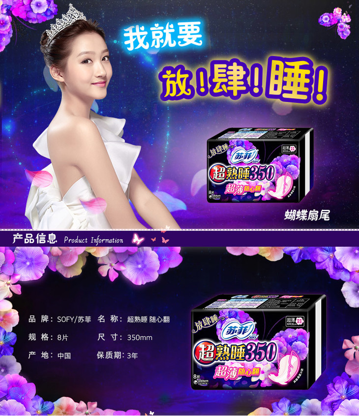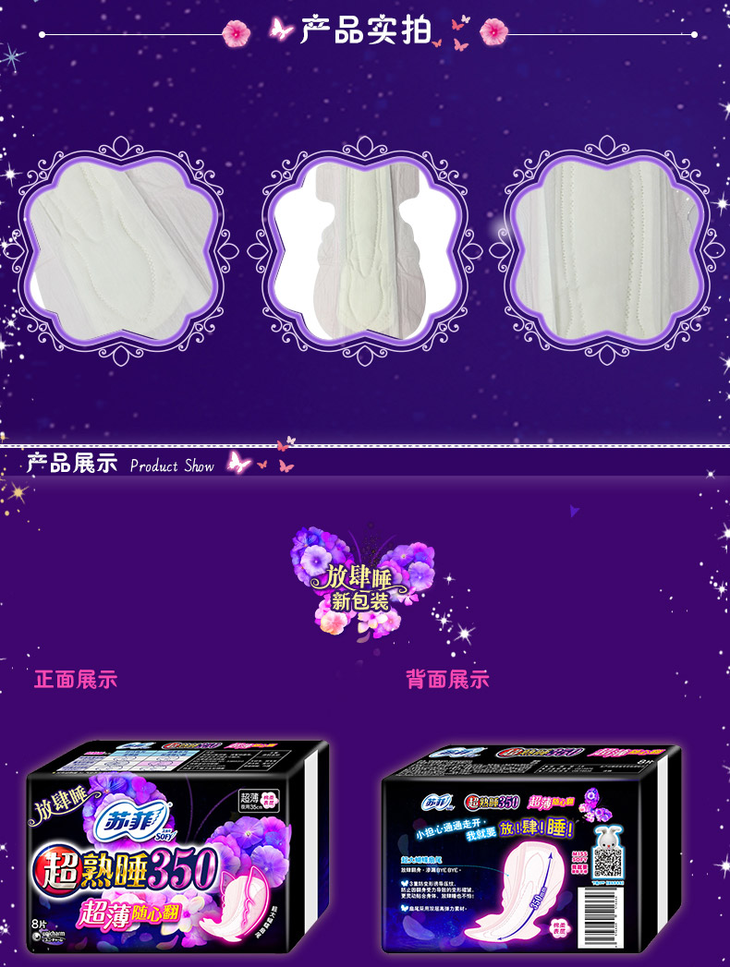 苏菲超熟睡超薄随心翻350 棉质丝薄夜用 洁翼型 8片
