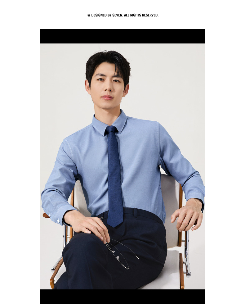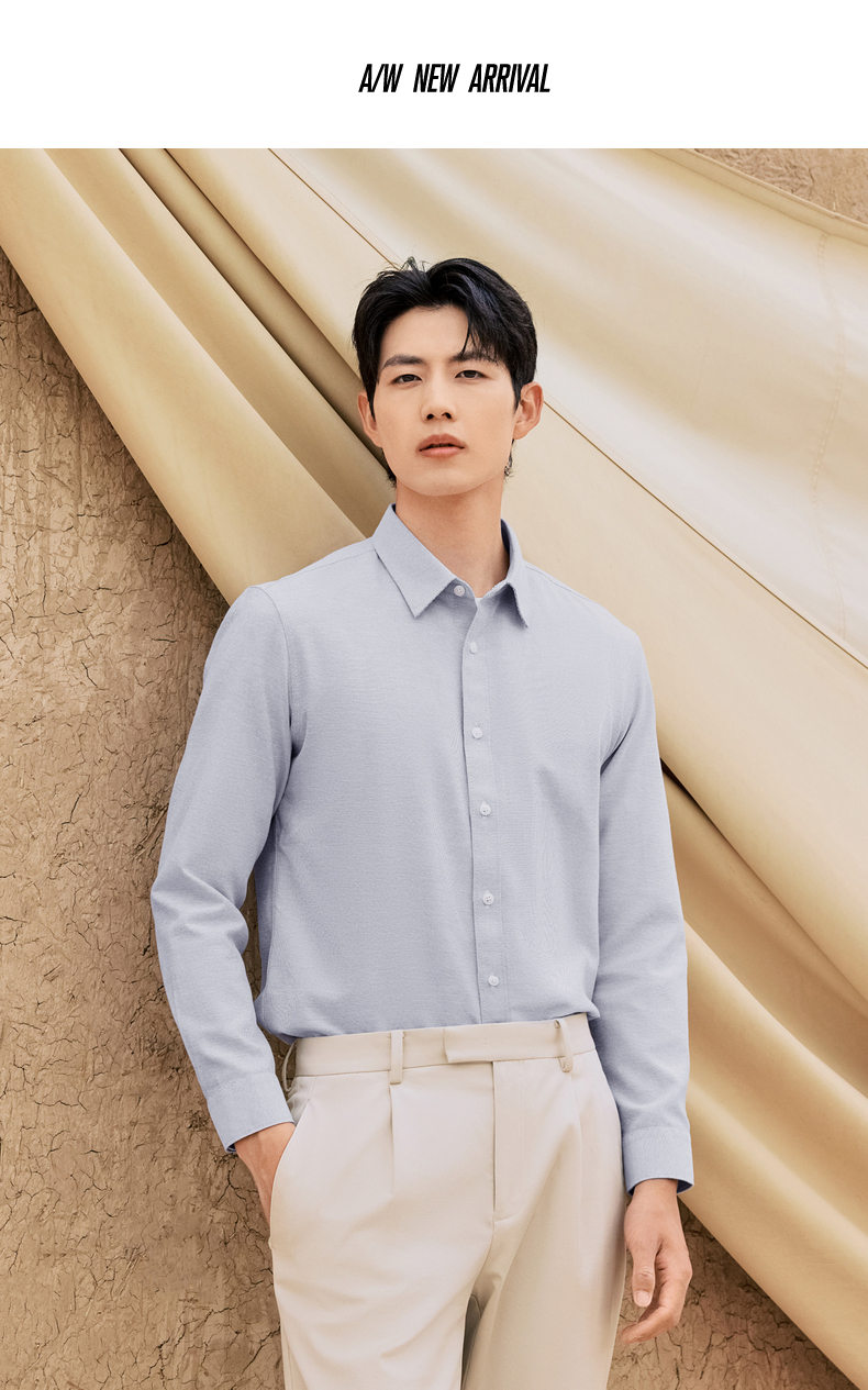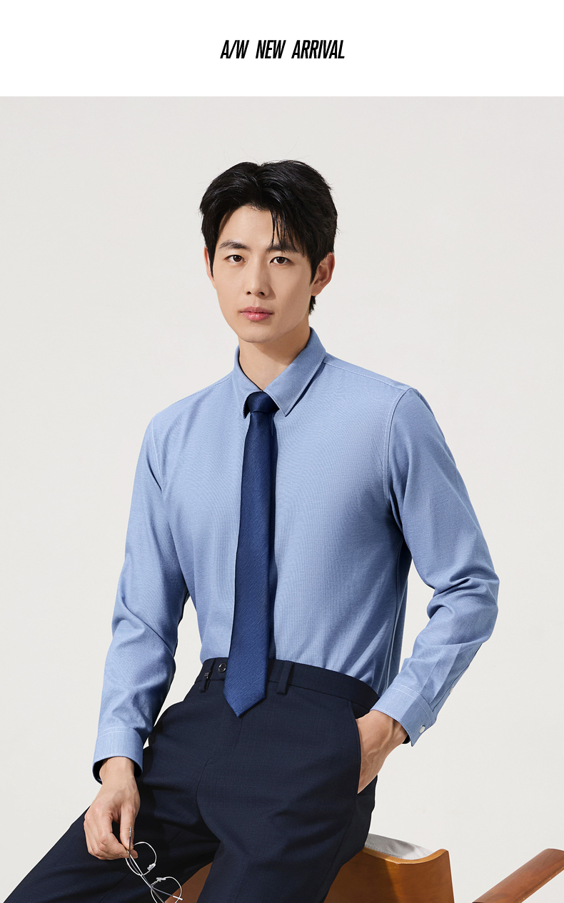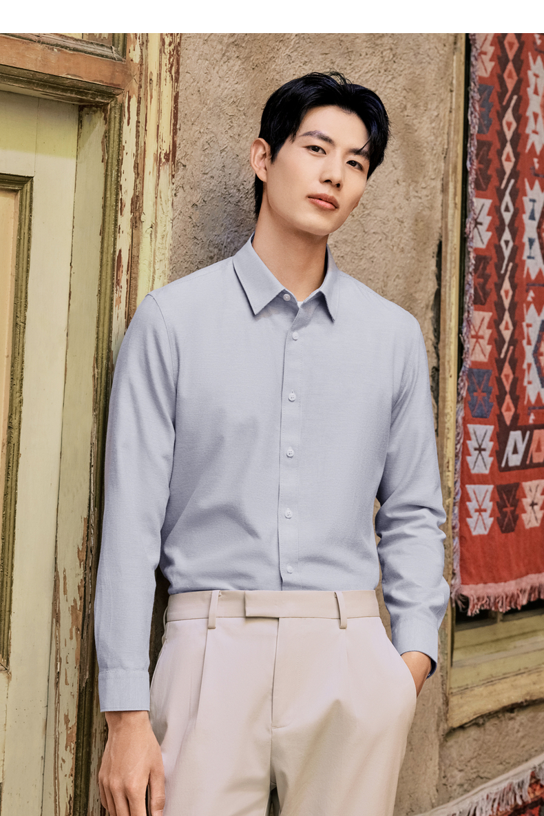 【牛津纺衬衫】柒牌男装长袖衬衫2025秋季新款百搭商务翻领衬衣男129A70680