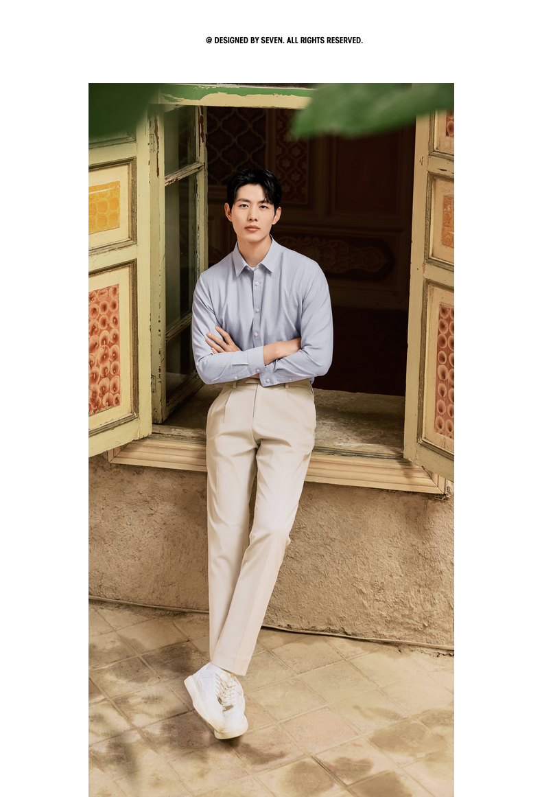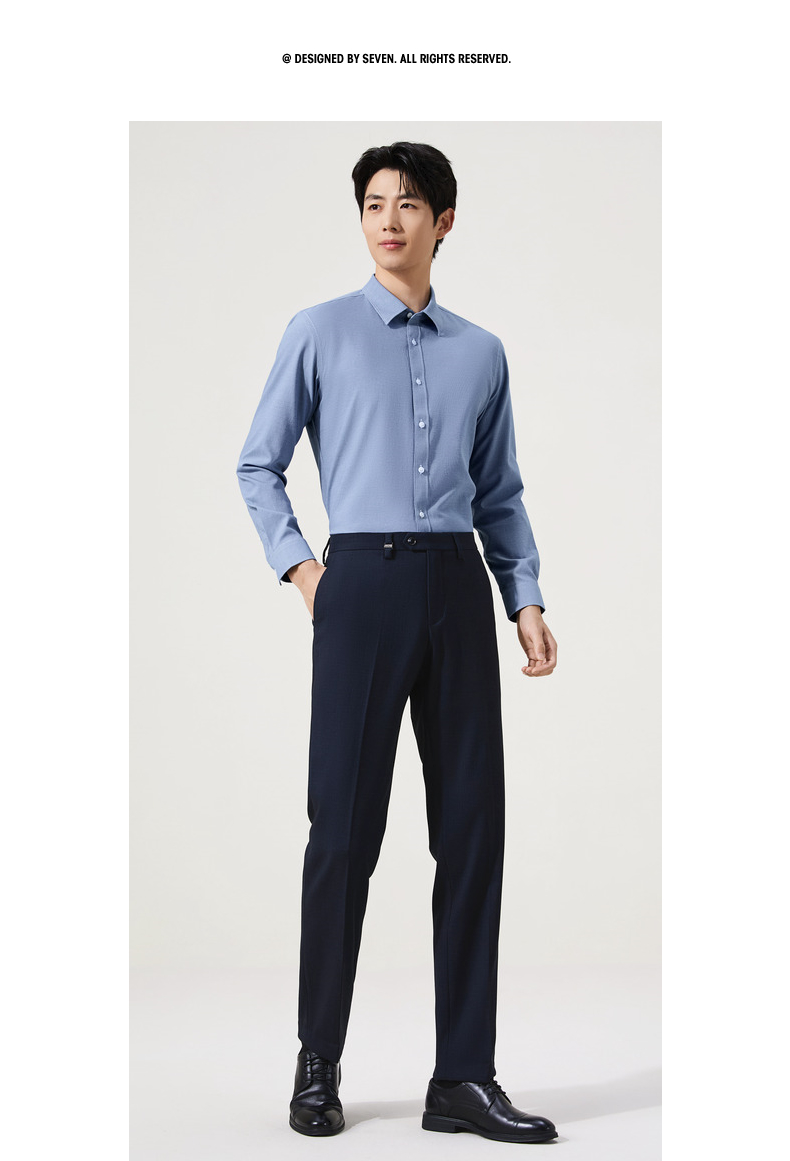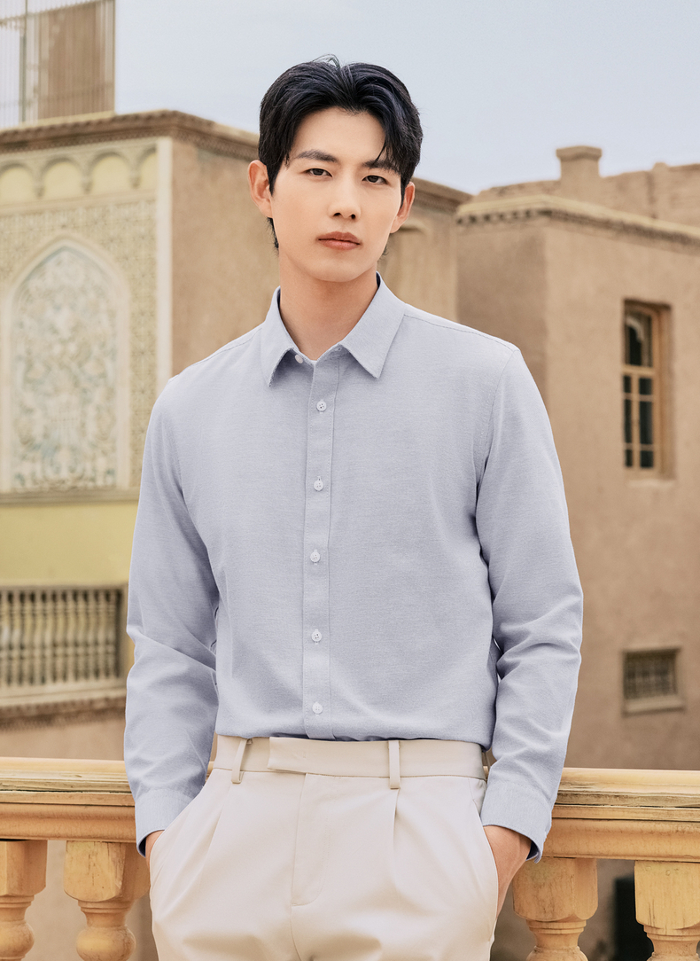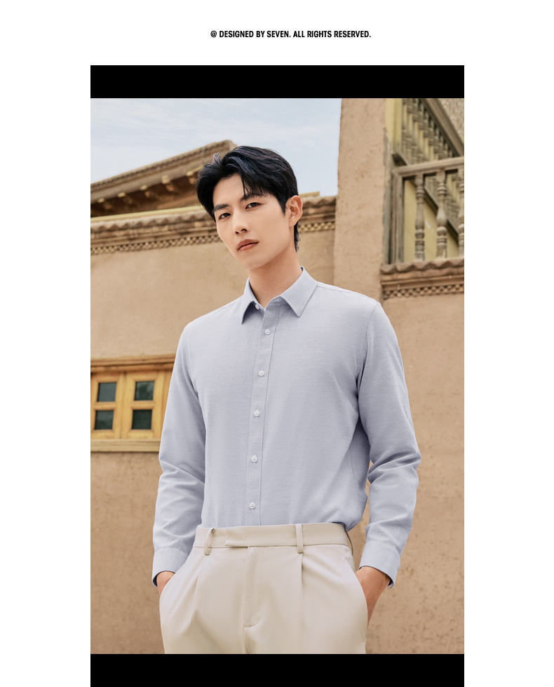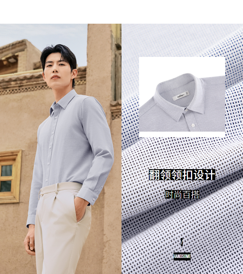 【牛津纺衬衫】柒牌男装长袖衬衫2025秋季新款百搭商务翻领衬衣男129A70680