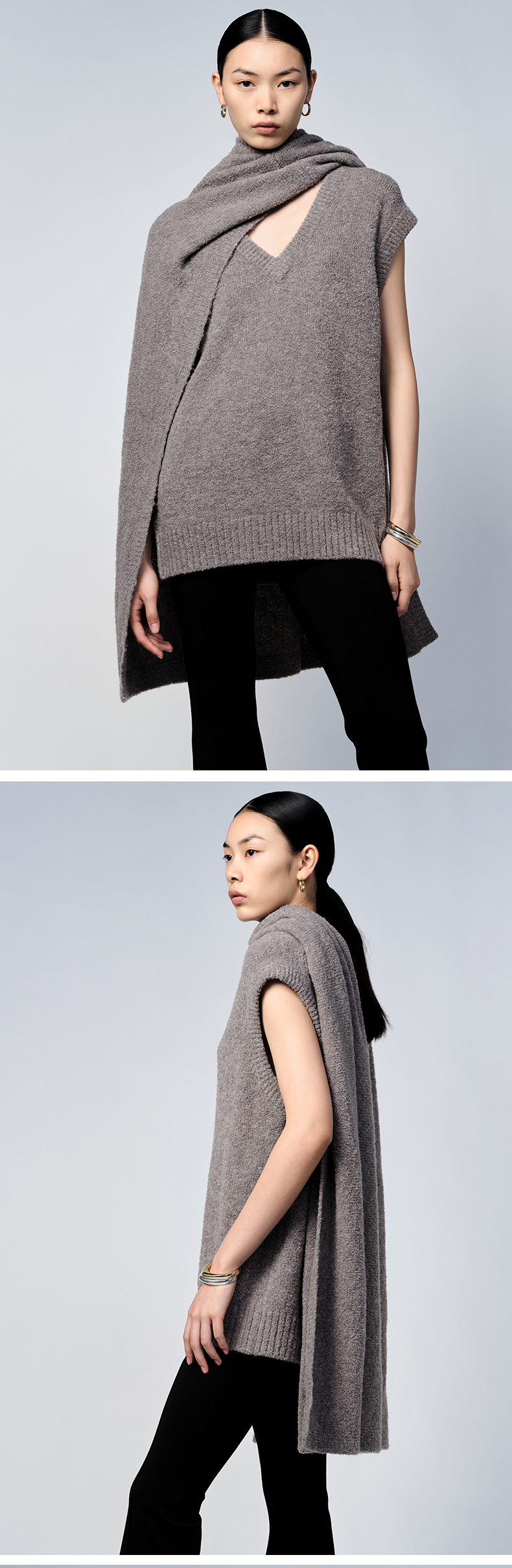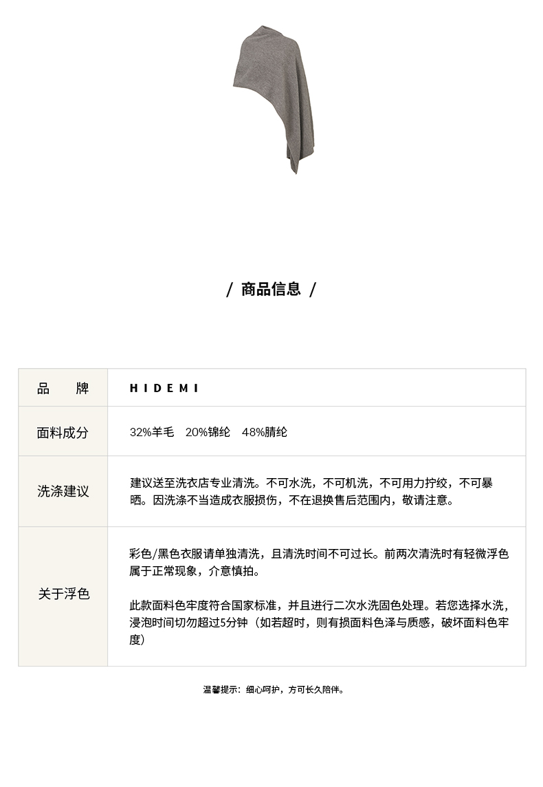 HIDEMI 美利奴羊毛系列雾灰色斗篷/披肩