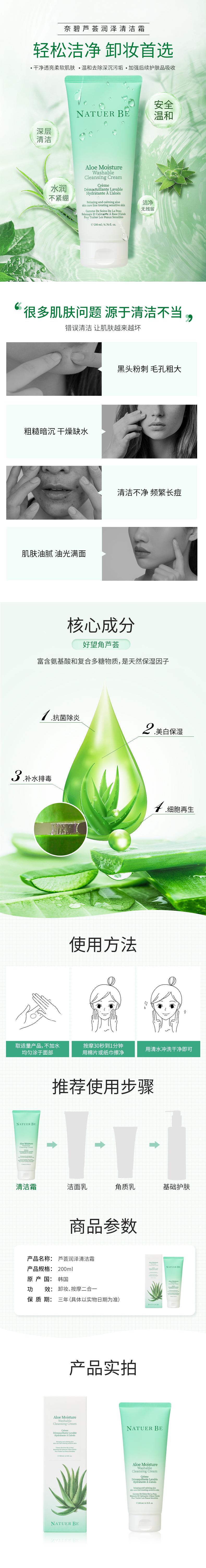 奈碧韩国原装进口芦荟清洁霜200ml