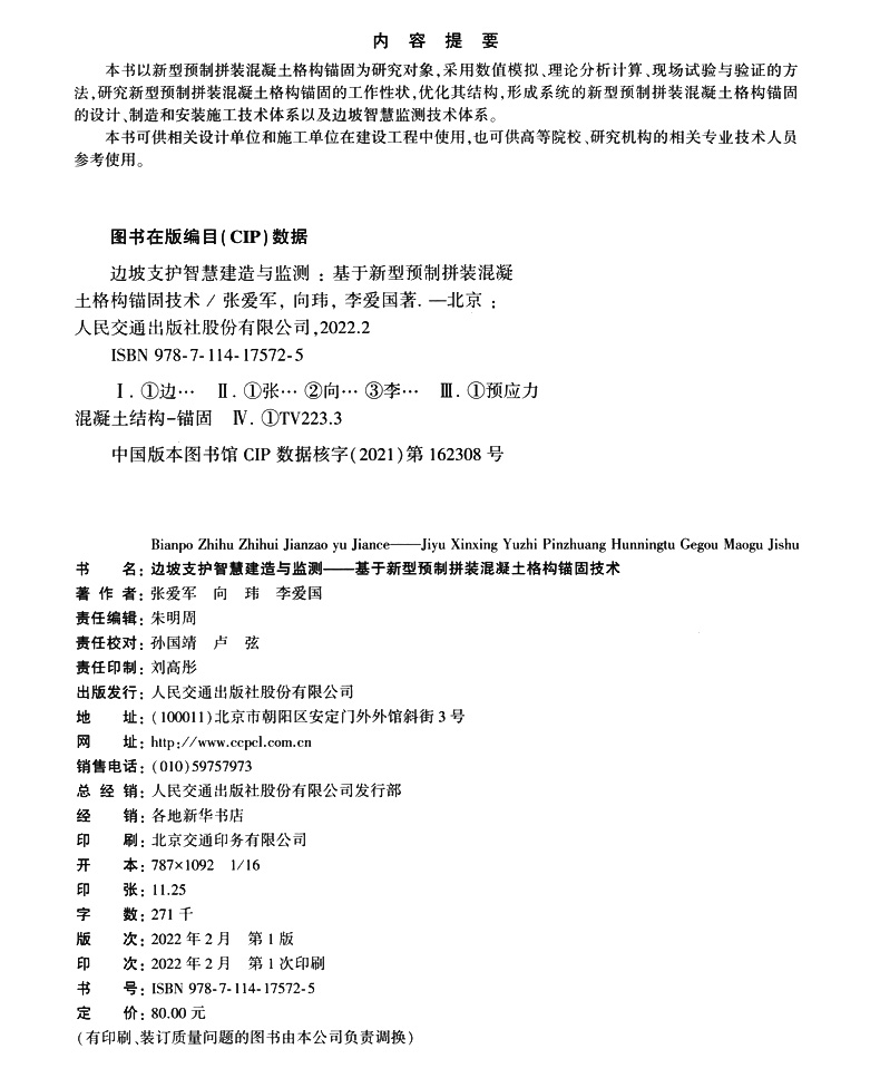 书名:边坡支护智慧建造与监测——基于新型预制拼装混凝土格构锚固技术