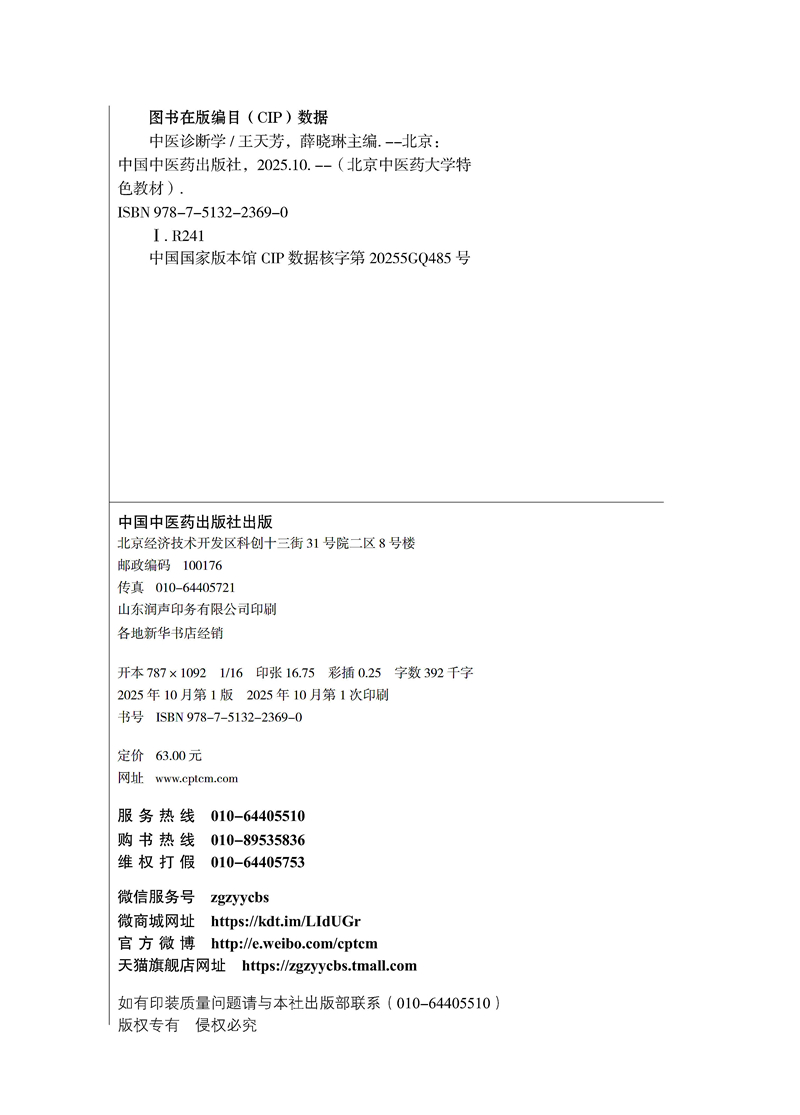 中医诊断学 北京中医药大学特色教材中医诊断学MOOC课程配套教材 王天芳 薛晓琳 供中医学中西医临床医学等专业用中国中医药出版社