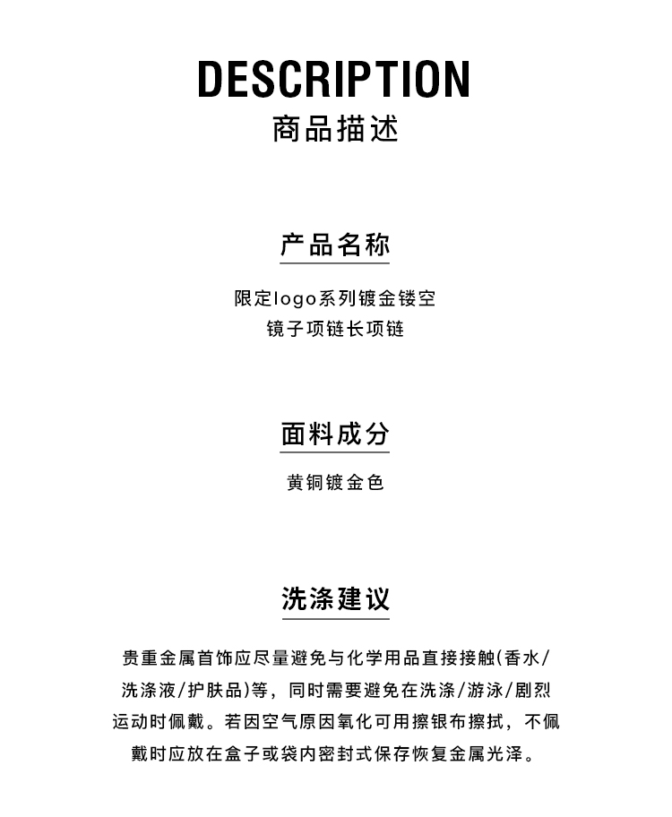HIDEMI 大秀款限定logo系列镀金镂空镜子项链长项链