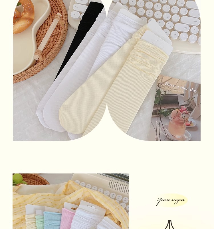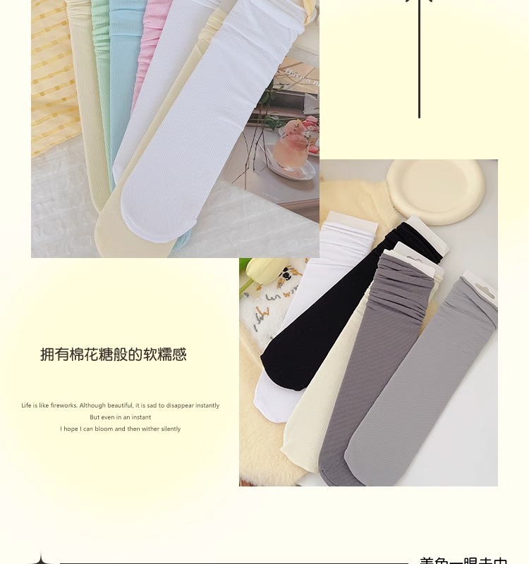 【百搭堆堆袜】袜子女夏季天鹅绒日系糖果色薄款中筒袜 夏天女士松口冰冰袜。ry