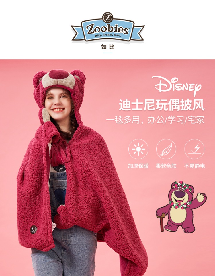 zoobies 迪士尼香味草莓熊可穿式羊羔绒披风