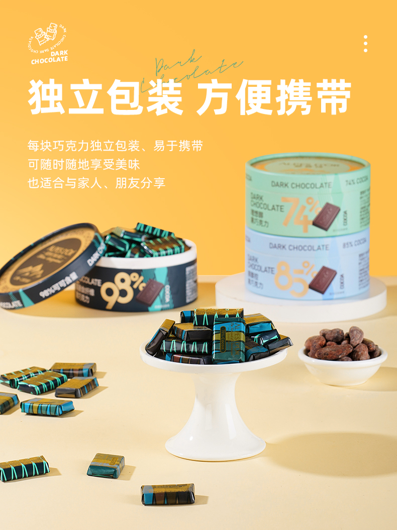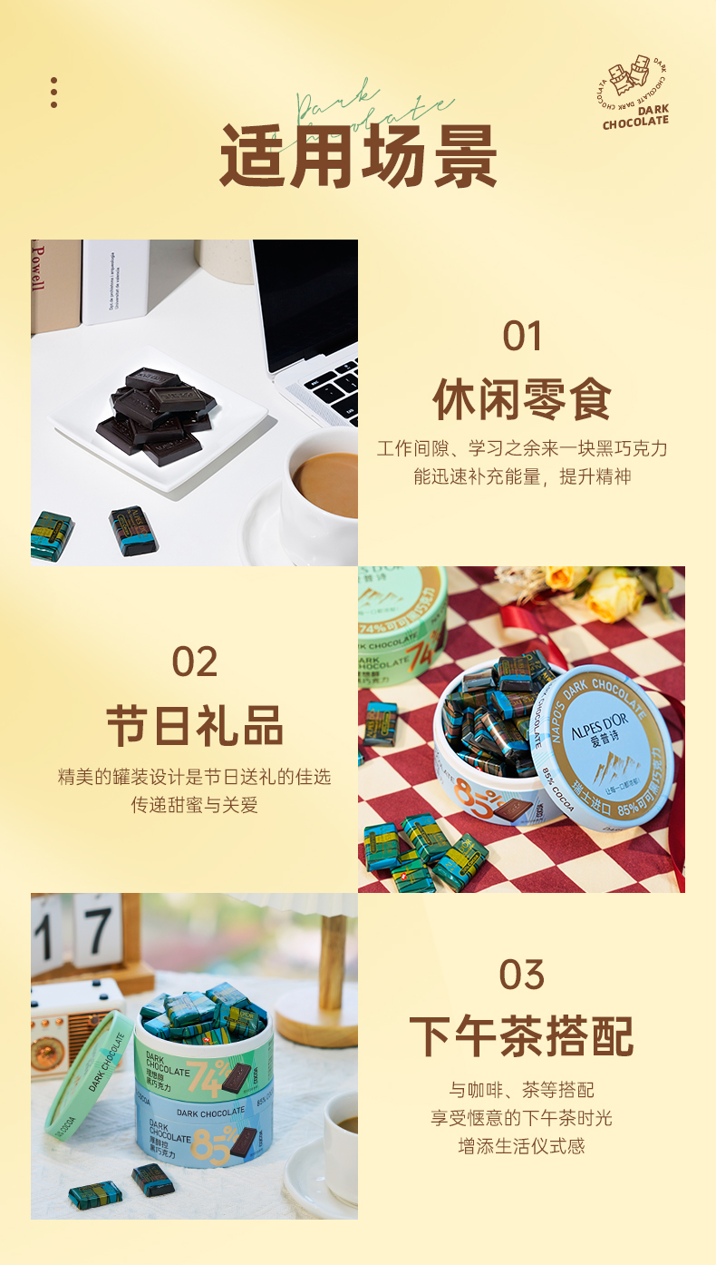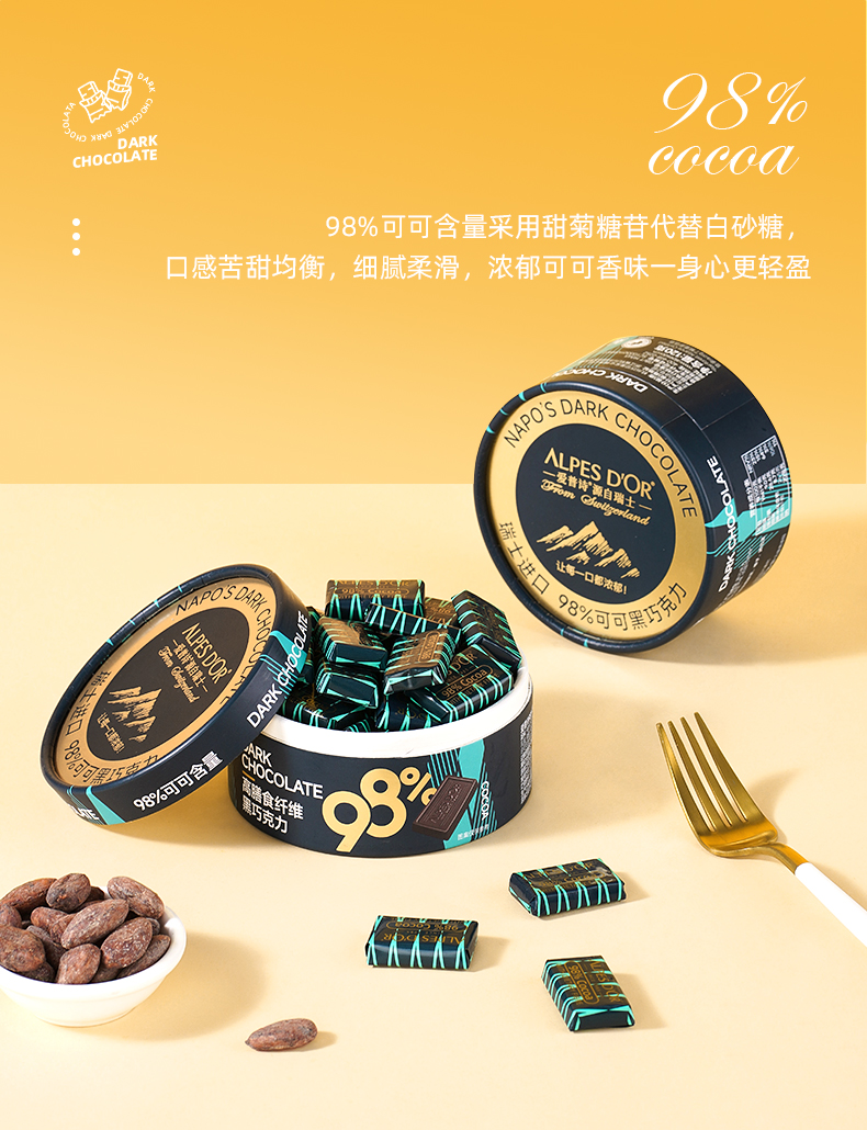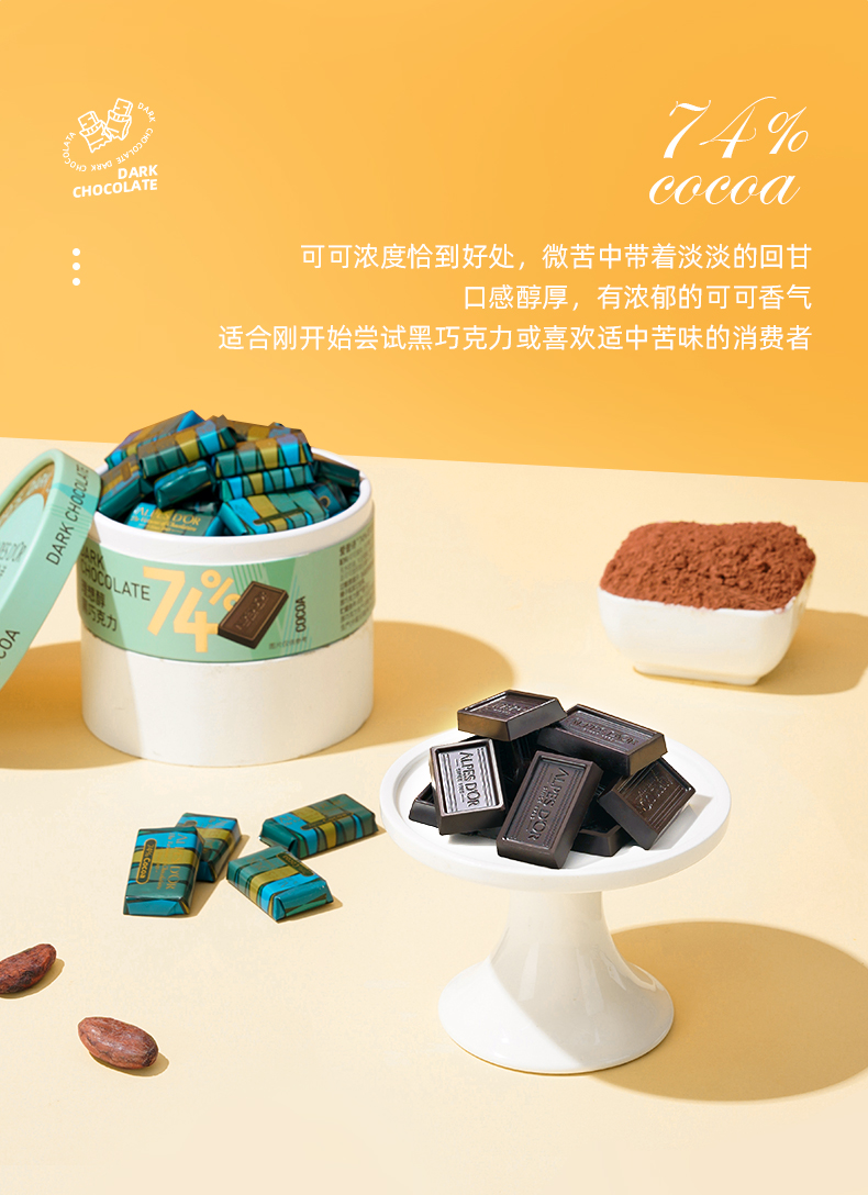 【中欧班列精选】瑞士爱普诗巧克力 原装进口Alpes d'Or爱普诗74%85%黑巧克力塑料罐装120g--纸罐
