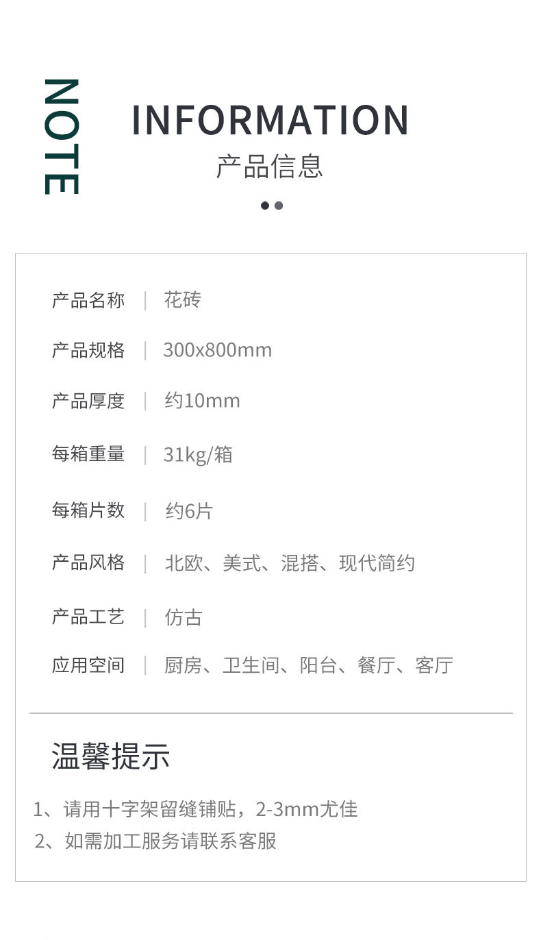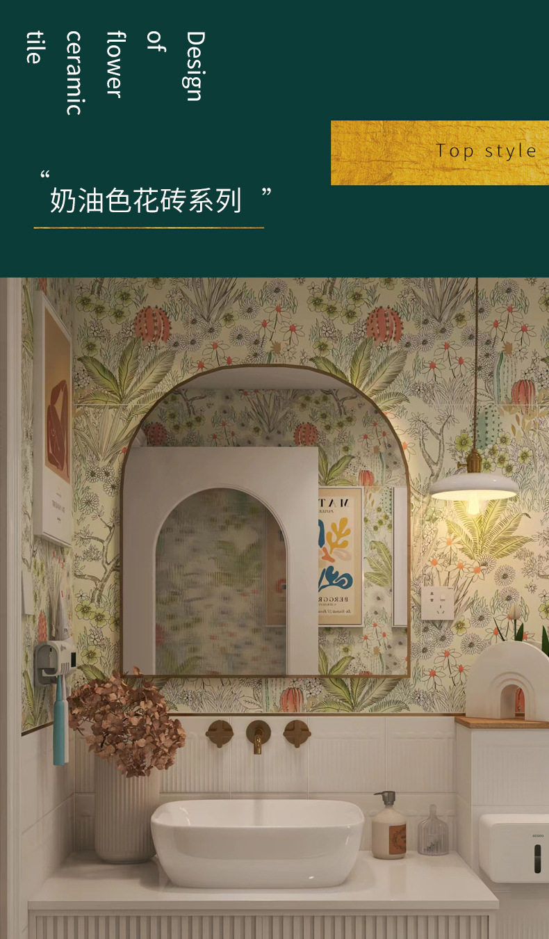 瓷砖侘寂地砖花砖浴室法式300x800厨房厕所卫生间风墙砖复古奶油