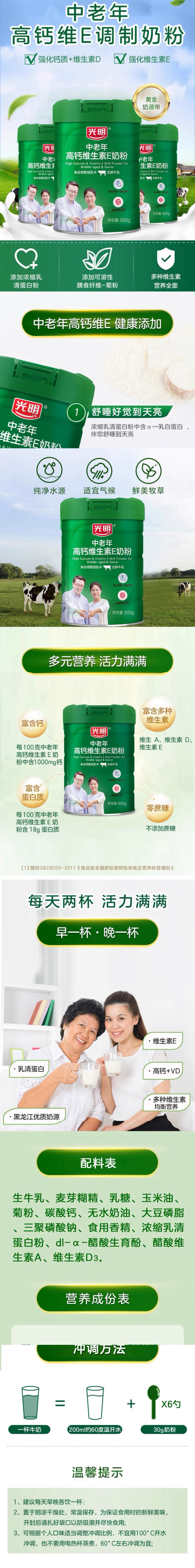 【中国农垦】光明 高钙维生素E调制奶粉800g罐装
