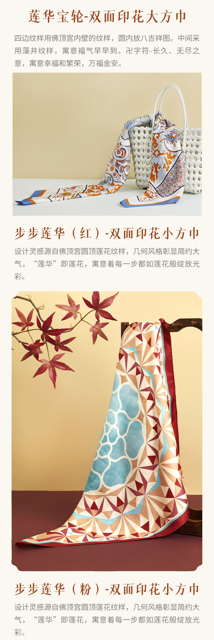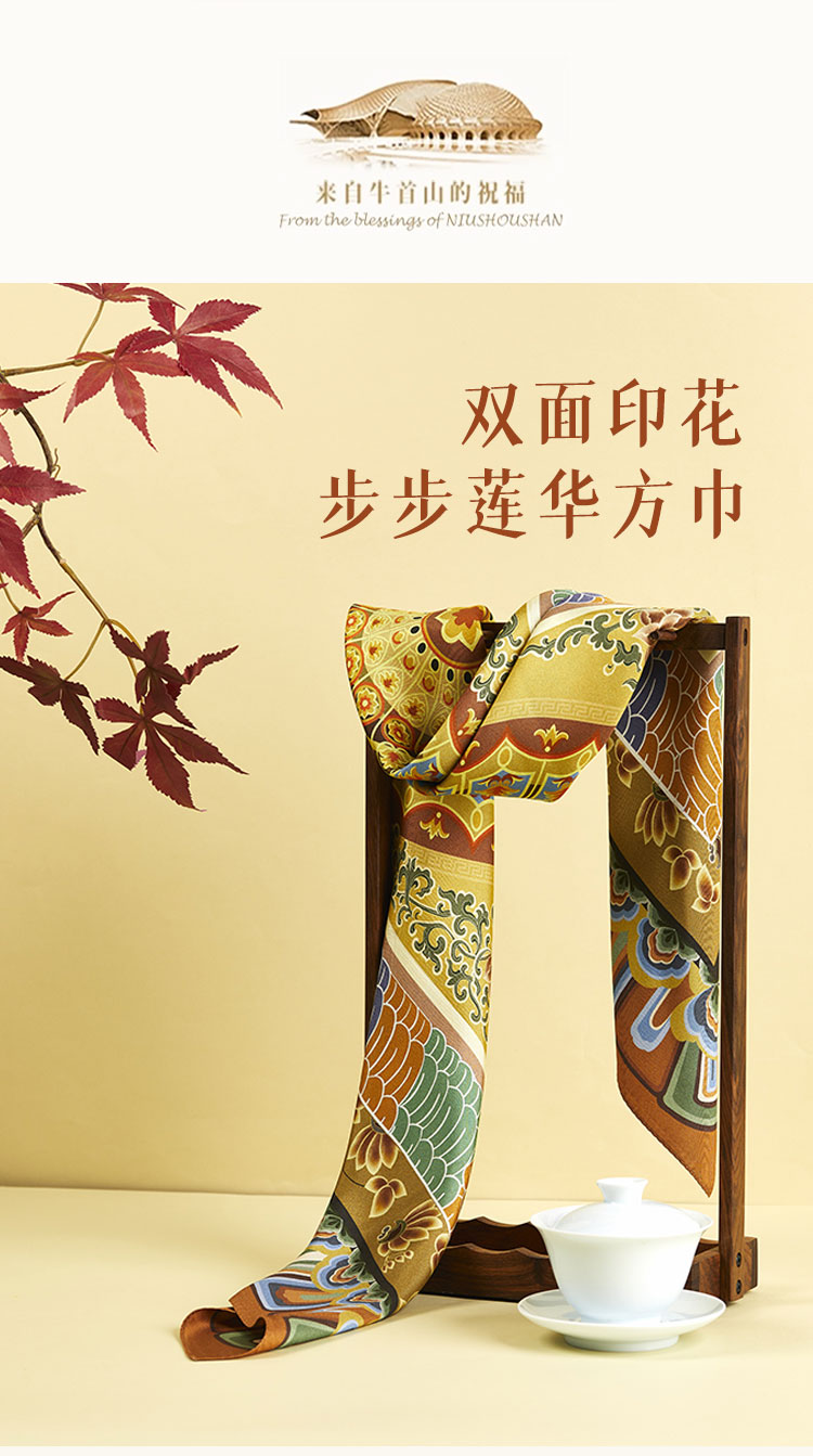 牛首山万事利联名步步莲华双面印花方巾敦煌风桑丝巾礼盒妈妈生日