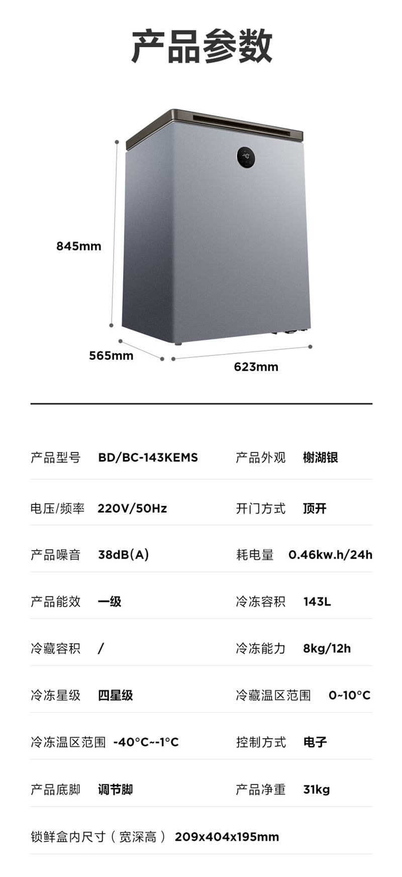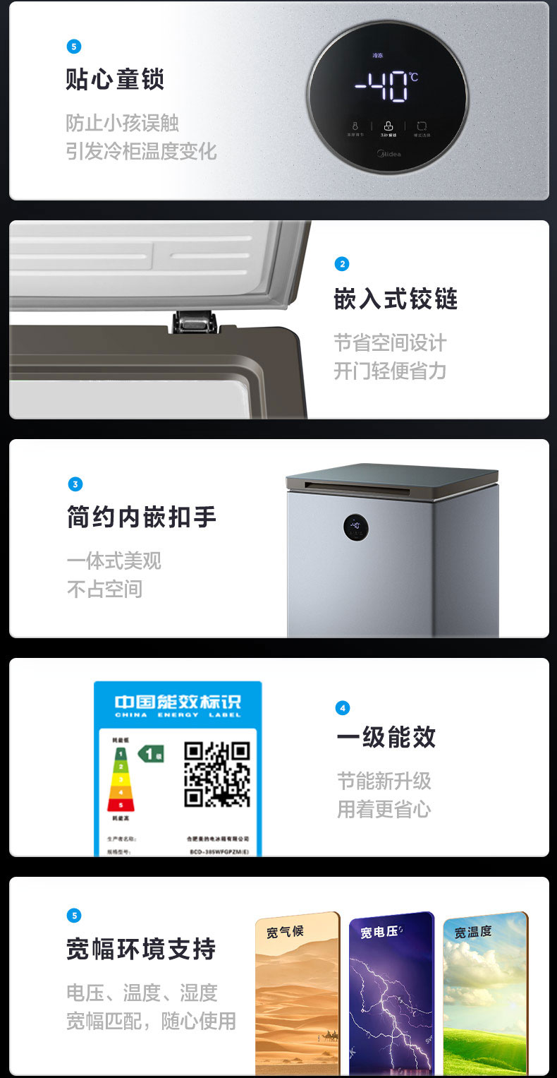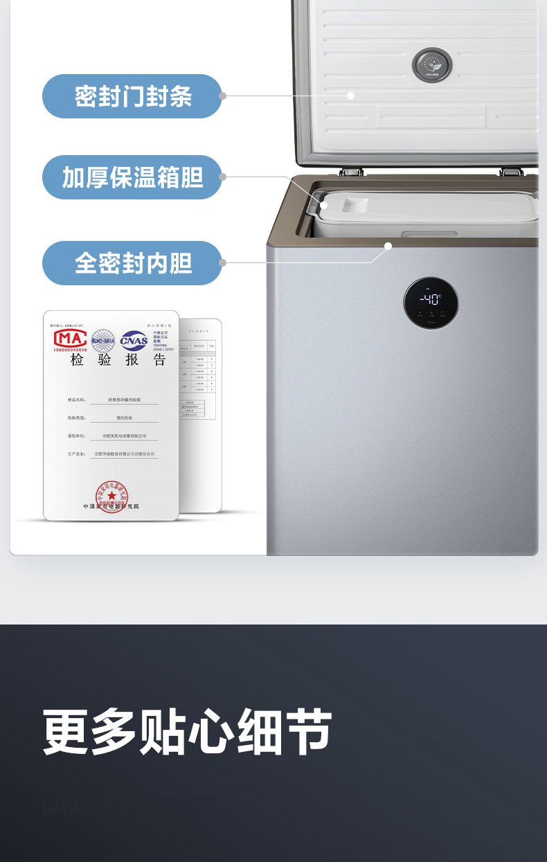 美的冰柜家用无需除霜一级能效冷藏冷冻柜商用保鲜母乳超低温零下40度100/143升