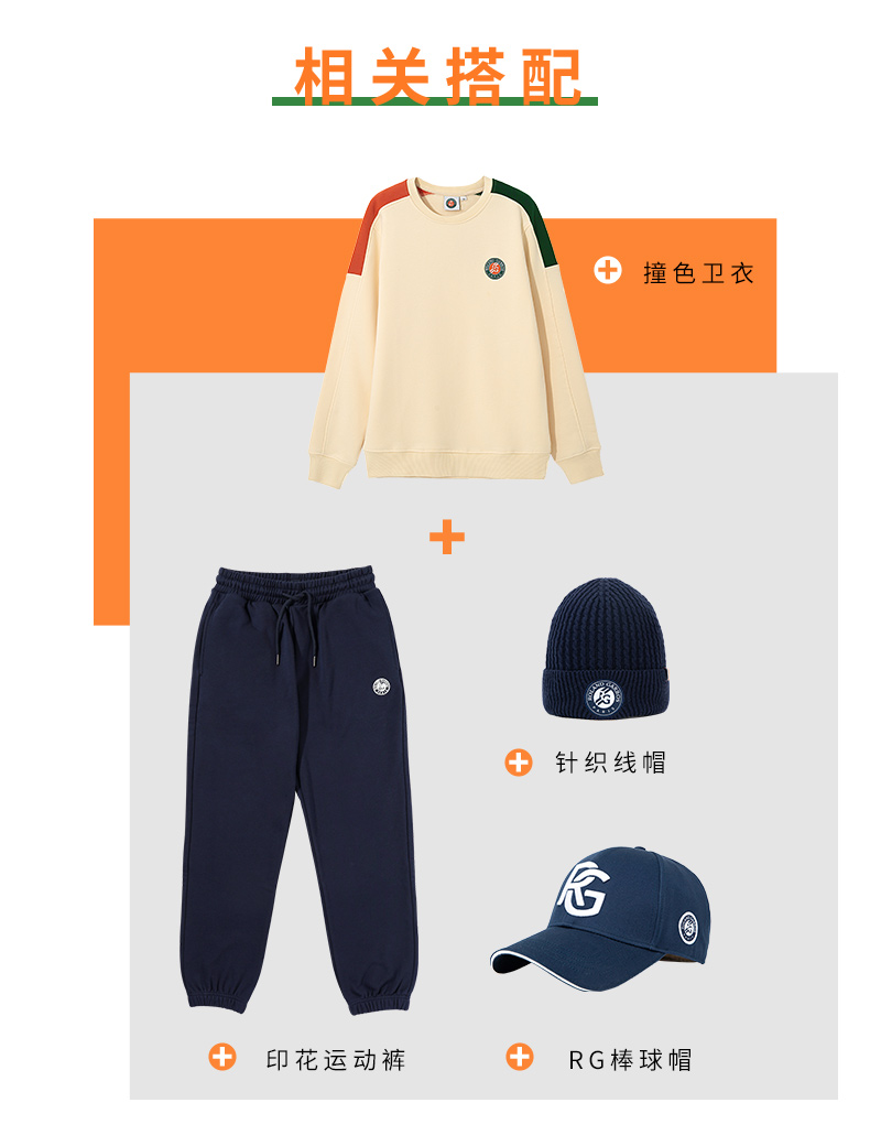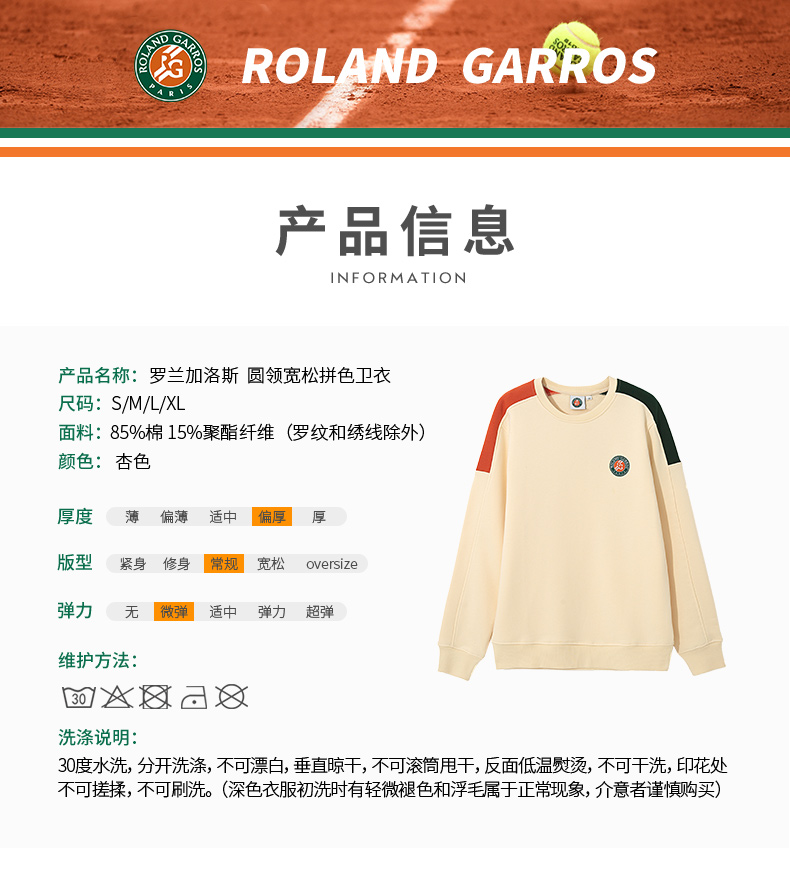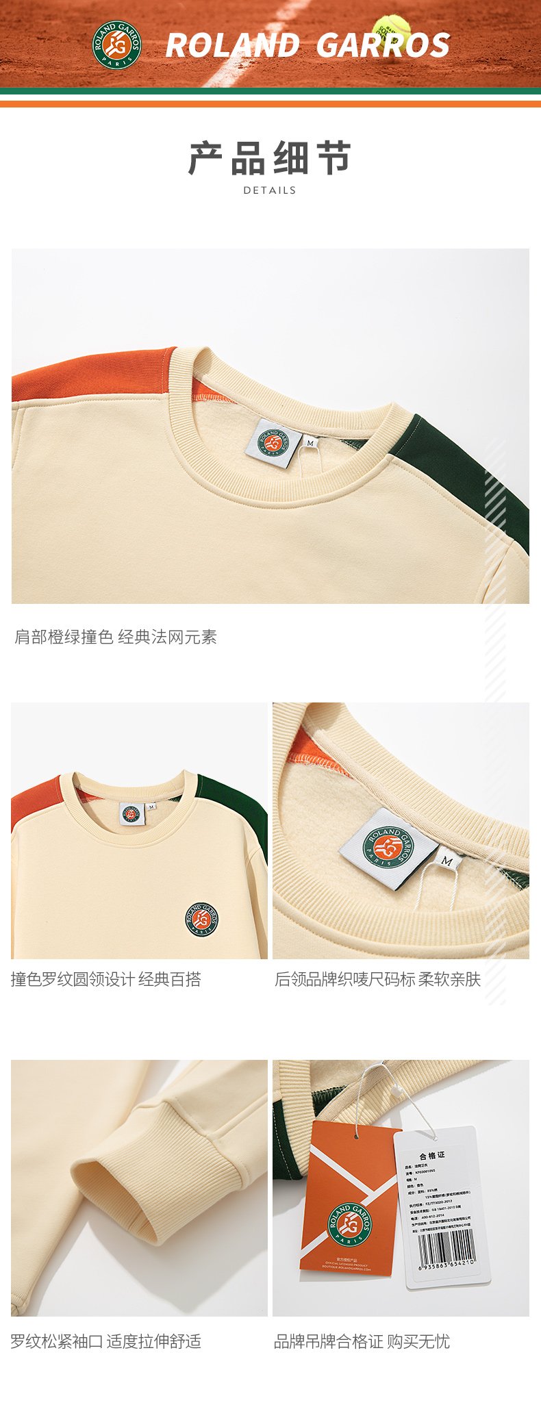 罗兰加洛斯法网官方正品 2021春季新款卫衣男女运动休闲撞色加绒
