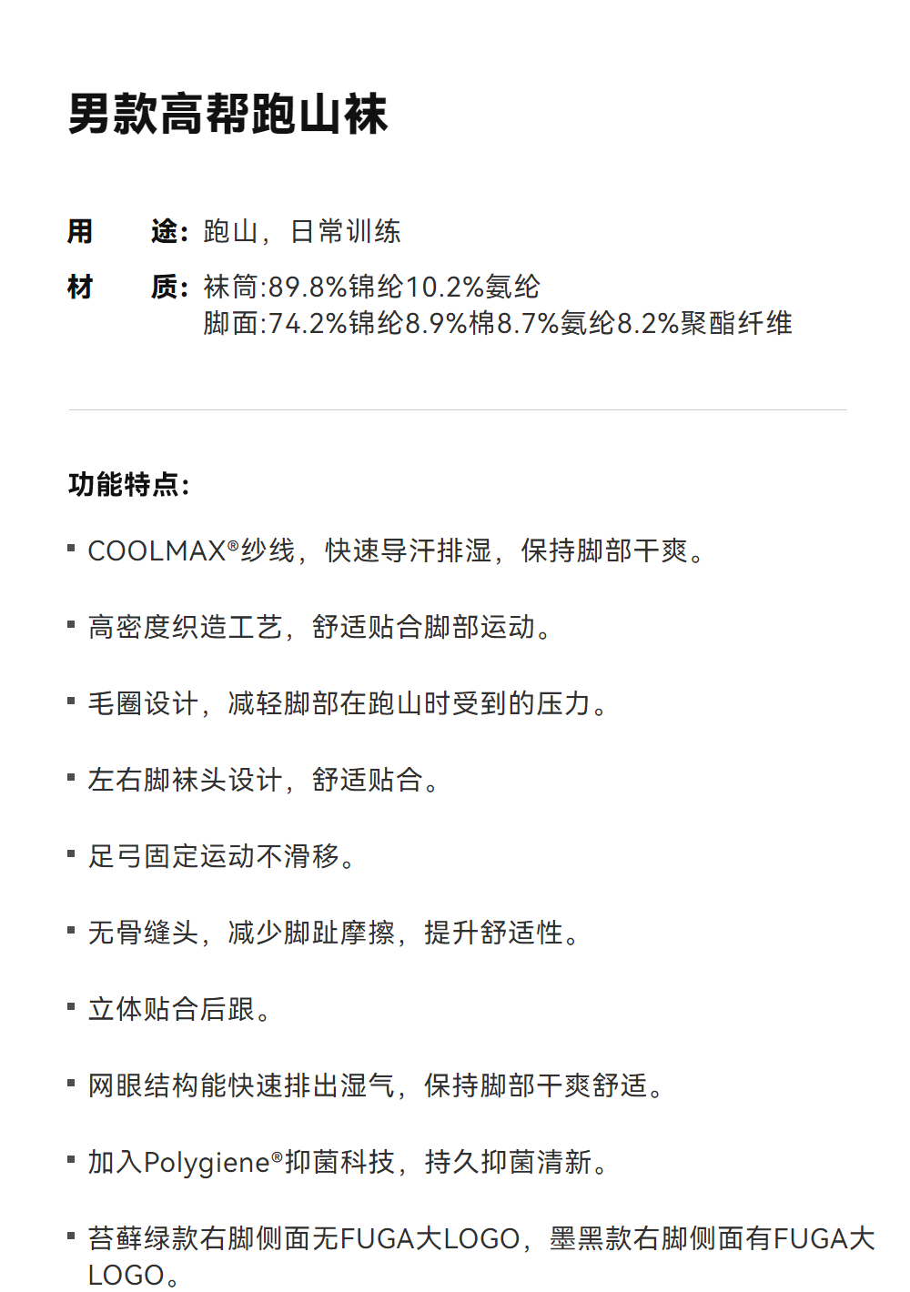 KAILAS凯乐石 男款高帮跑山袜 KH2502113
