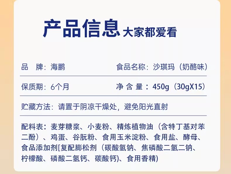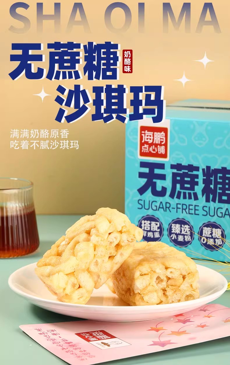 【无蔗糖零食】海鹏无蔗糖乳酪味独立包装沙琪玛30g*15枚