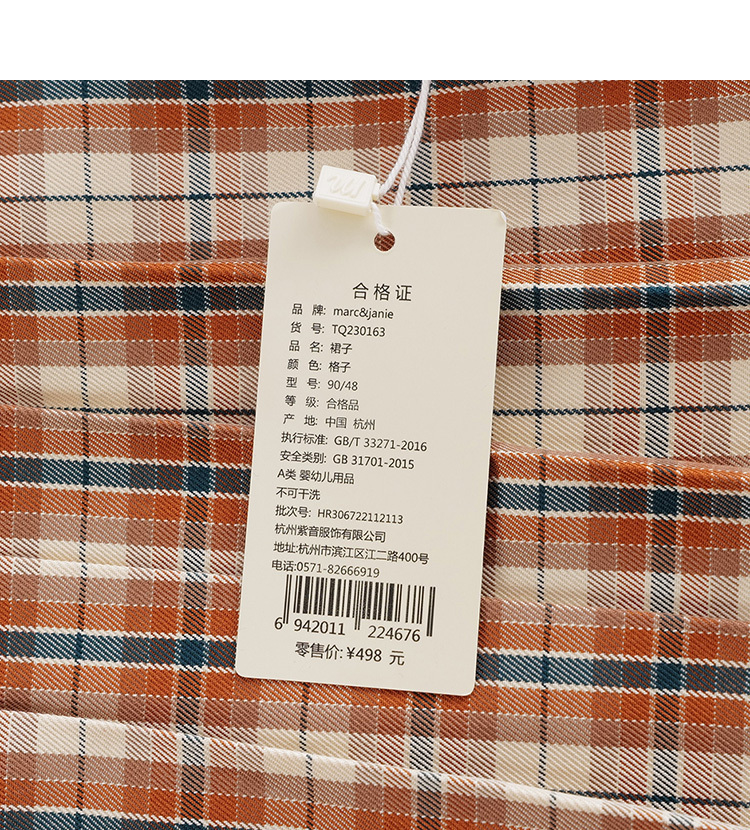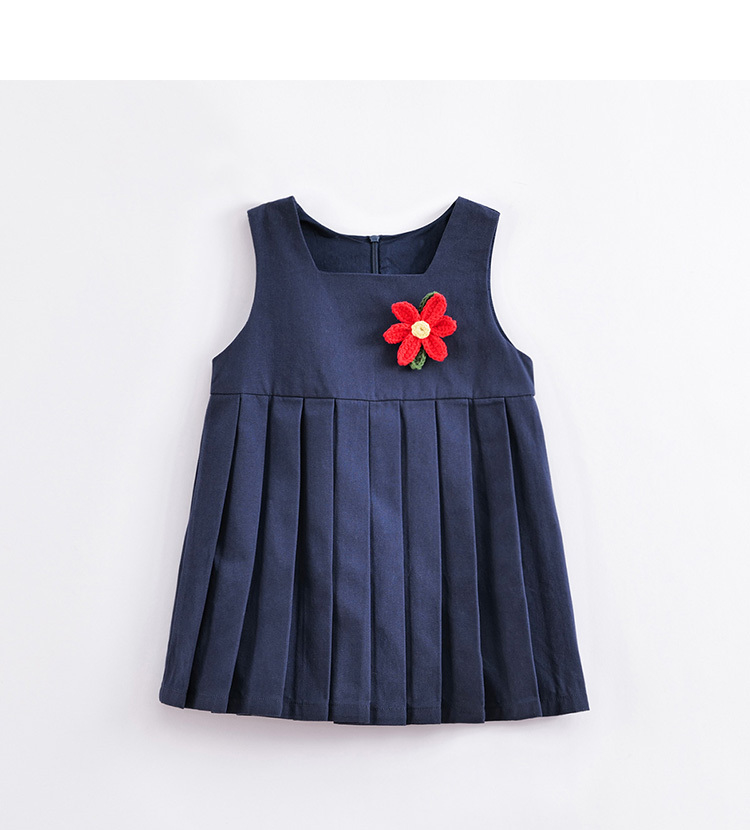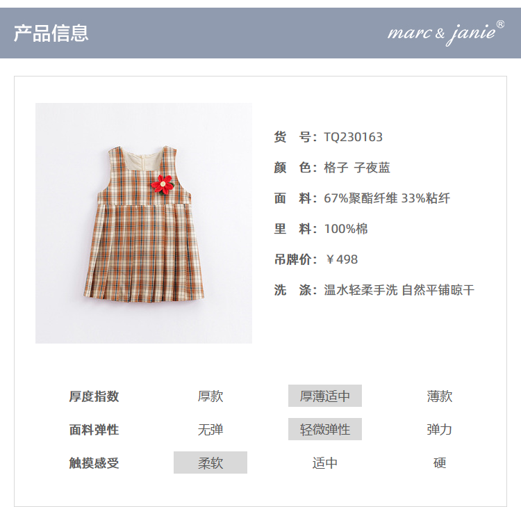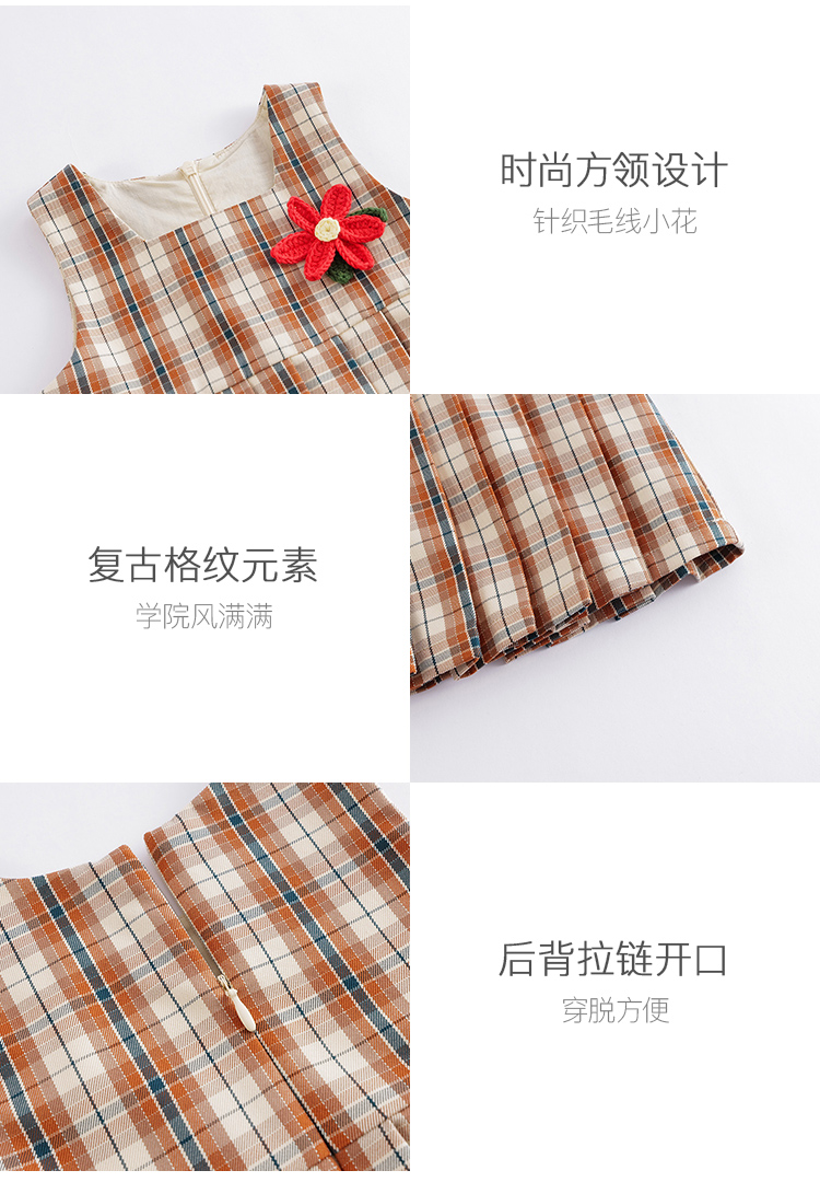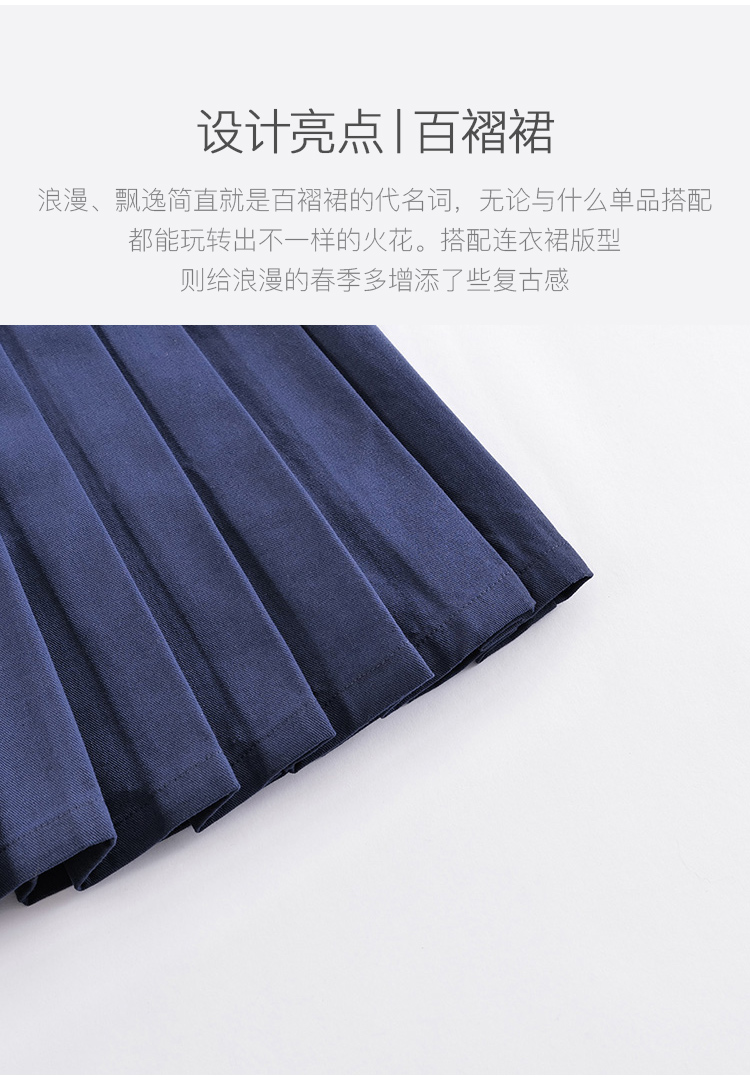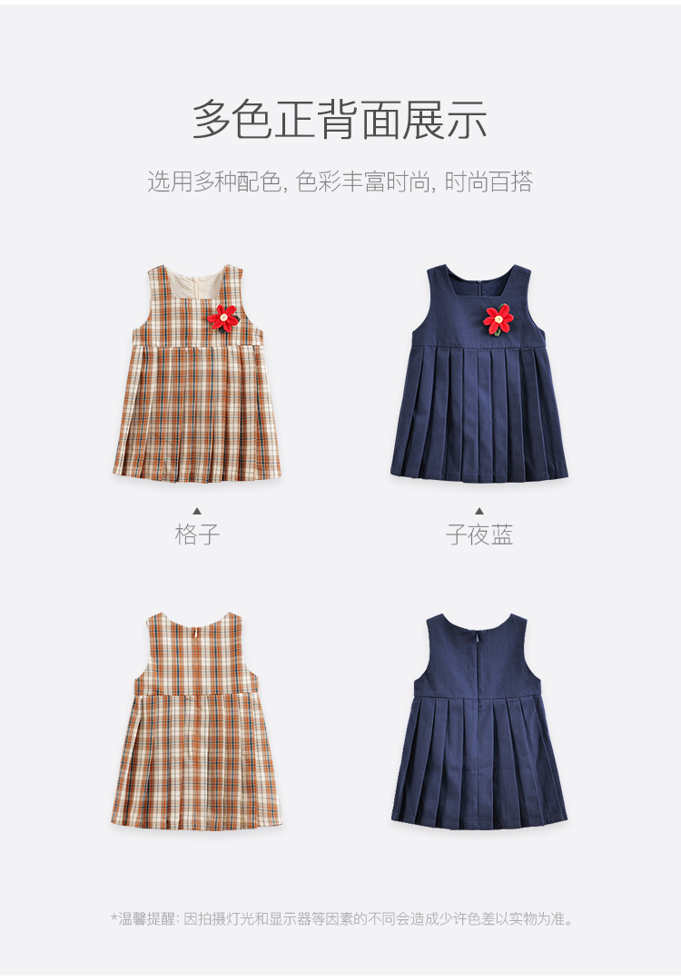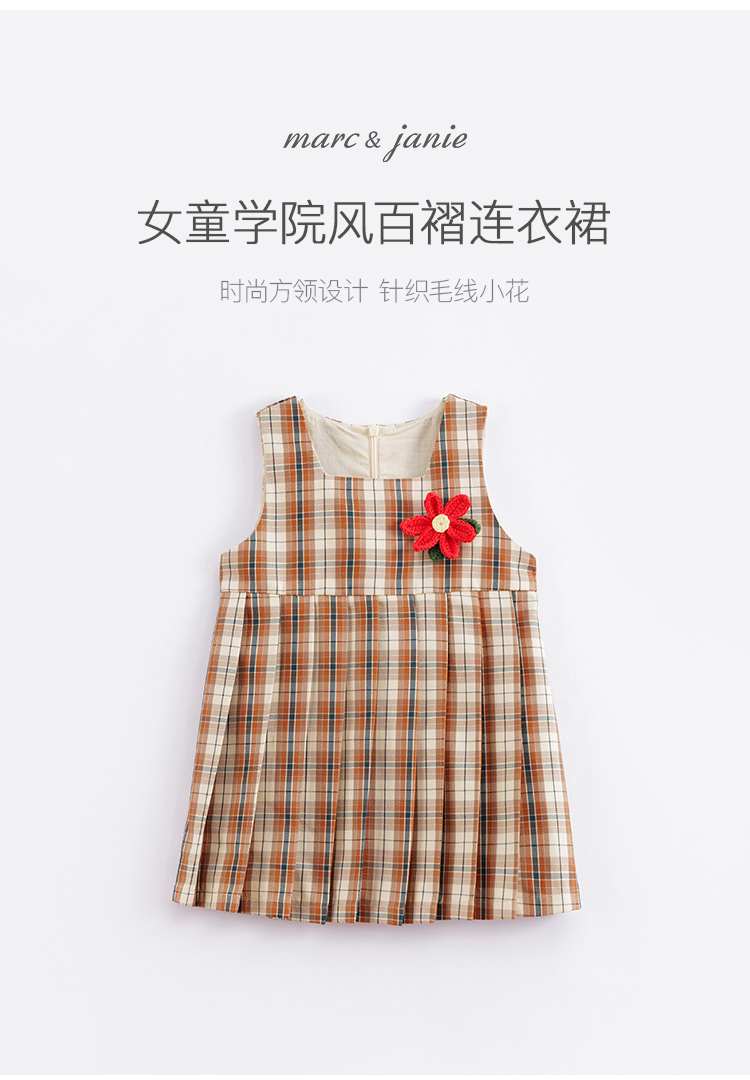 【打折】马克珍妮春装新款 女童学院风方领百褶连衣裙230163