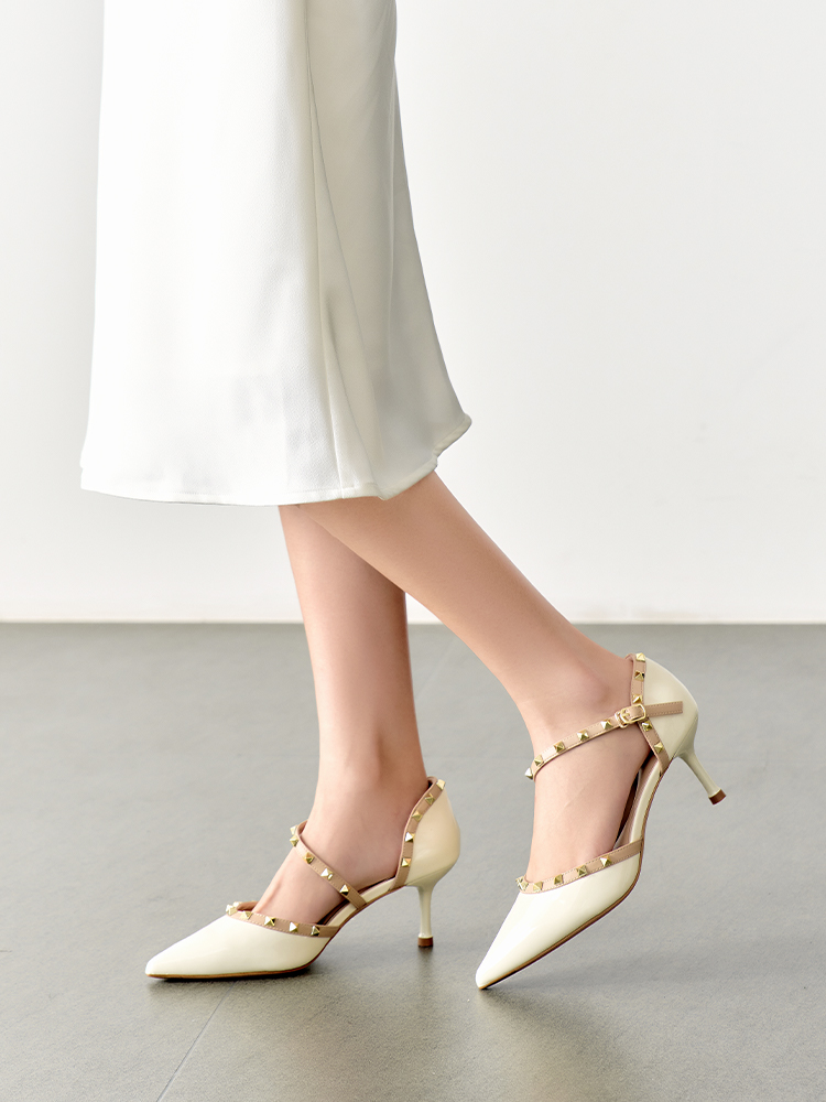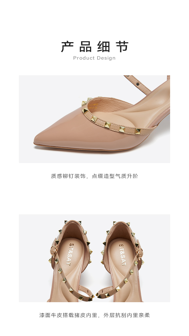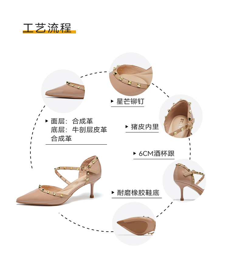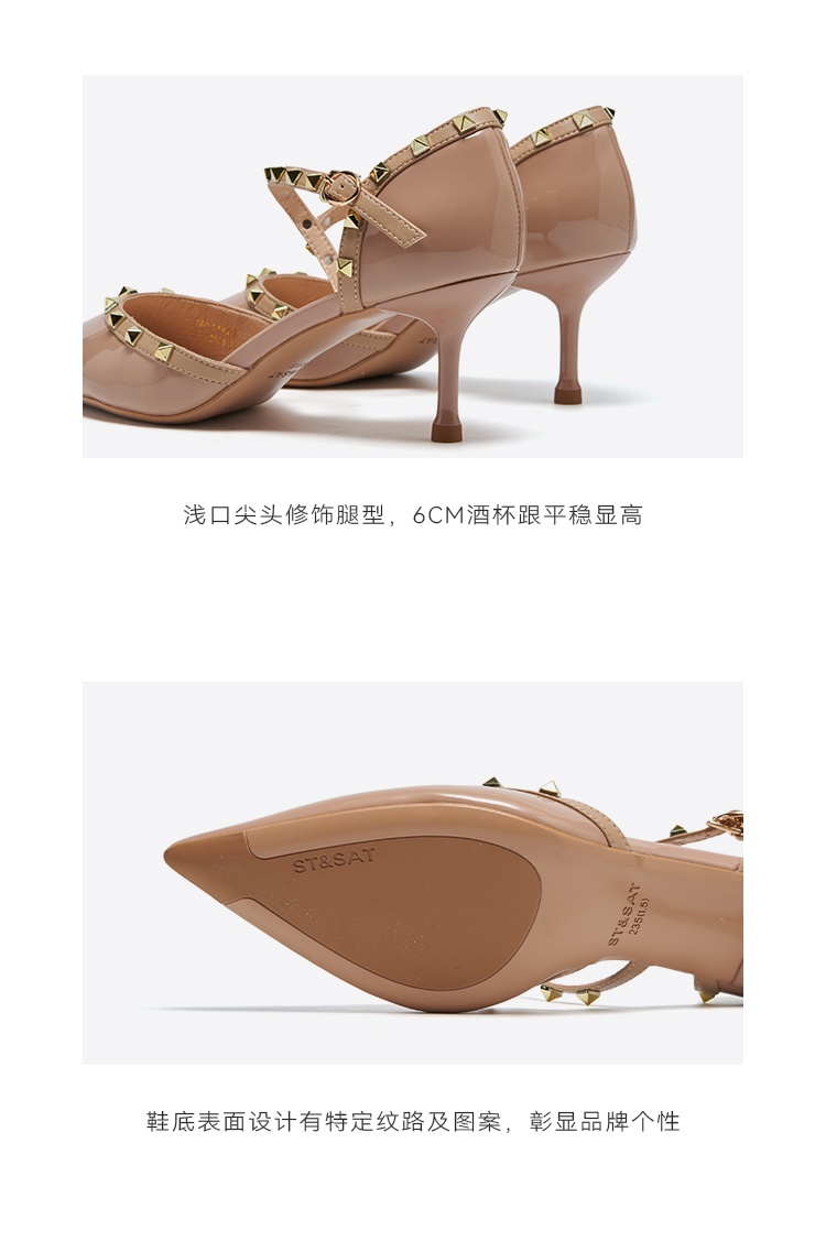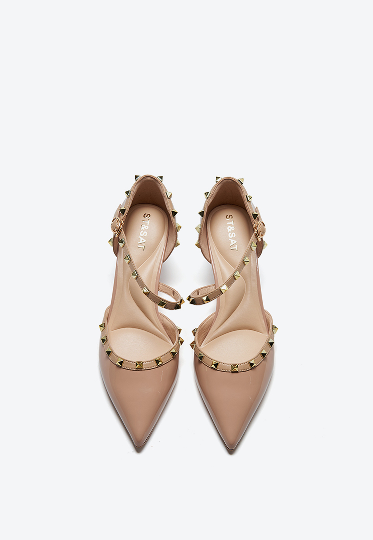 【铆钉系列】星期六高级感裸色尖头高跟鞋SSD1114465