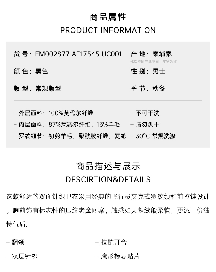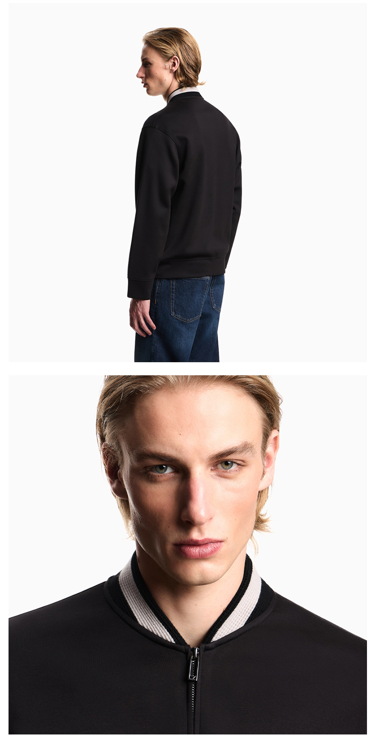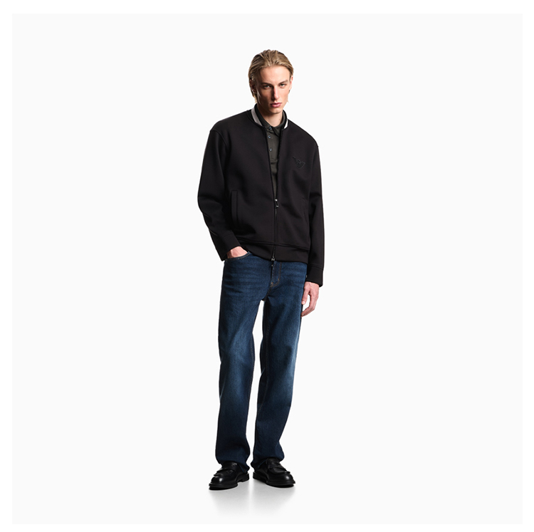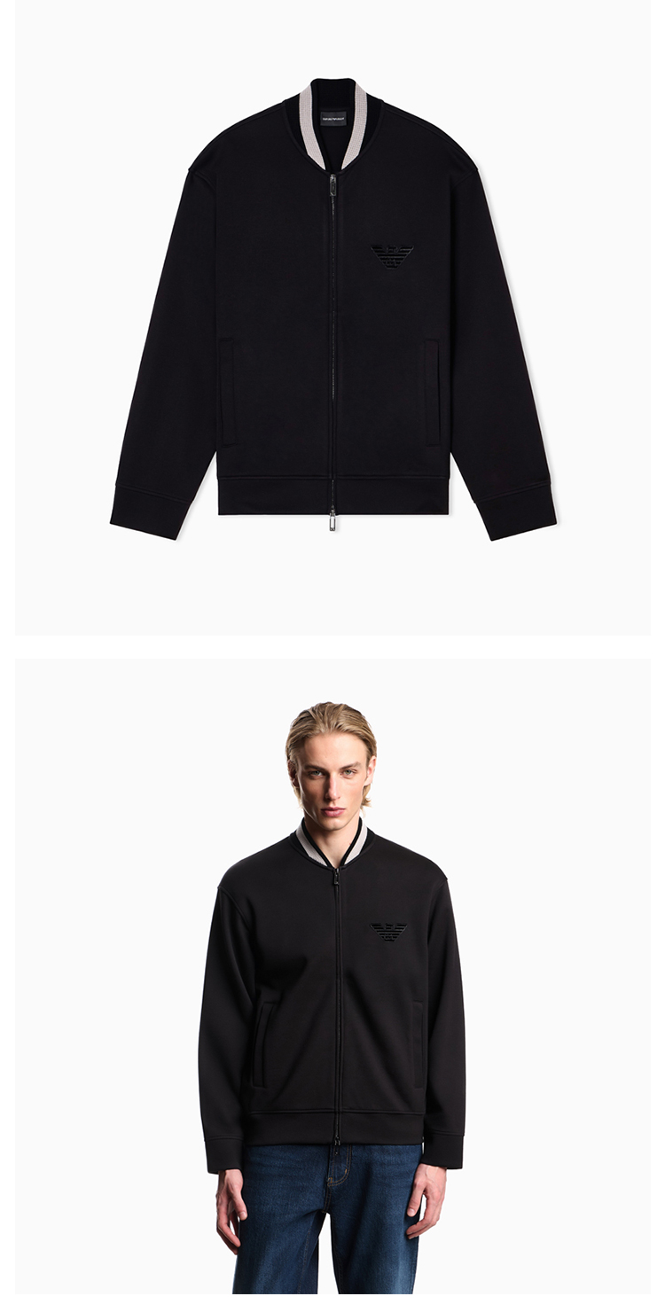 EMPORIO ARMANI 阿玛尼 男士鹰形徽标贴片双面针织拉链卫衣 黑色 EM002877 AF17545 UC001