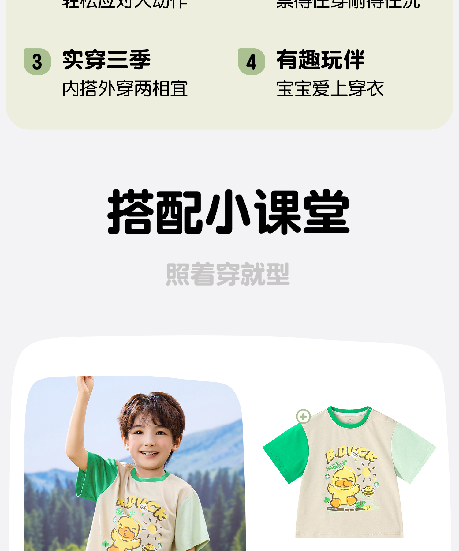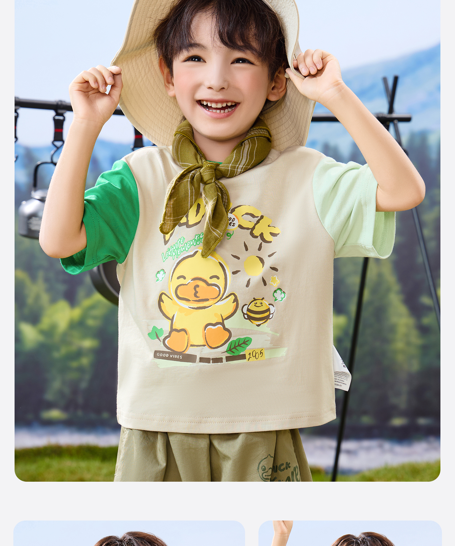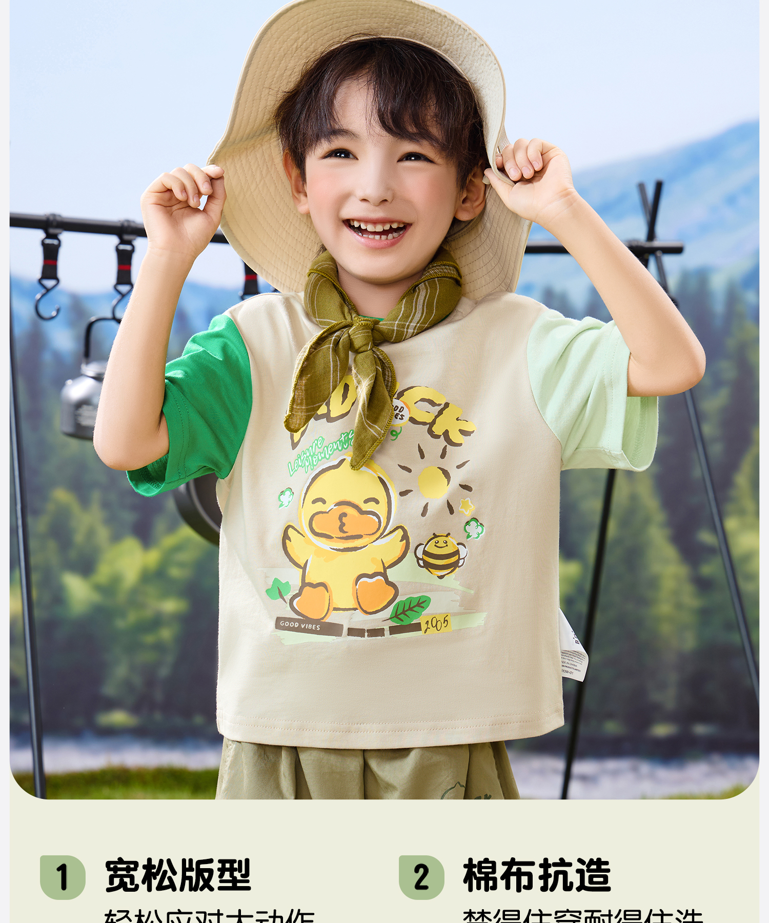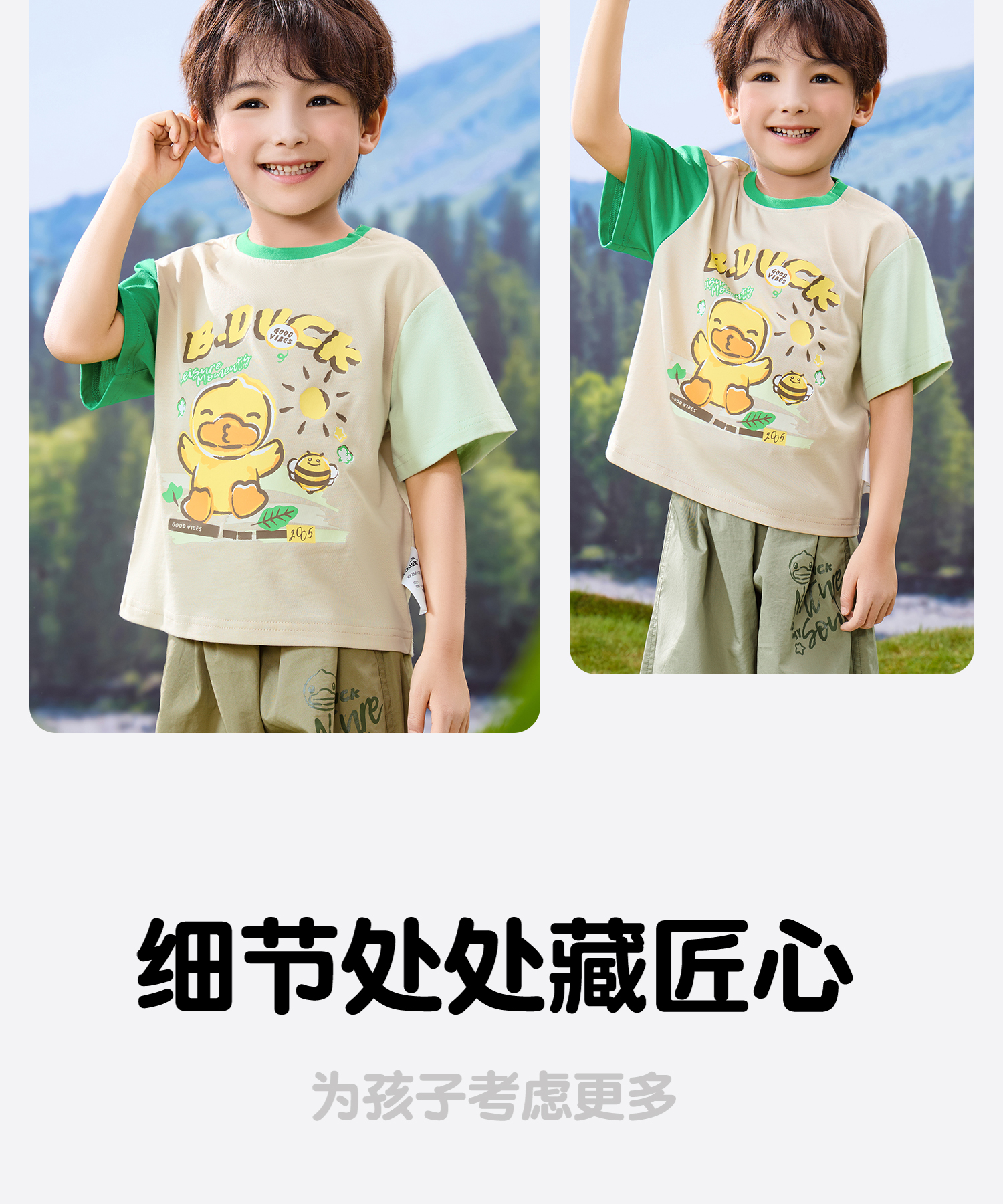 [驱蚊抗菌]小黄鸭童装男童短袖T恤宝宝夏装纯棉上衣儿童半袖衣服90-140 BF2701037