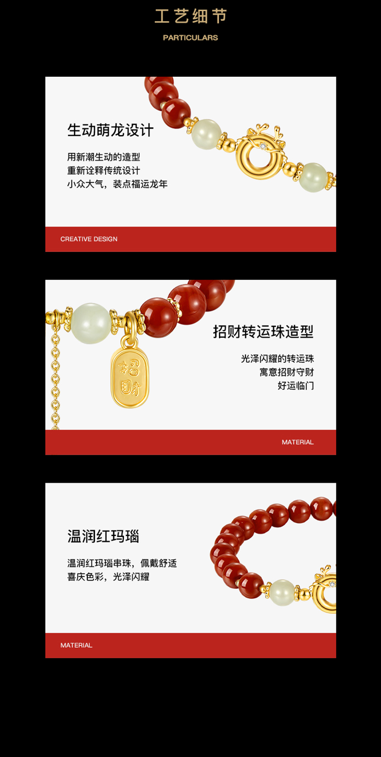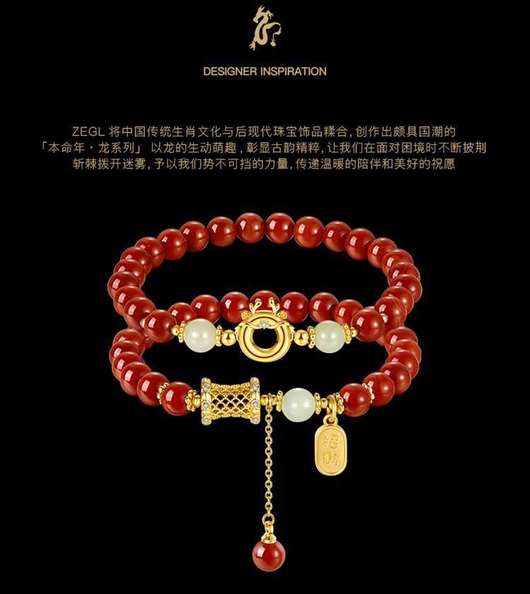 ZEGL设计师本命年龙系列吉祥萌龙红玛瑙串珠手链女新年和田玉手串
