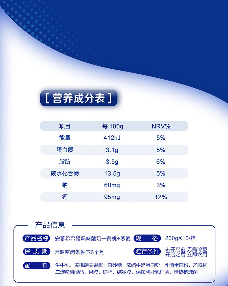 伊利安慕希黄桃燕麦酸奶 200g*10瓶