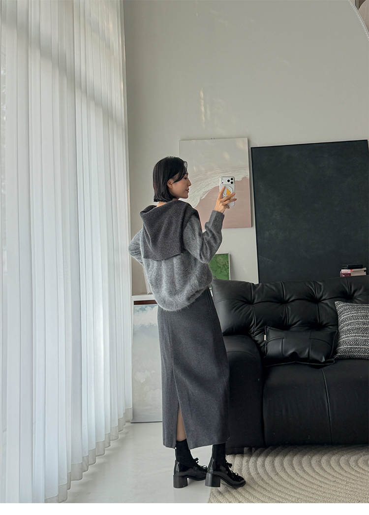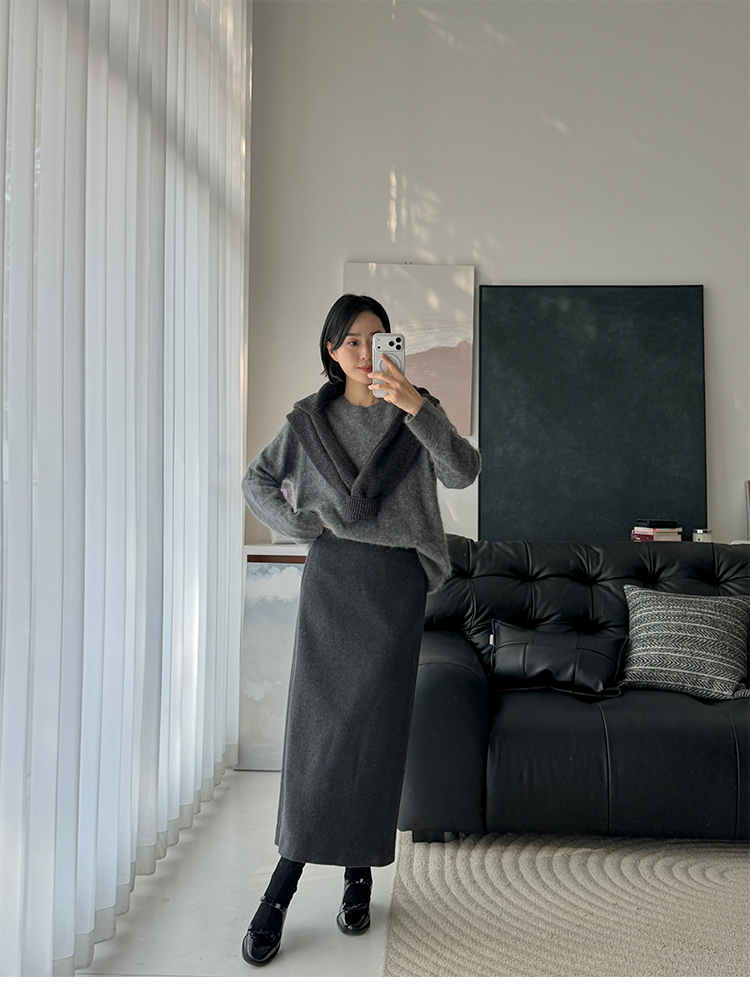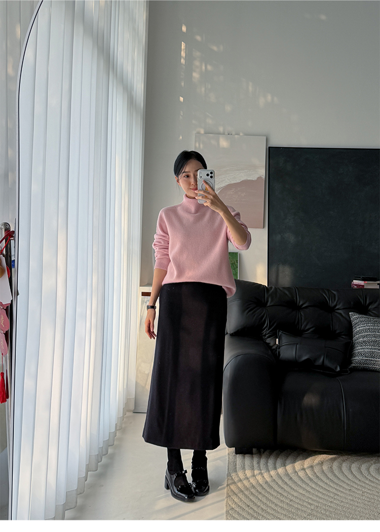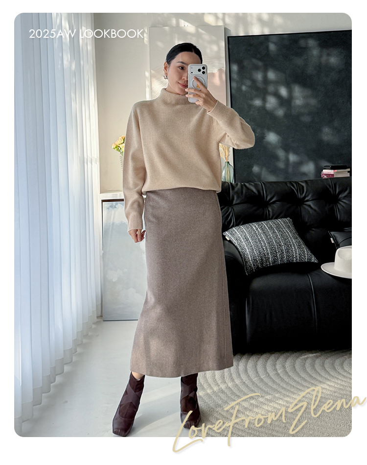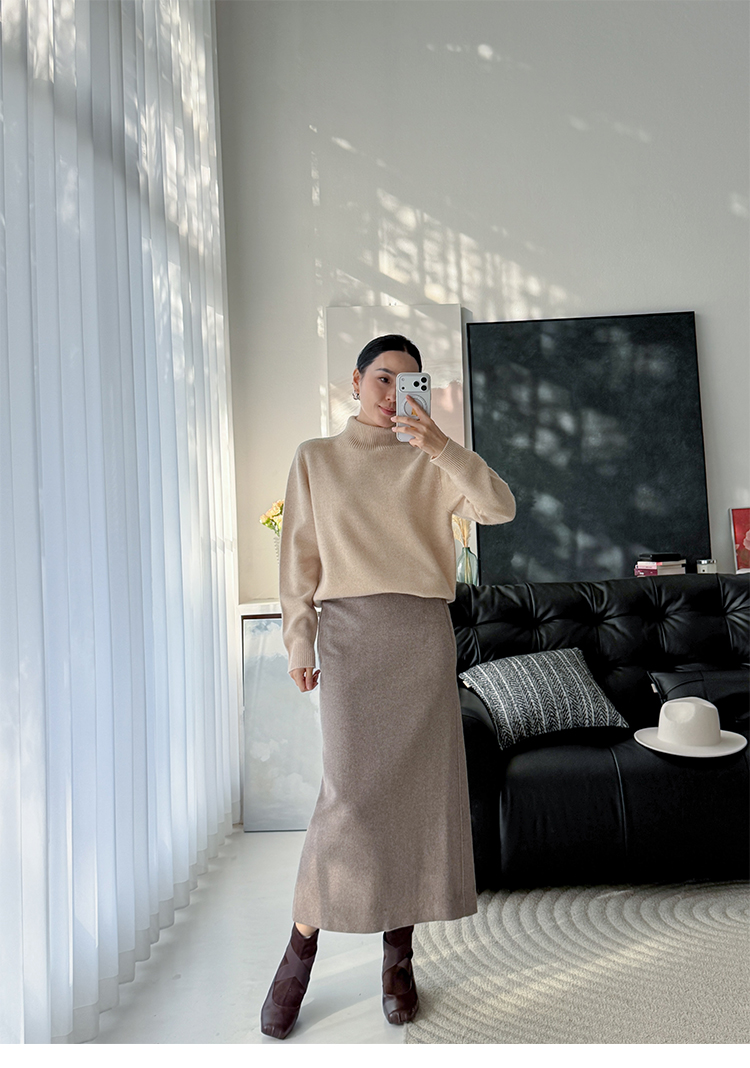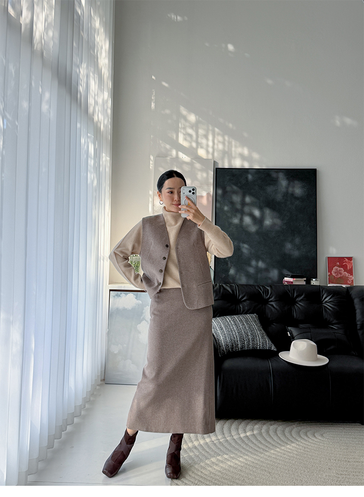 羊绒&羊毛混纺 简约高腰毛呢半身裙