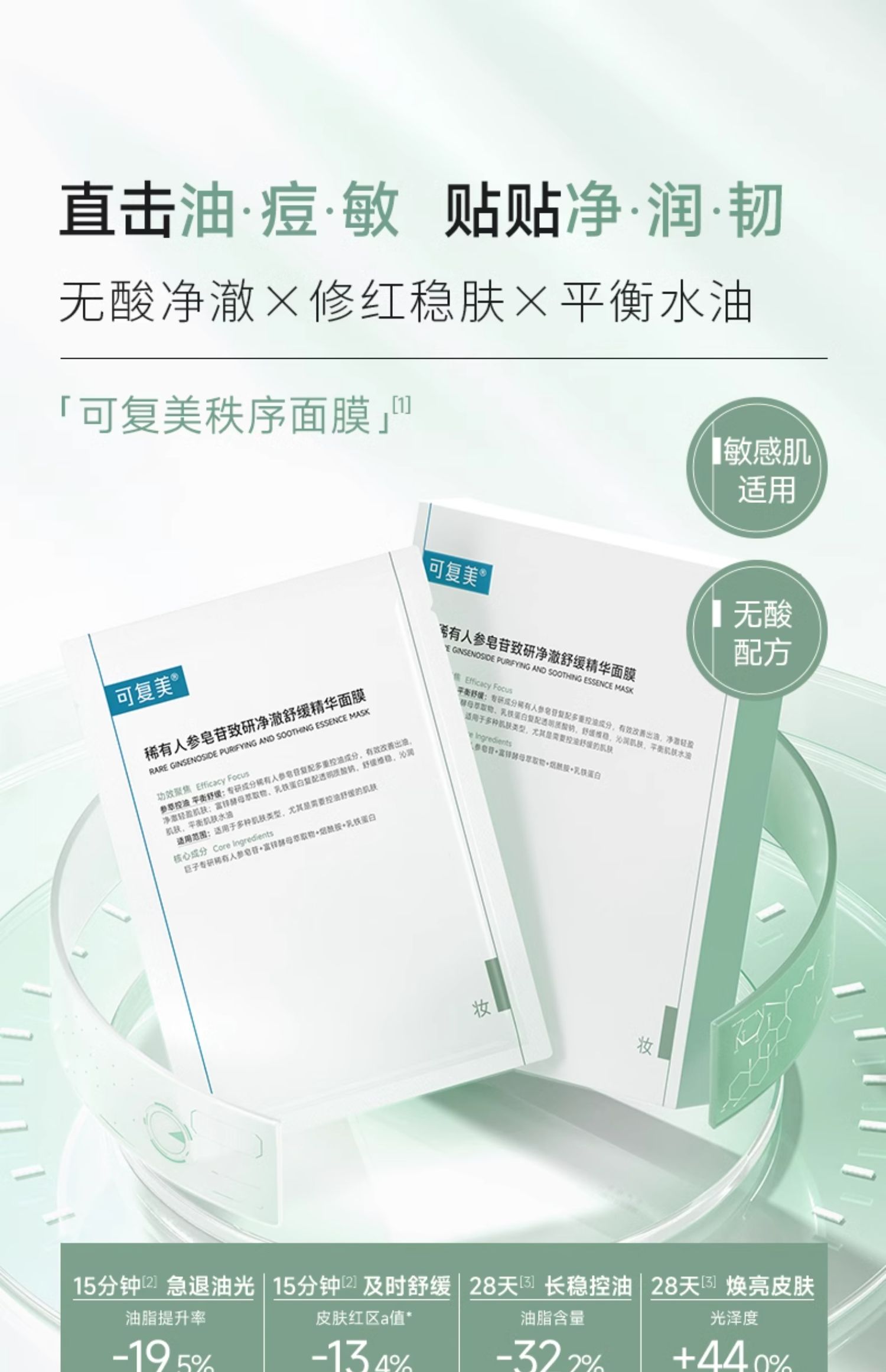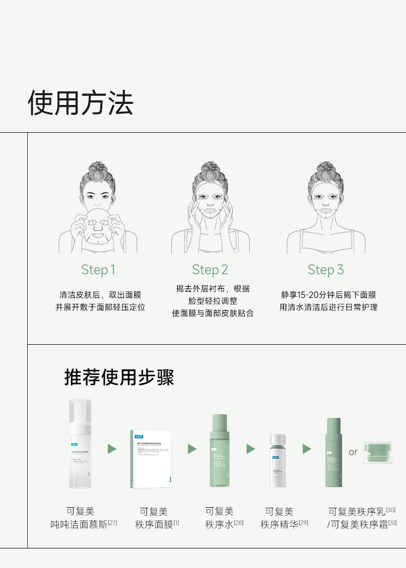 【可复美秩序面膜】可复美稀有人参皂苷致研净澈舒缓精华面膜25g×5片/盒