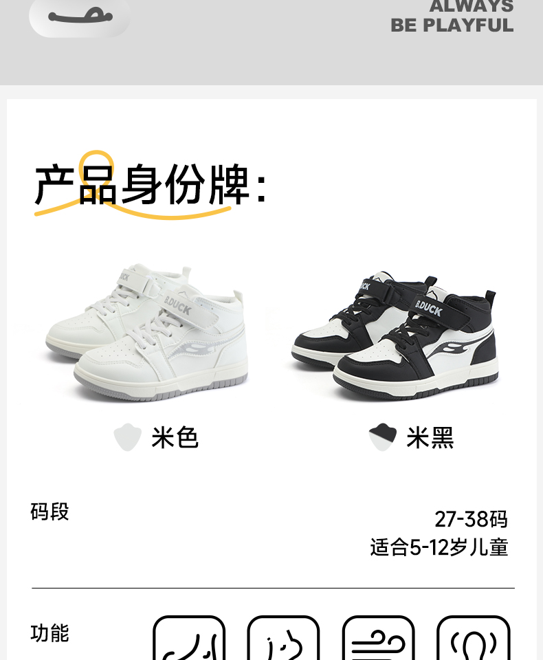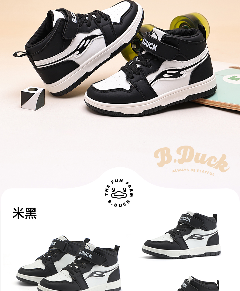 B.Duck小黄鸭童鞋春秋魔术贴高帮板鞋 B3686919