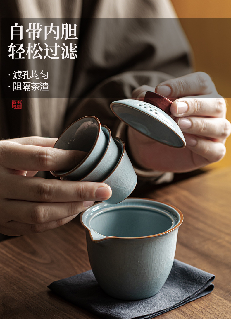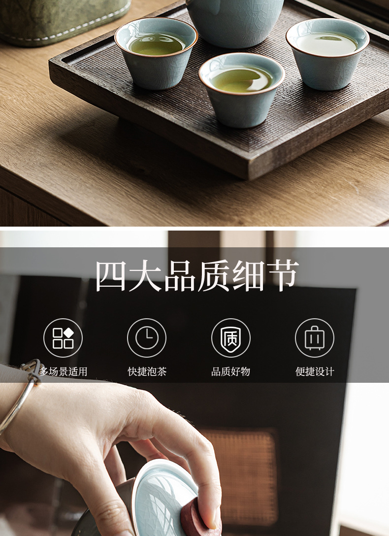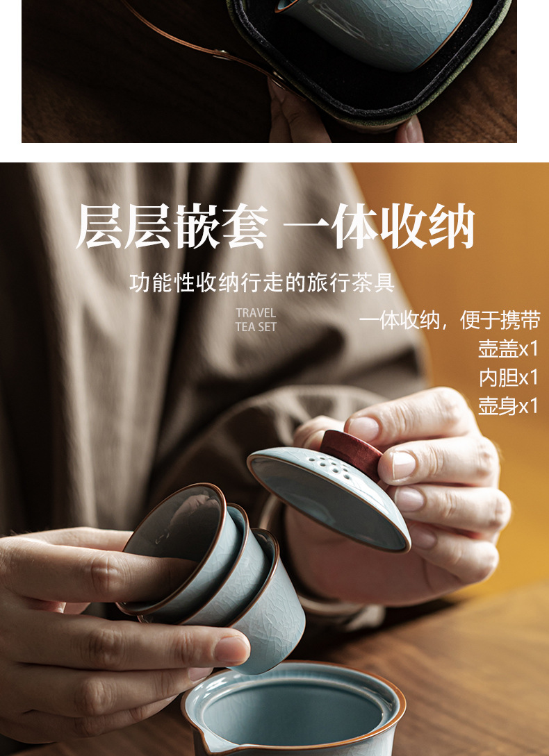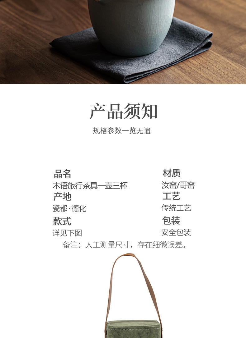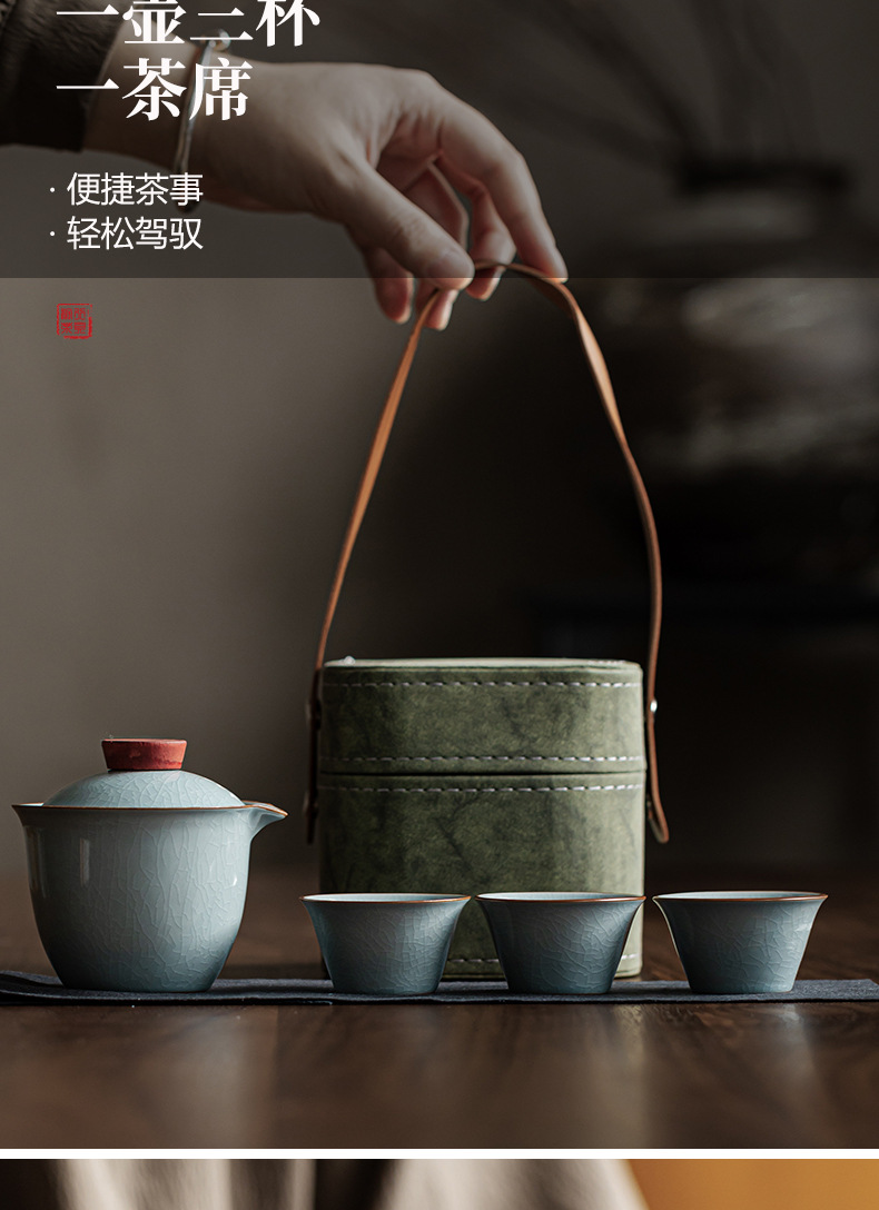 「一壶三杯!精美礼盒装」木言福蕴旅行茶具 陶瓷中式便携式户外商务快客套装餐饮用具