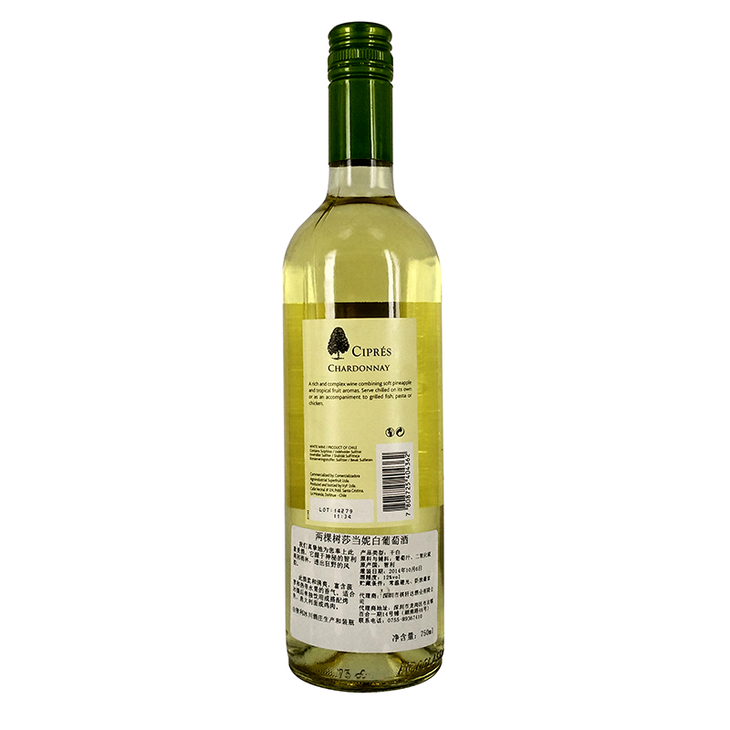 智利两棵树莎当妮白葡萄酒12度750ml