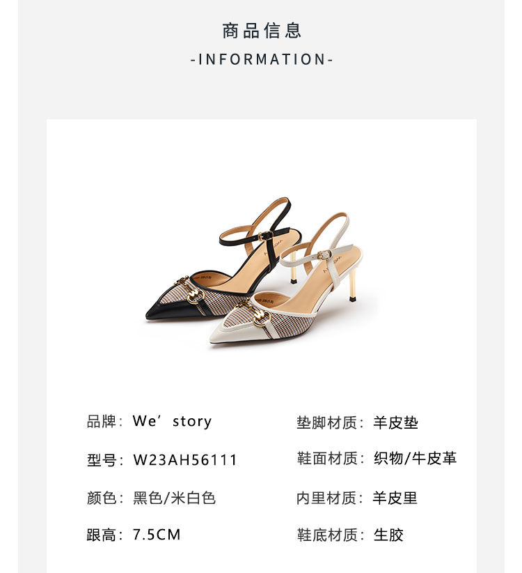 westory女鞋春夏新款凉鞋高跟后空单鞋W23AH55991