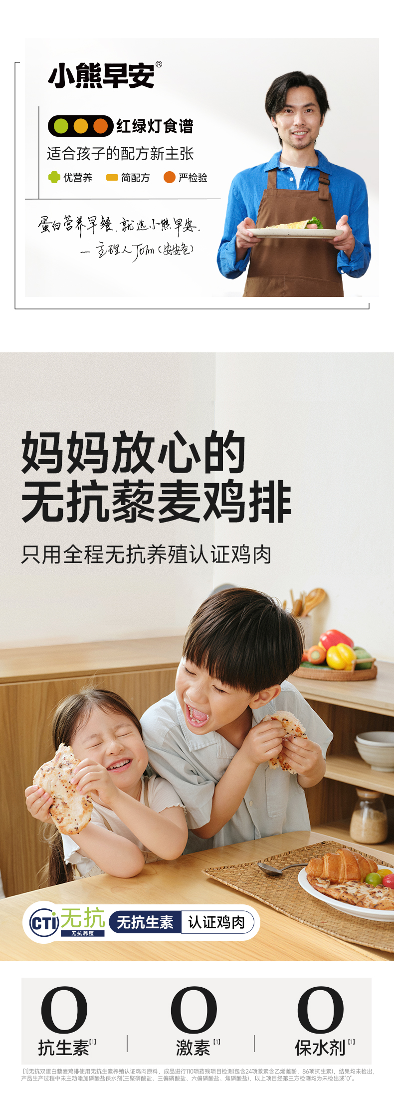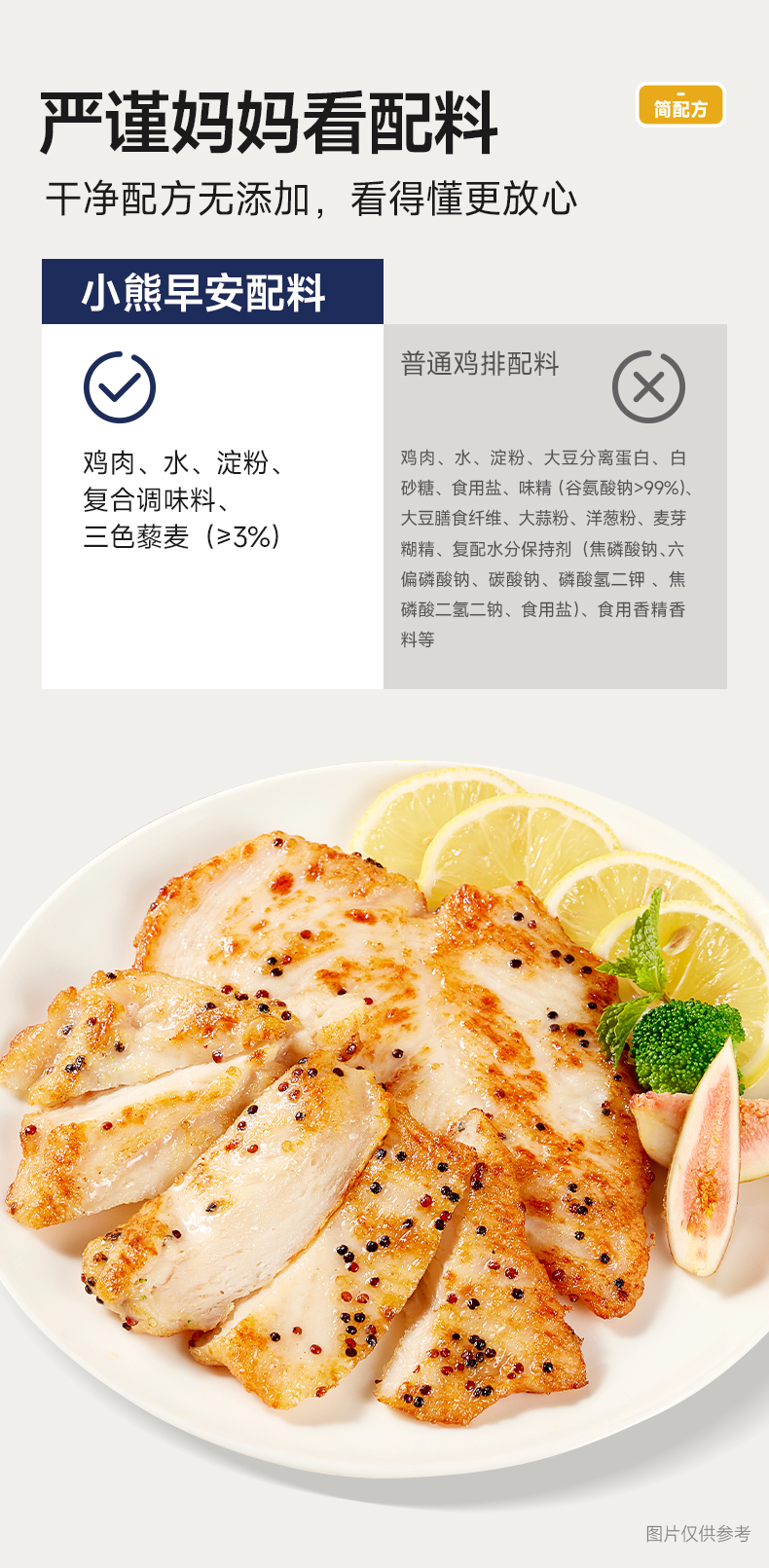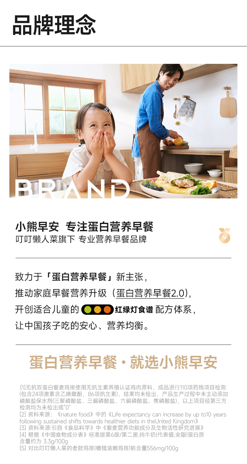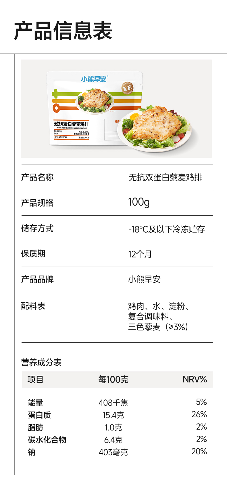 【叮叮自营-新品上新】叮叮懒人菜-小熊早安无抗双蛋白藜麦鸡排 只用全程无抗养殖认证鸡肉