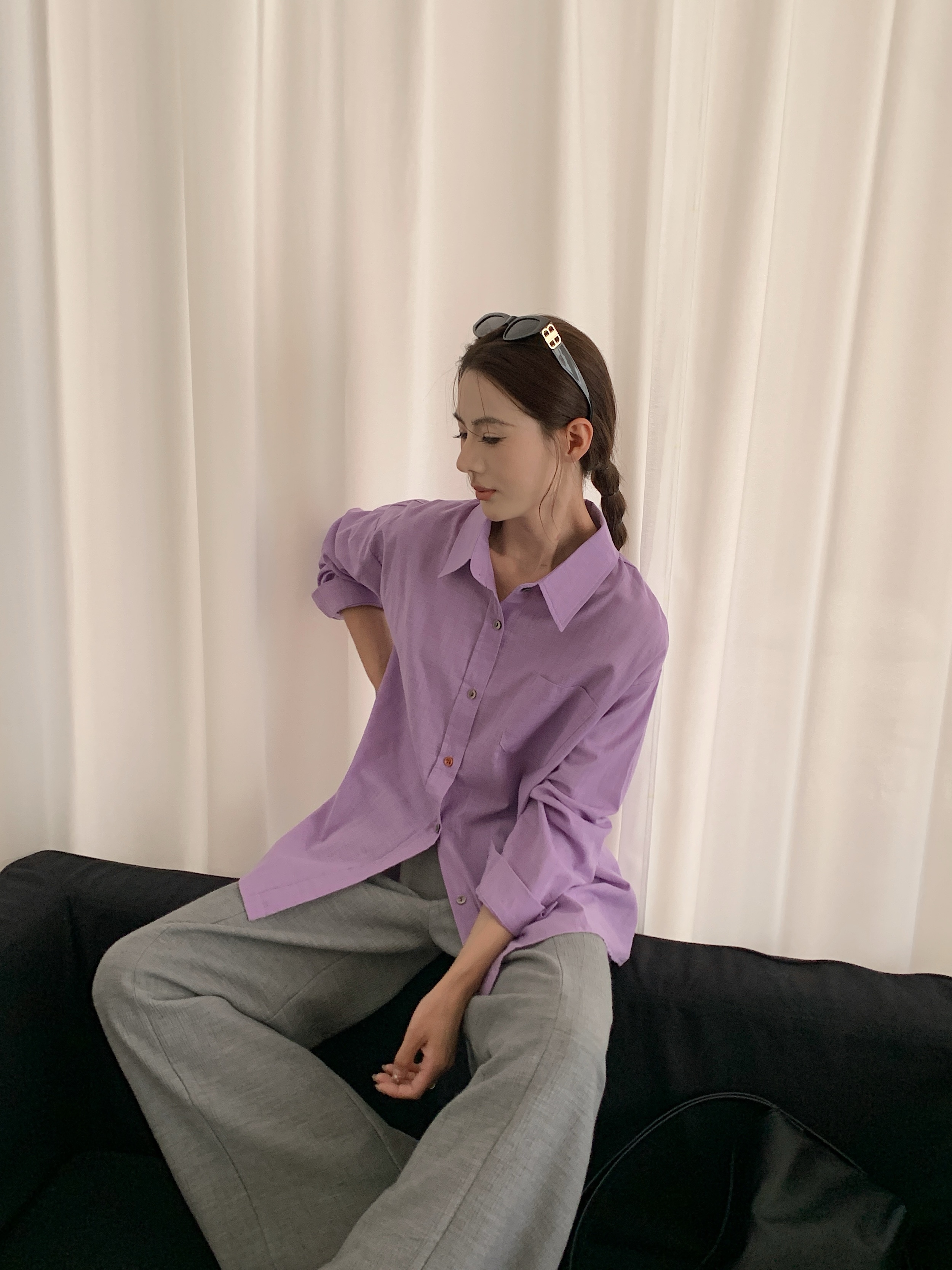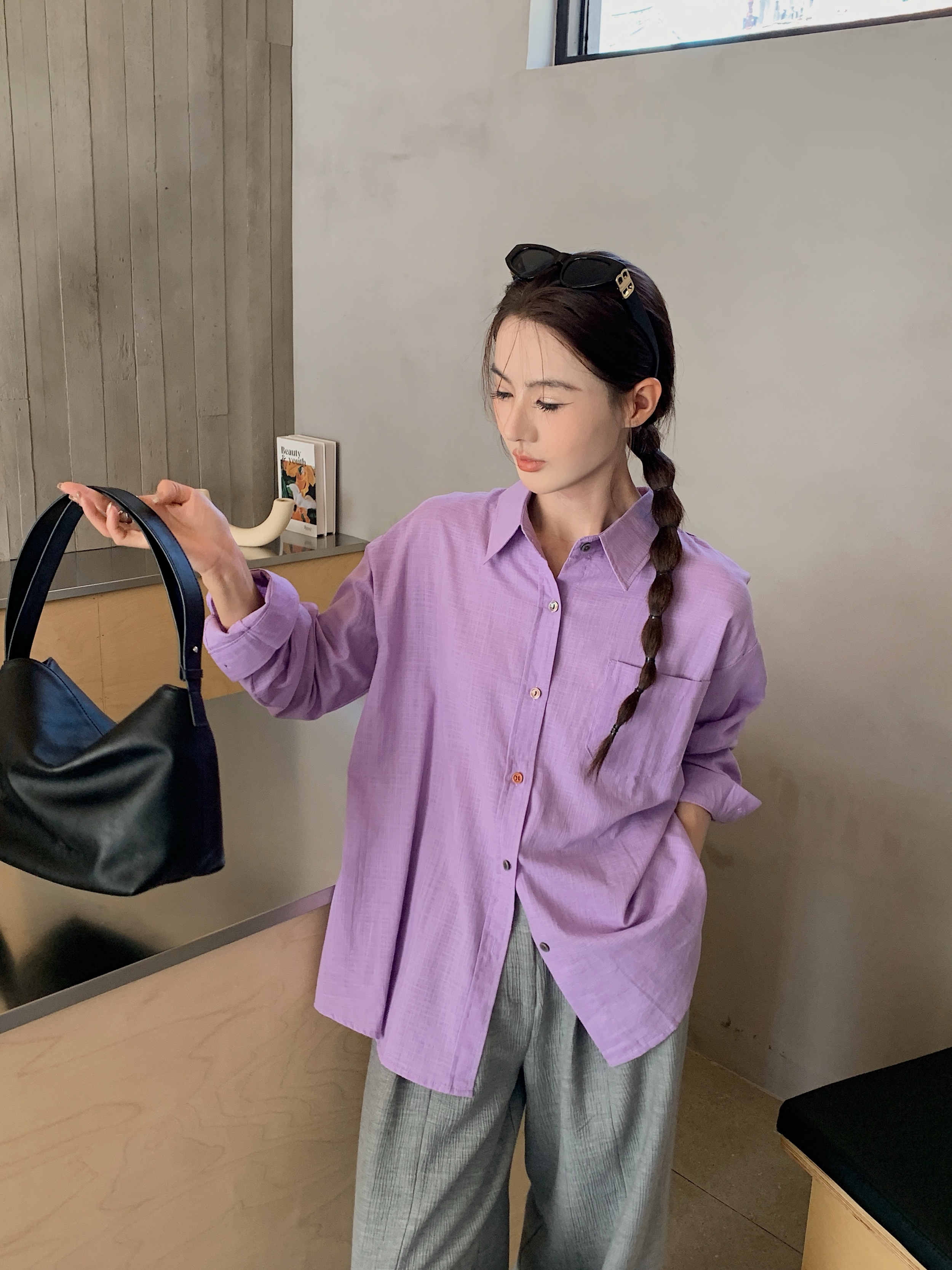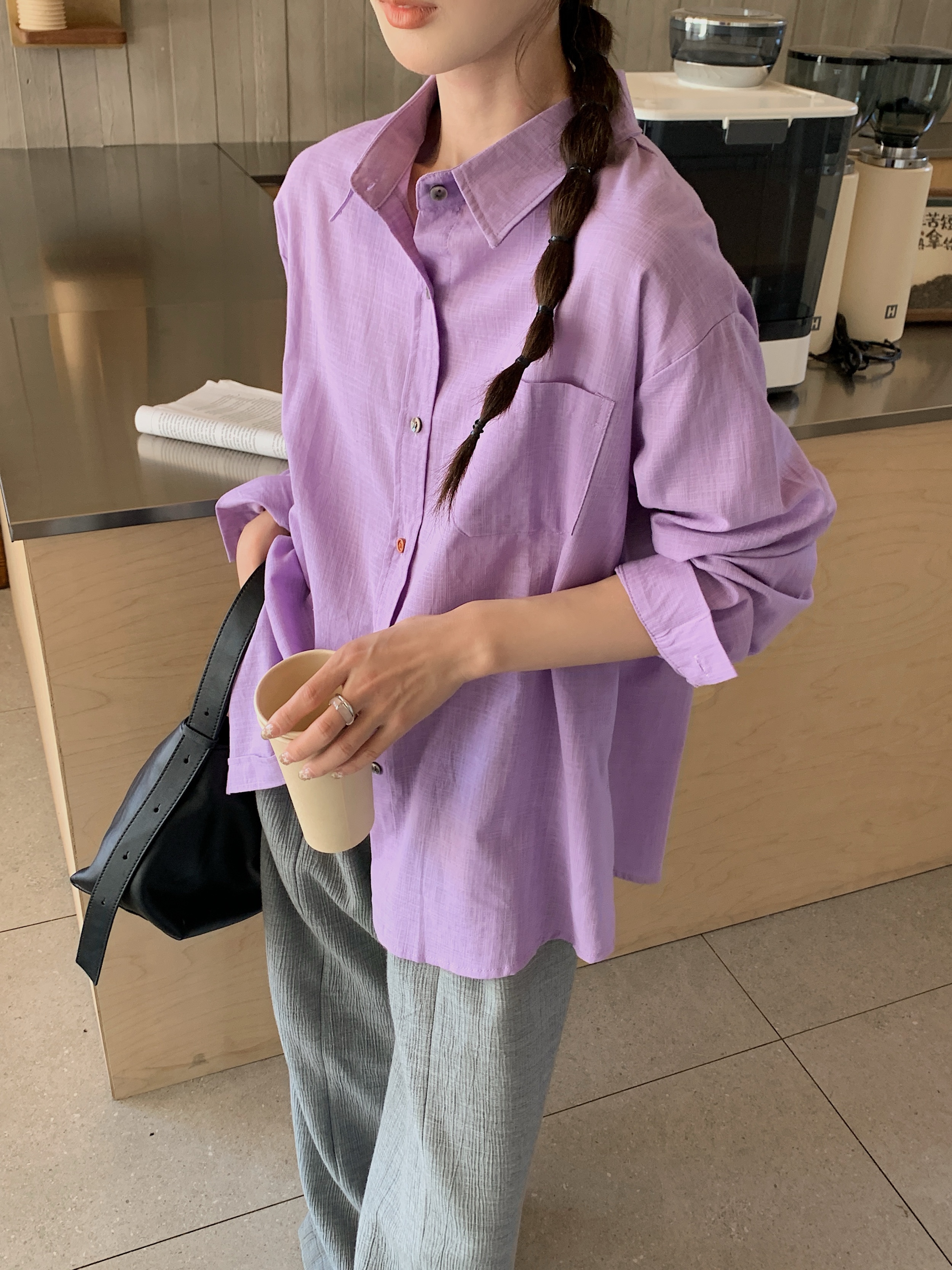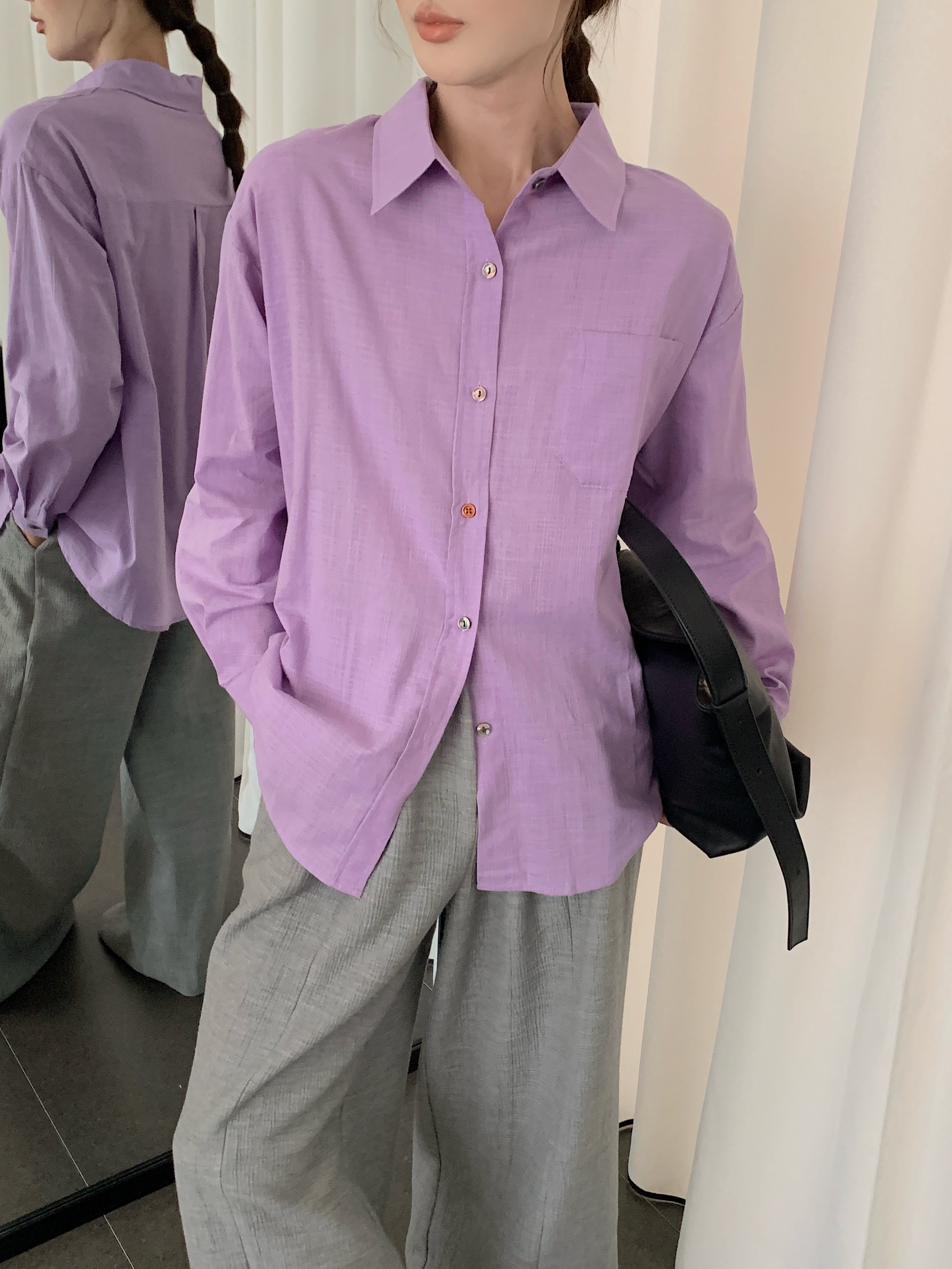 *【卷卷紫】宽松休闲棉麻长袖衬衫 天然亚麻纯棉混纺舒适亲肤透气 清透肤感宽松休闲百搭衬衫 可单穿可内搭可外穿