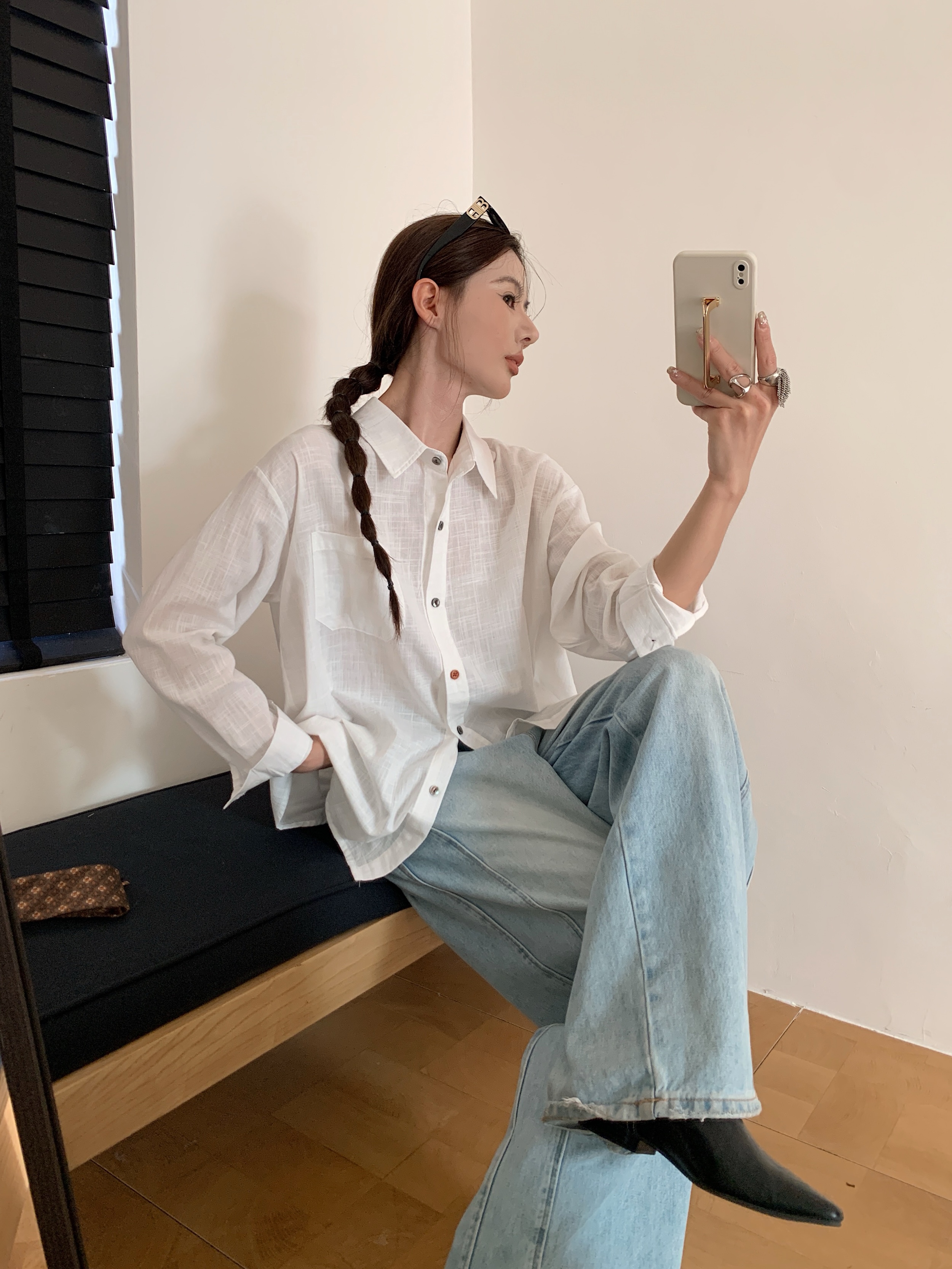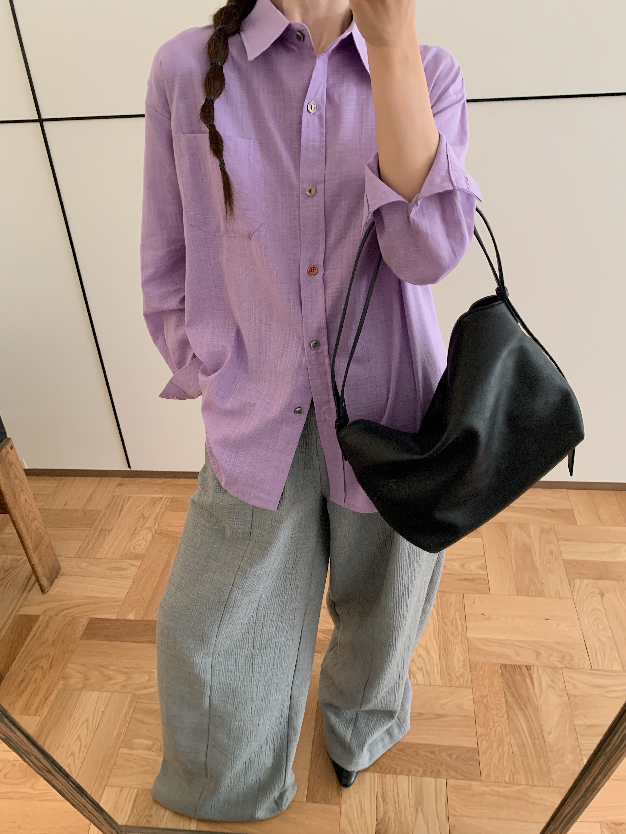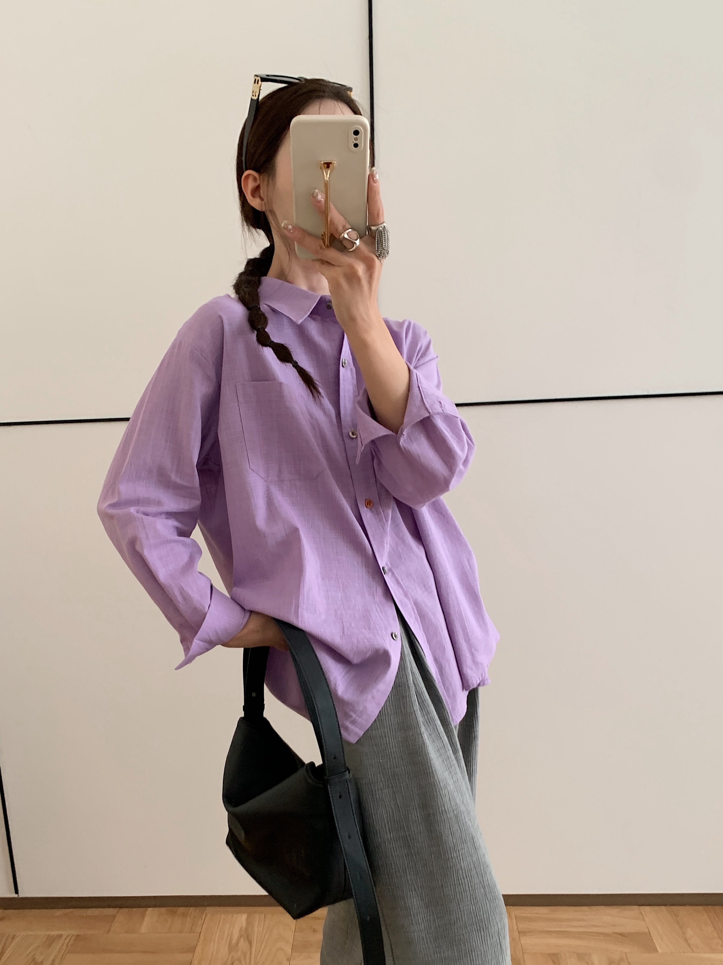 *【卷卷紫】宽松休闲棉麻长袖衬衫 天然亚麻纯棉混纺舒适亲肤透气 清透肤感宽松休闲百搭衬衫 可单穿可内搭可外穿