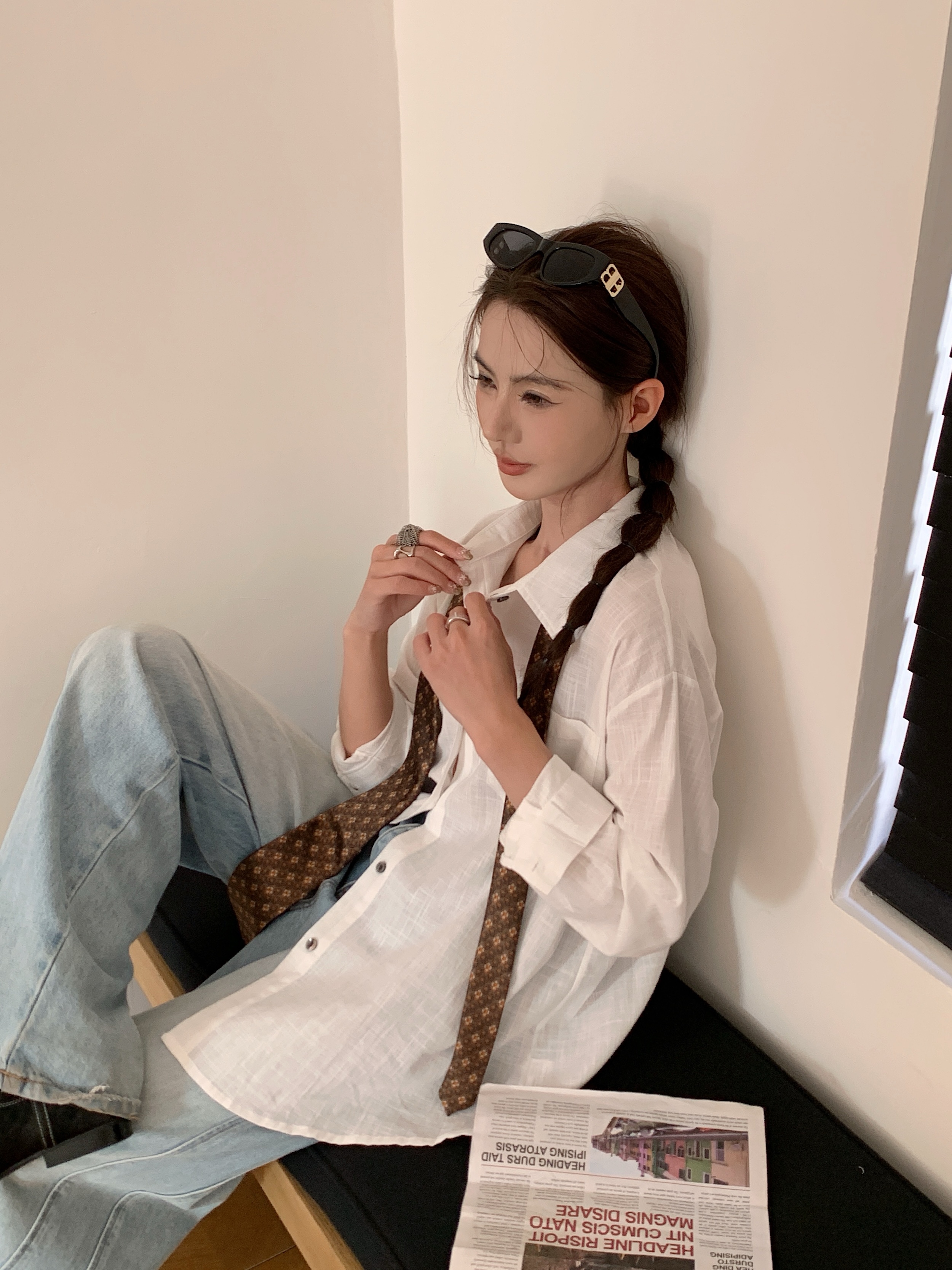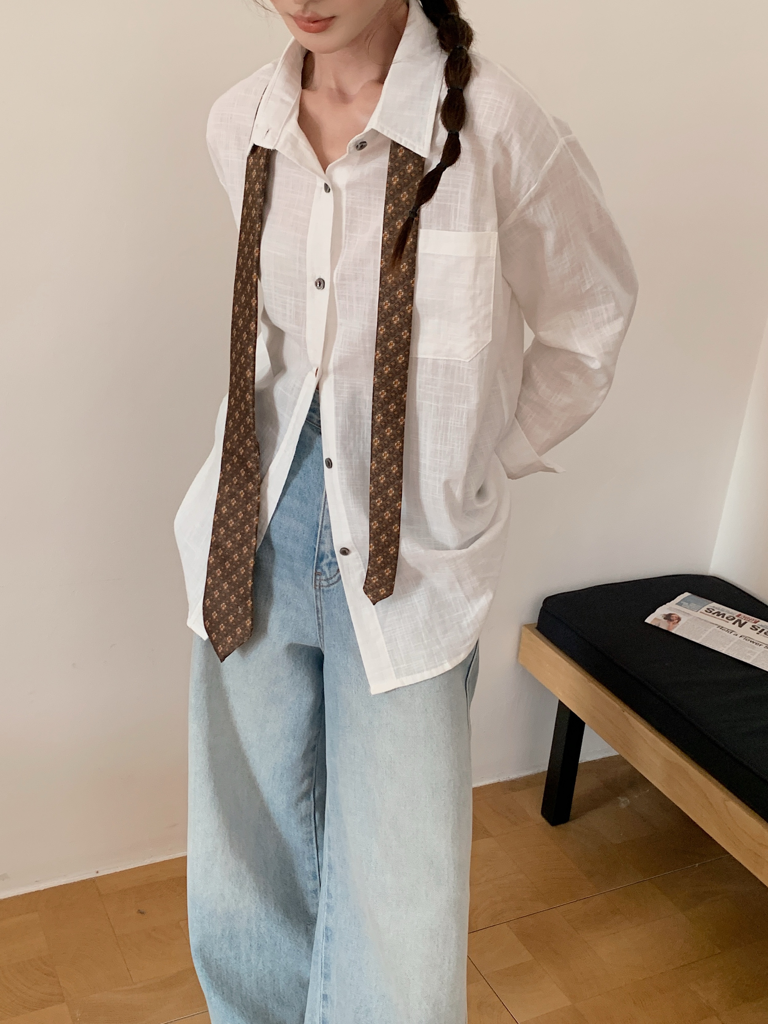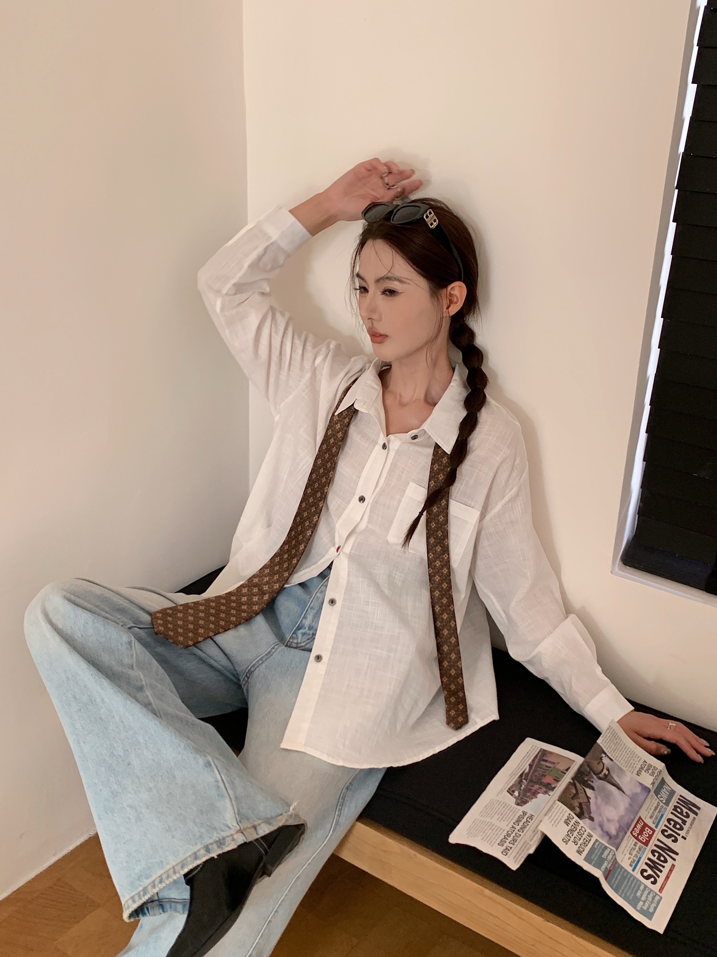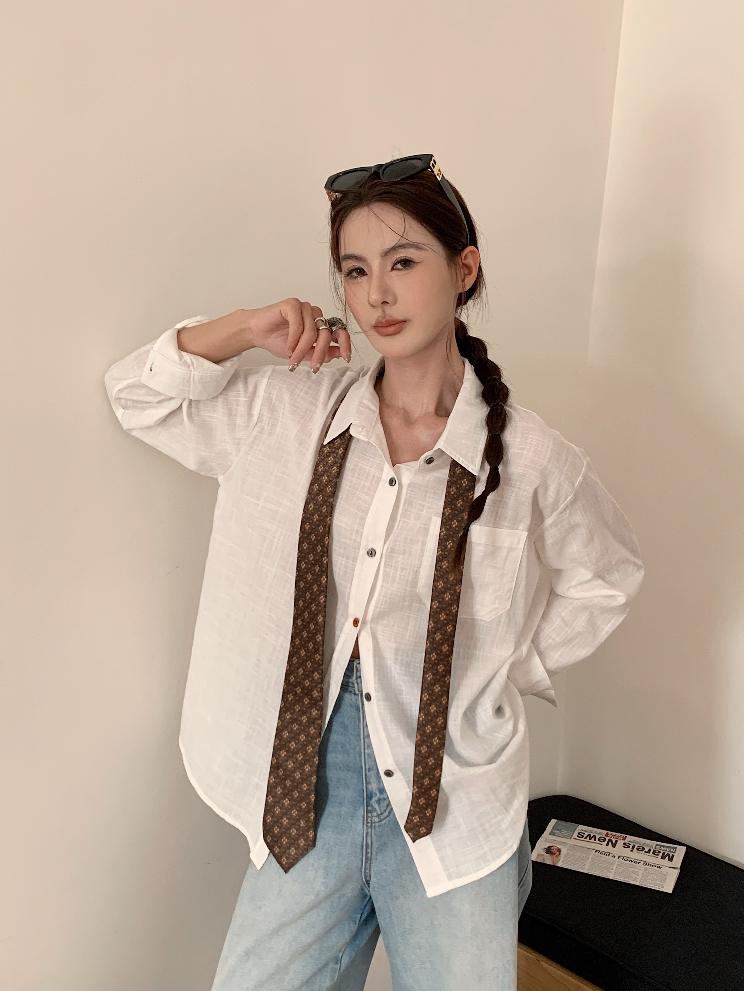 *【卷卷紫】宽松休闲棉麻长袖衬衫 天然亚麻纯棉混纺舒适亲肤透气 清透肤感宽松休闲百搭衬衫 可单穿可内搭可外穿