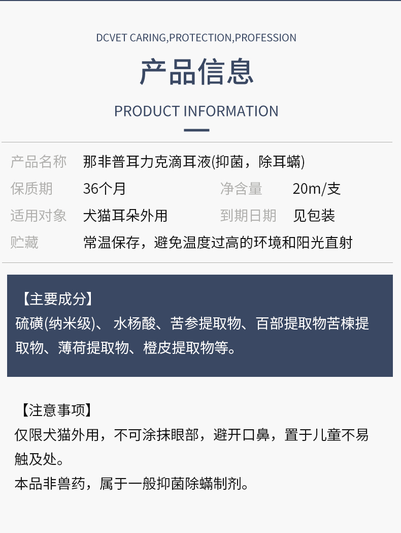 那非普耳力克滴耳液狗狗防耳螨马拉色菌猫咪耳道异味清洁20ml